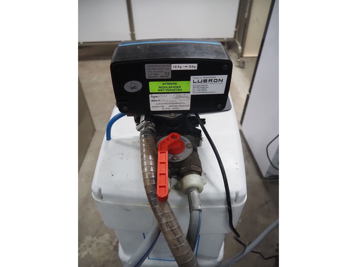 Compact water softener, type: 5600, serial number: J045196, 220/240 V, 50 Hz, 3 W, dimensions: 600 mm x 300 mm x 1100 mm.