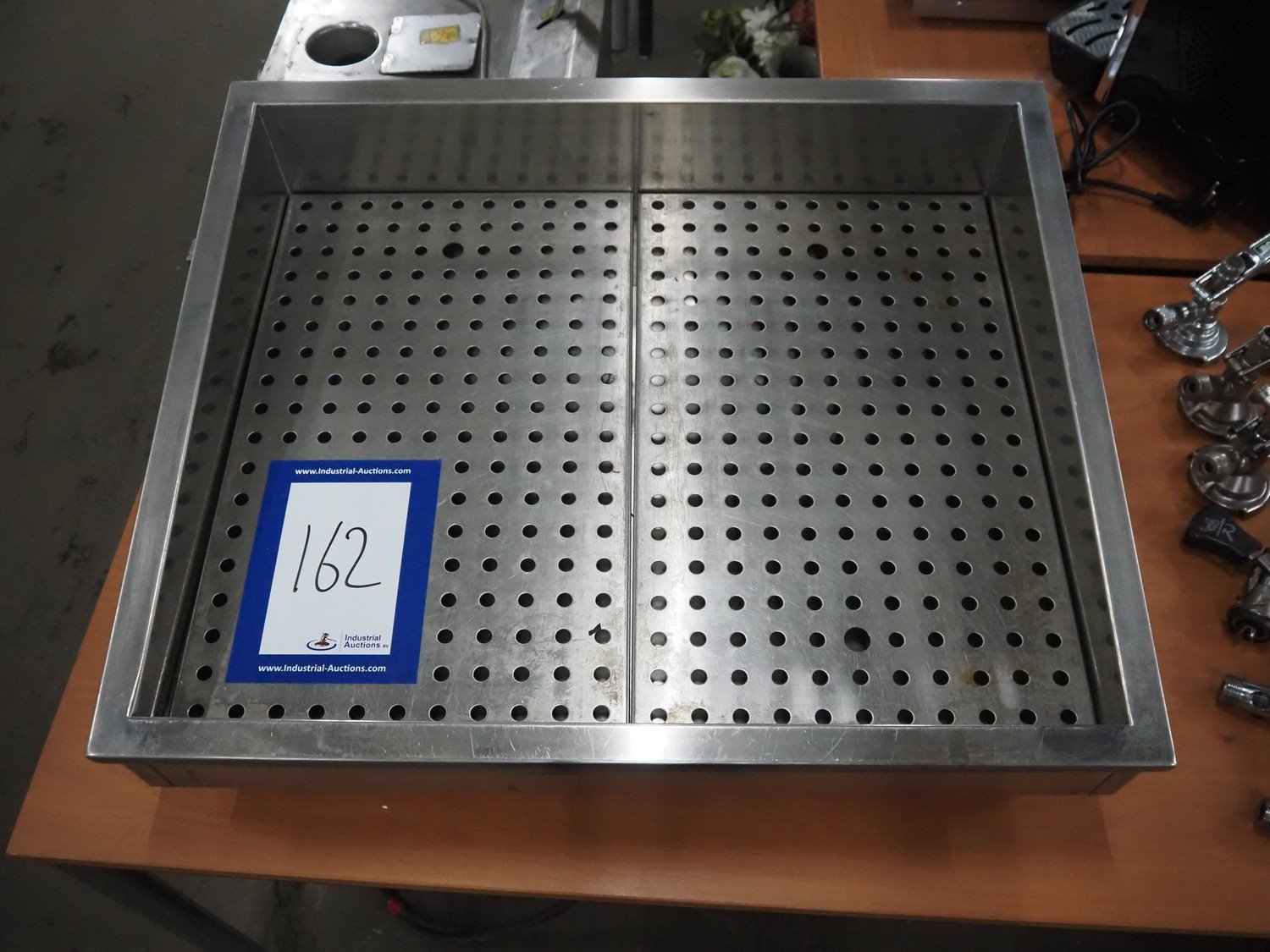 S/s tub for crushed ice, inside dimensions: 550 mm x 690 mm, total dimensions: 750 mm x 620 mm x 260 mm.