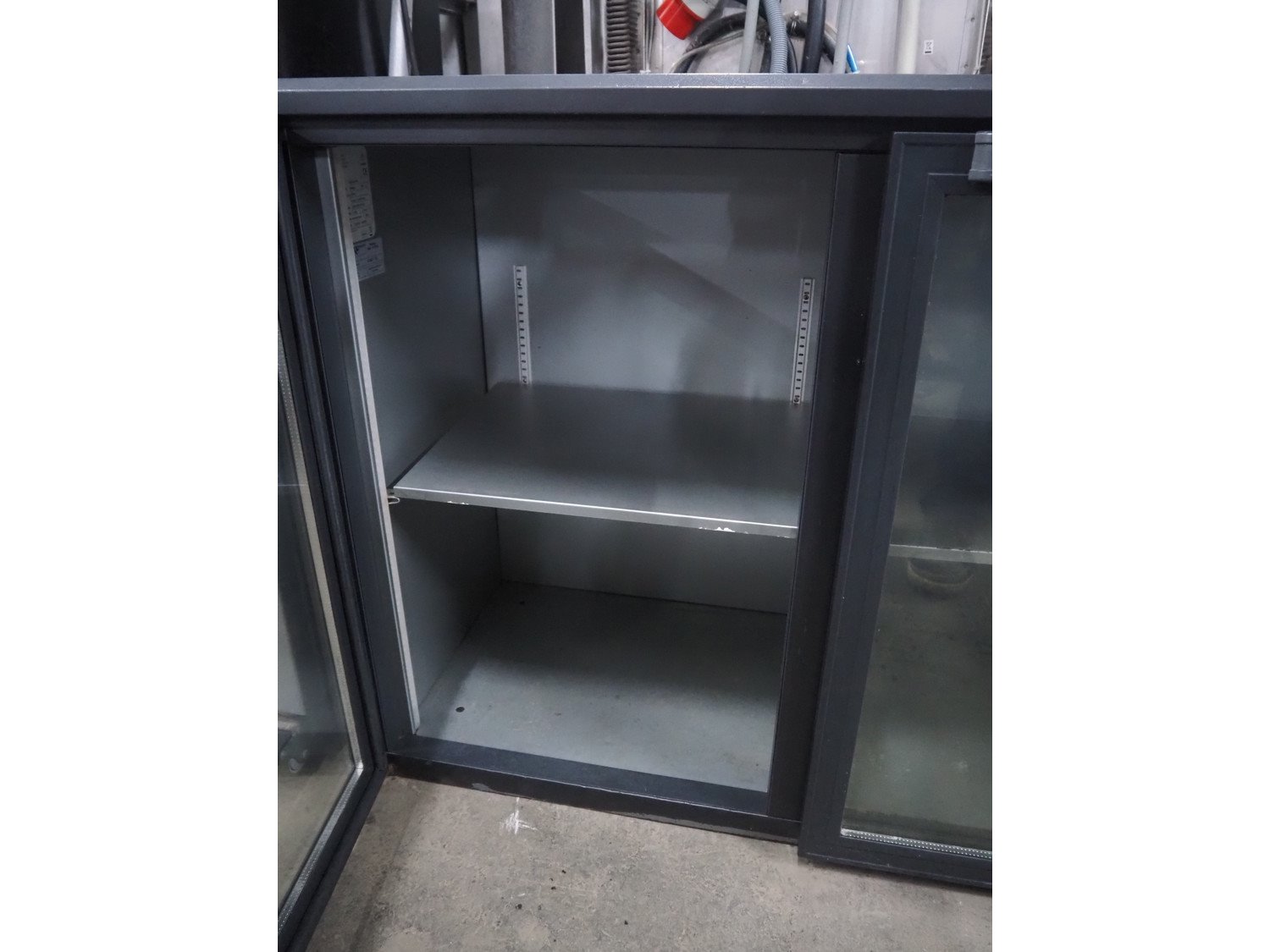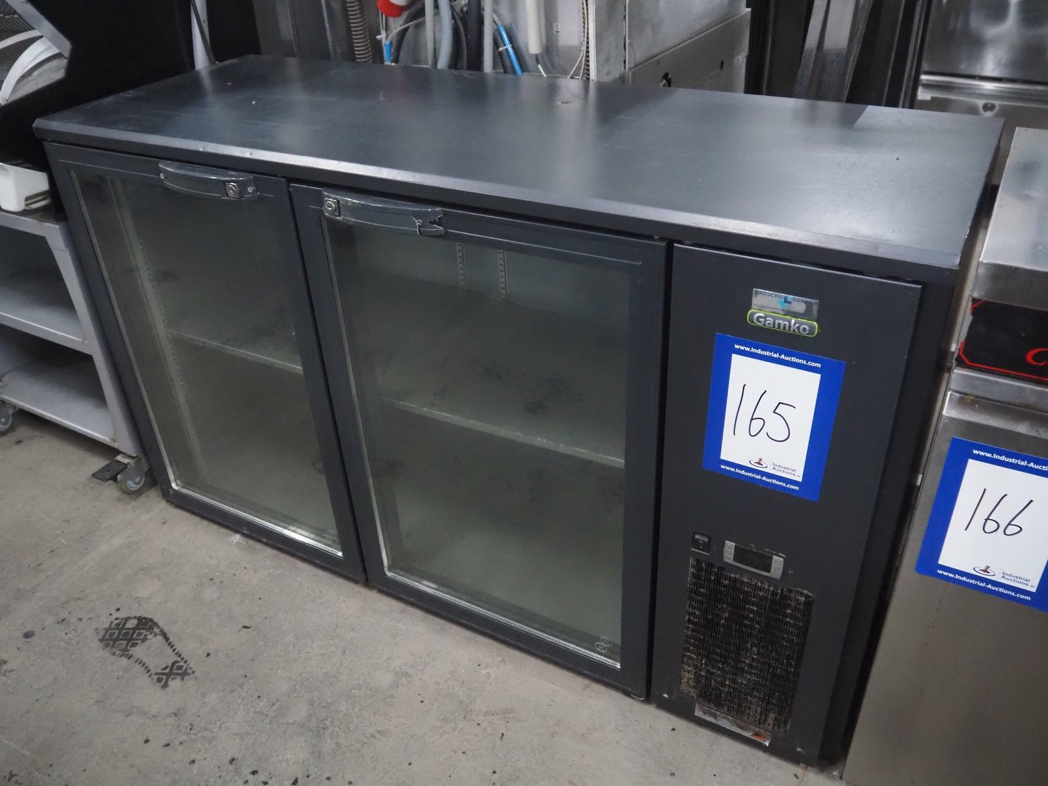 Gamko refrigerated cabinet, type: E2/22GMU, year of construction: 2013, 220-240 V, 50 Hz, 1.8 A, 278 W, refrigerant: R600A/0.120 kg, 2 floors, floor dimensions: 500 mm x 380 mm, total dimensions: 1430 mm x 500 mm x 850 mm.