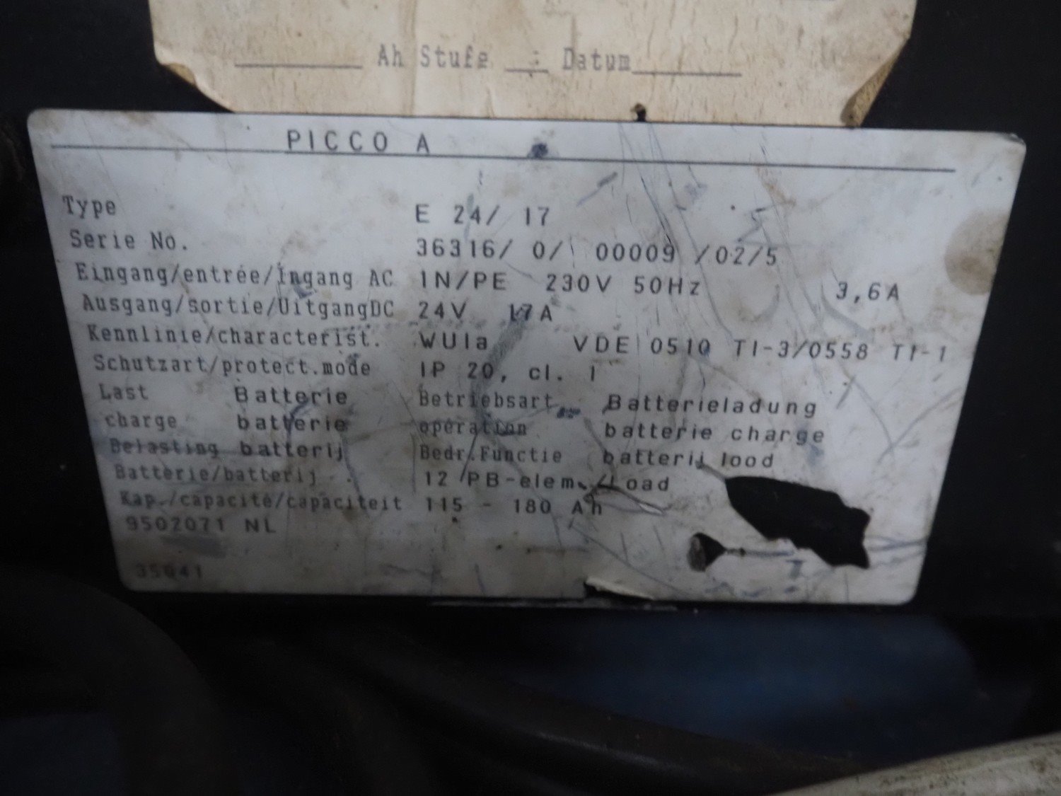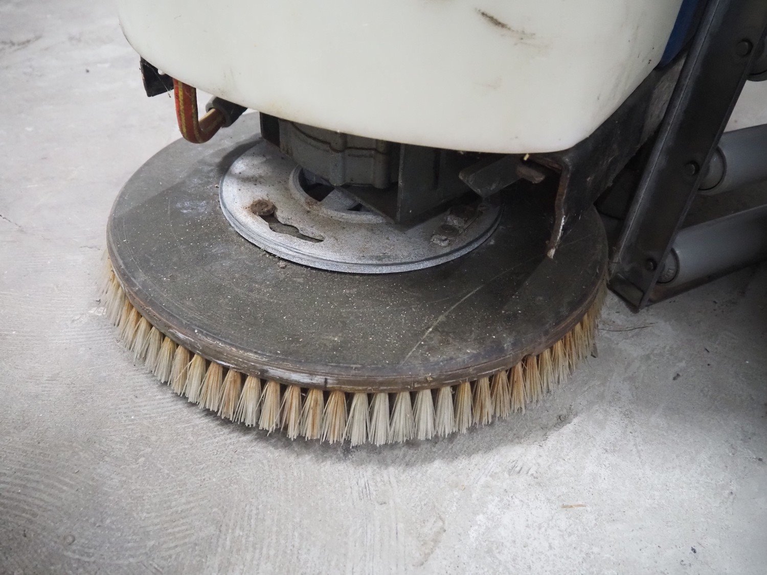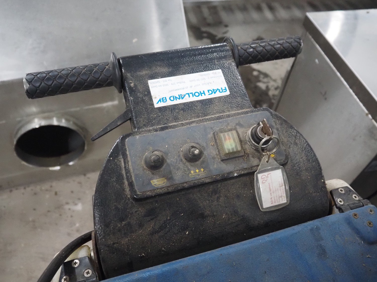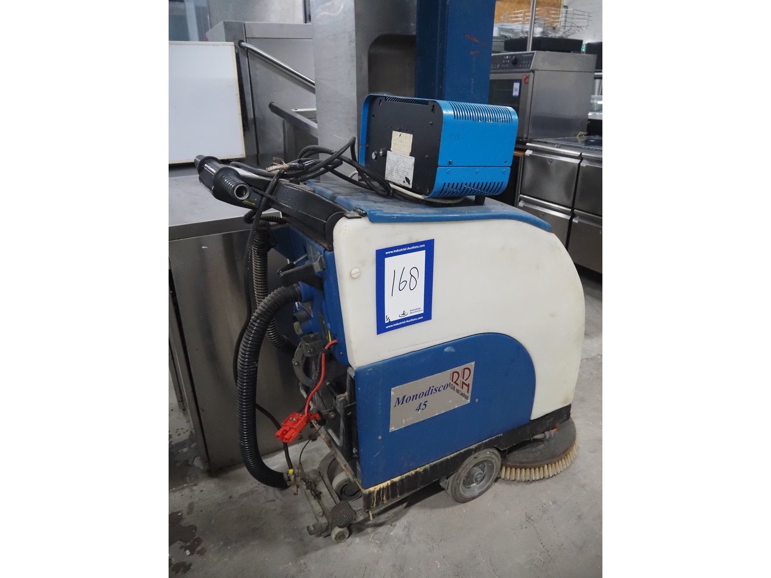 Monodisco floor scrubbing machine, diameter brush: Ø 400 mm, total dimensions: 1100 mm x 400 mm x 1050 mm. Including charger, type: E 24/17, serial number: 36316/0/0009/02/5, 230 V, 1 Ph, 50 Hz, 3.6 A. Missing the sweeping brush and technical condition unknown.