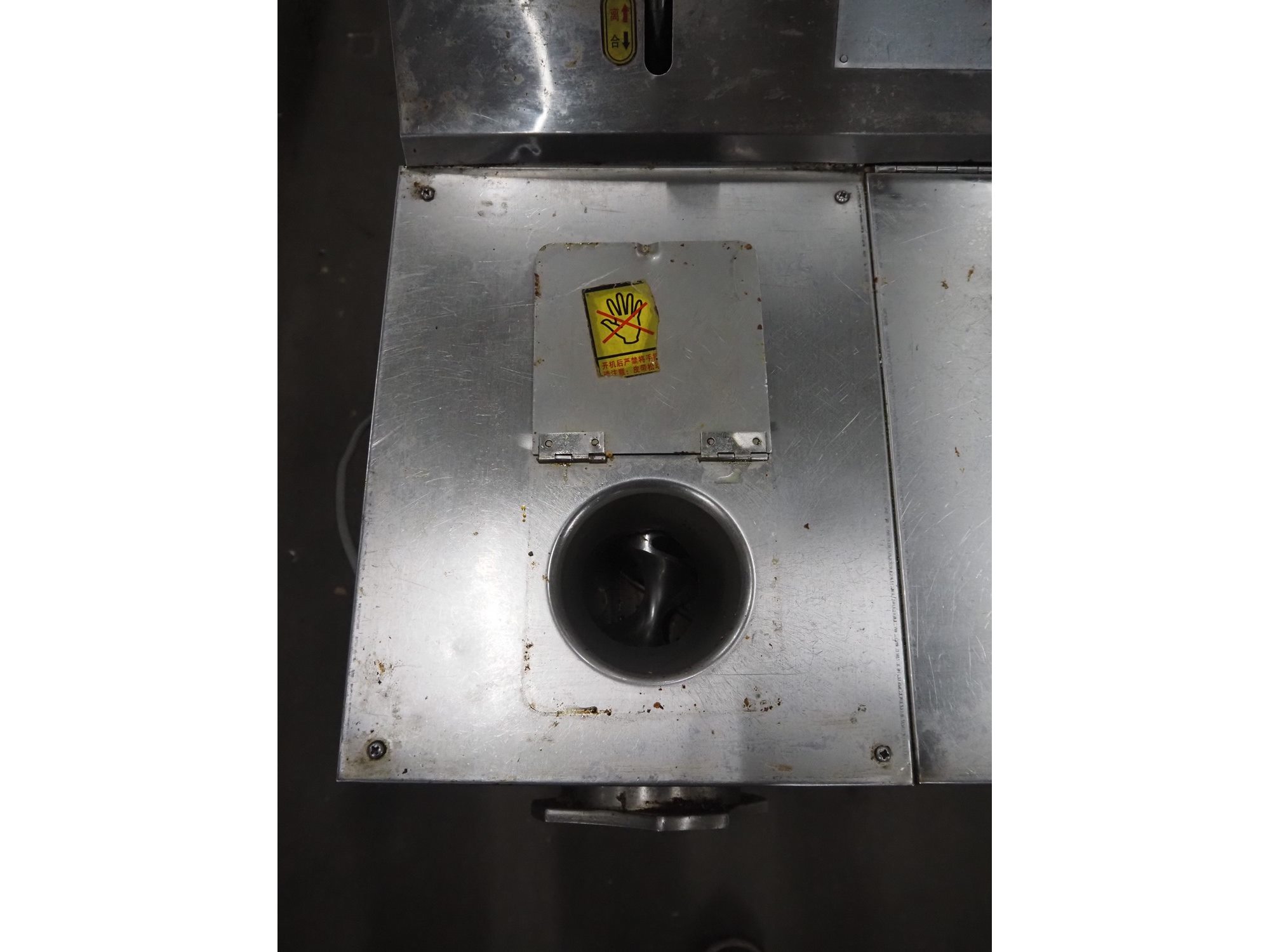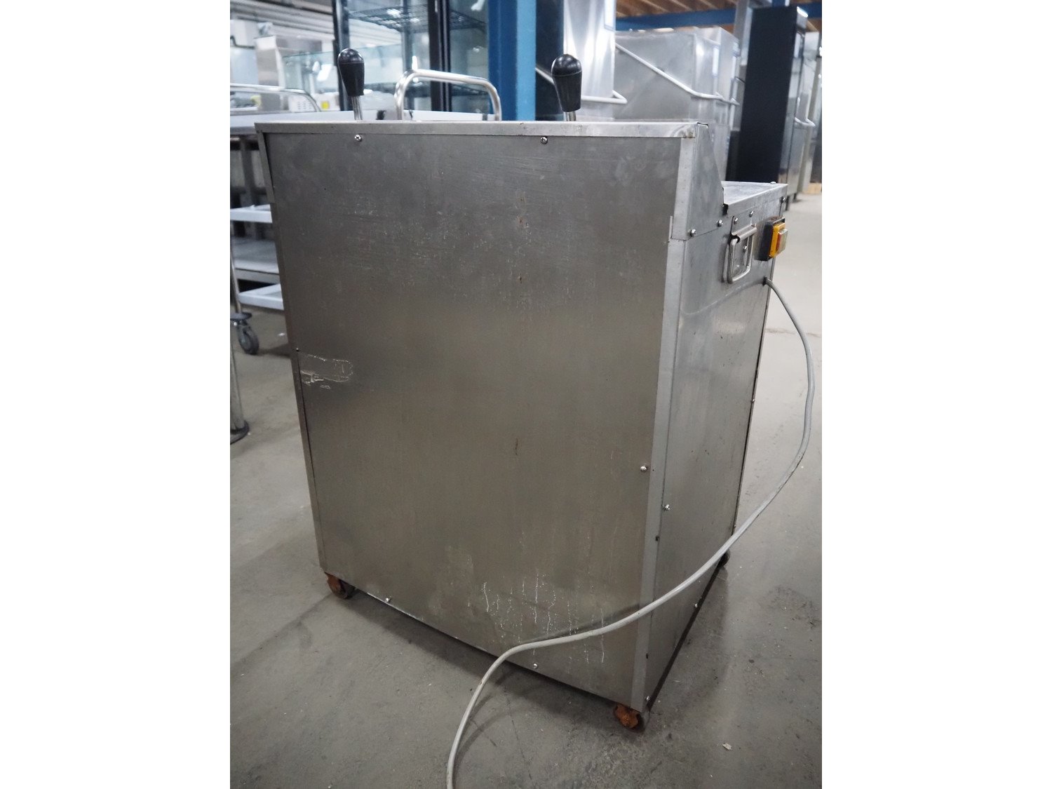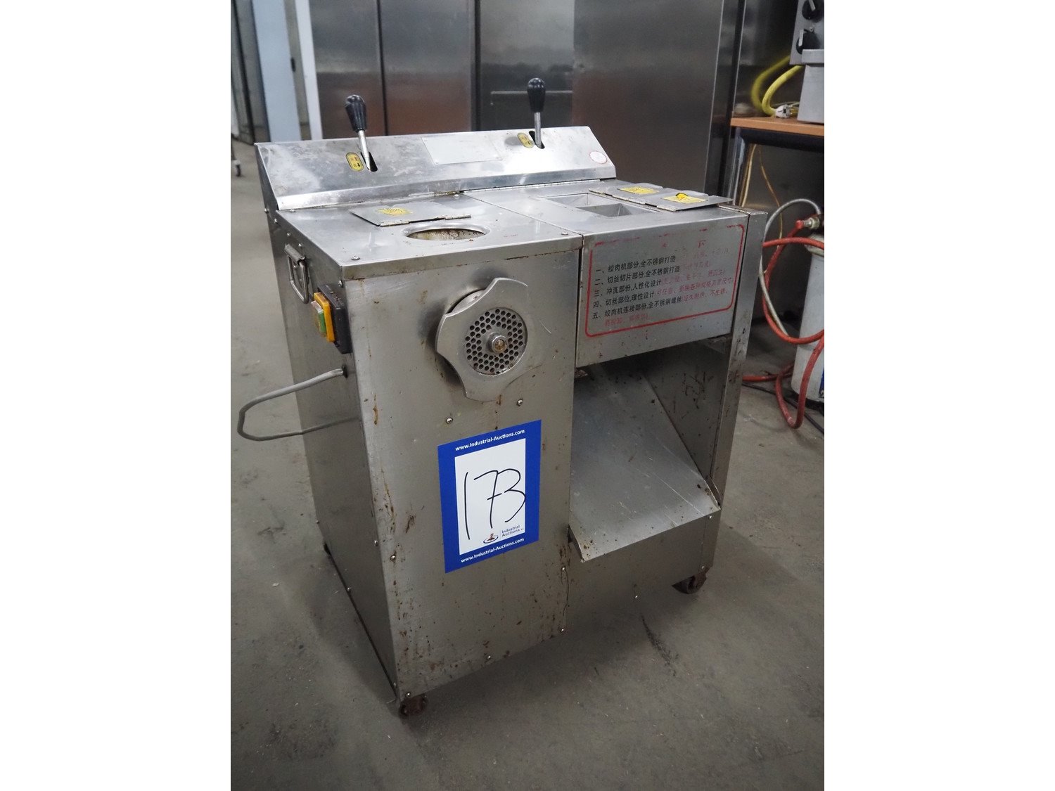 Mobile s/s grinder with strip cutter, 8 knives, diameter knives: 80 mm, distance between knives: 10 mm, diameter plate: 100 mm, total dimensions: 600 mm x 520 mm x 800 mm.