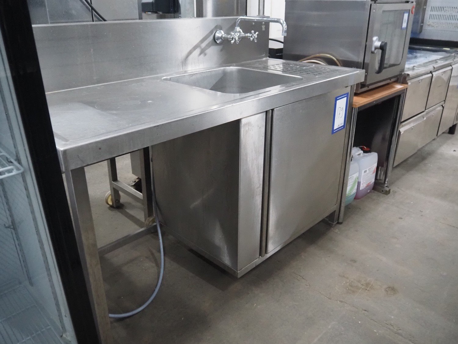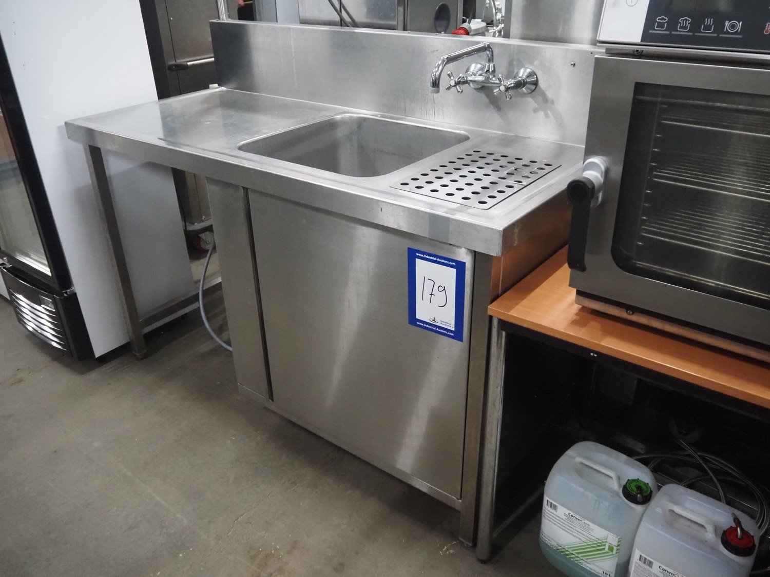 S/s sink with drip tray and cabinet, dimensions: 1600 mm x 700 mm x 2000 mm.