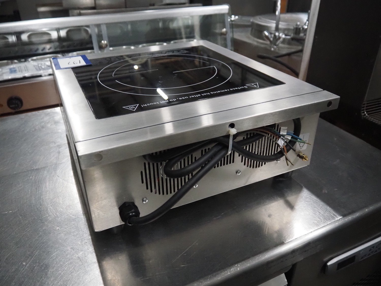 Saro Gastro-Products GmbH induction plate, serial number: 2022120364, year of construction: December 2022, 380-400 V, 3 Ph, 50-60 Hz, 10 A, 5000 W, weight: 10.2 kg, dimensions induction plate: 320 mm x 300 mm, total dimensions: 540 mm x 400 mm x 200 mm.