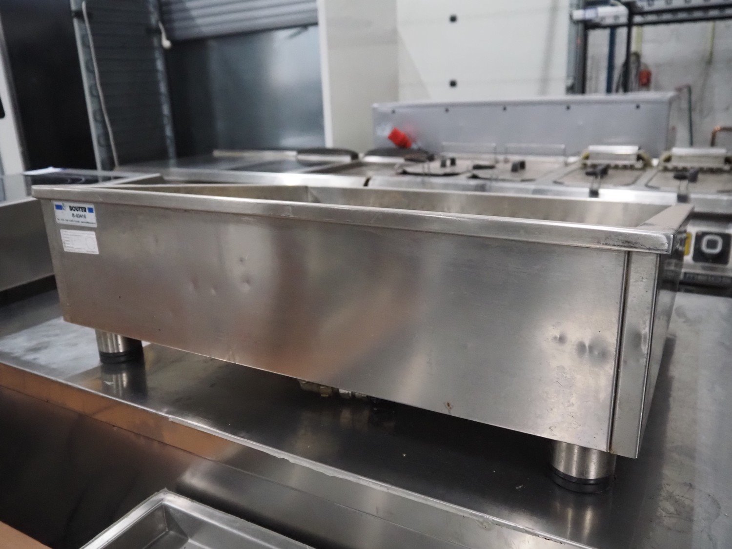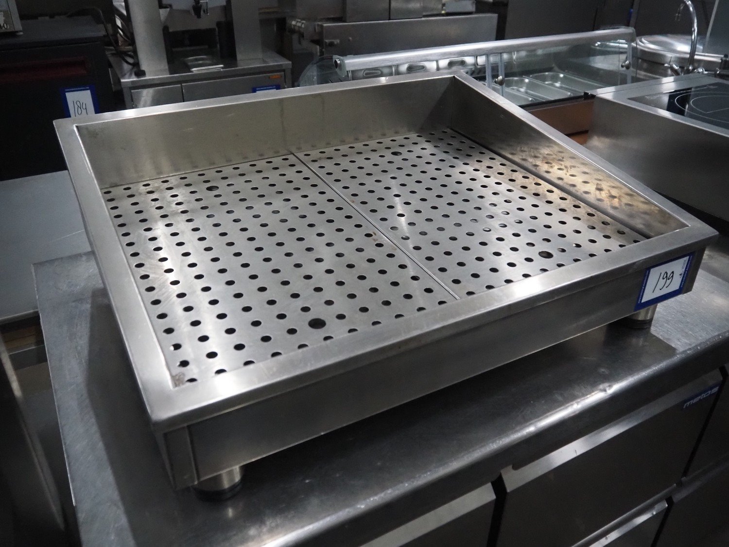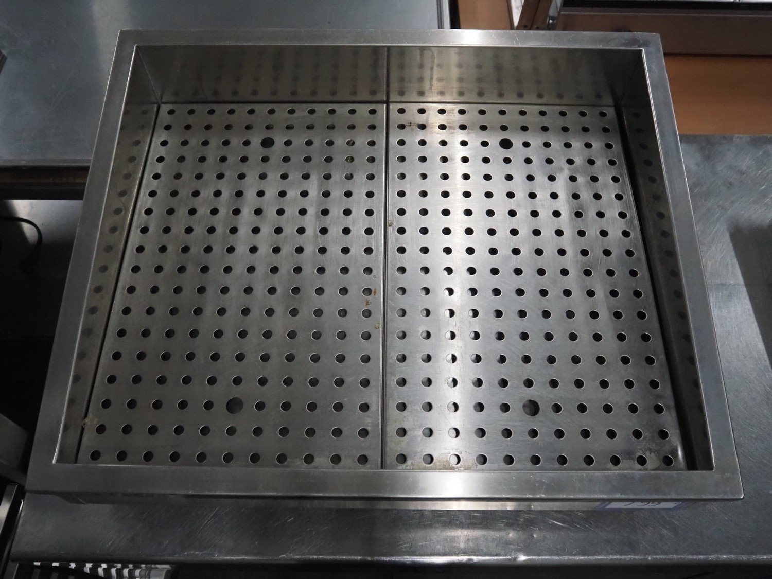 S/s tub for crushed ice, inside dimensions: 550 mm x 690 mm, total dimensions: 750 mm x 620 mm x 260 mm.