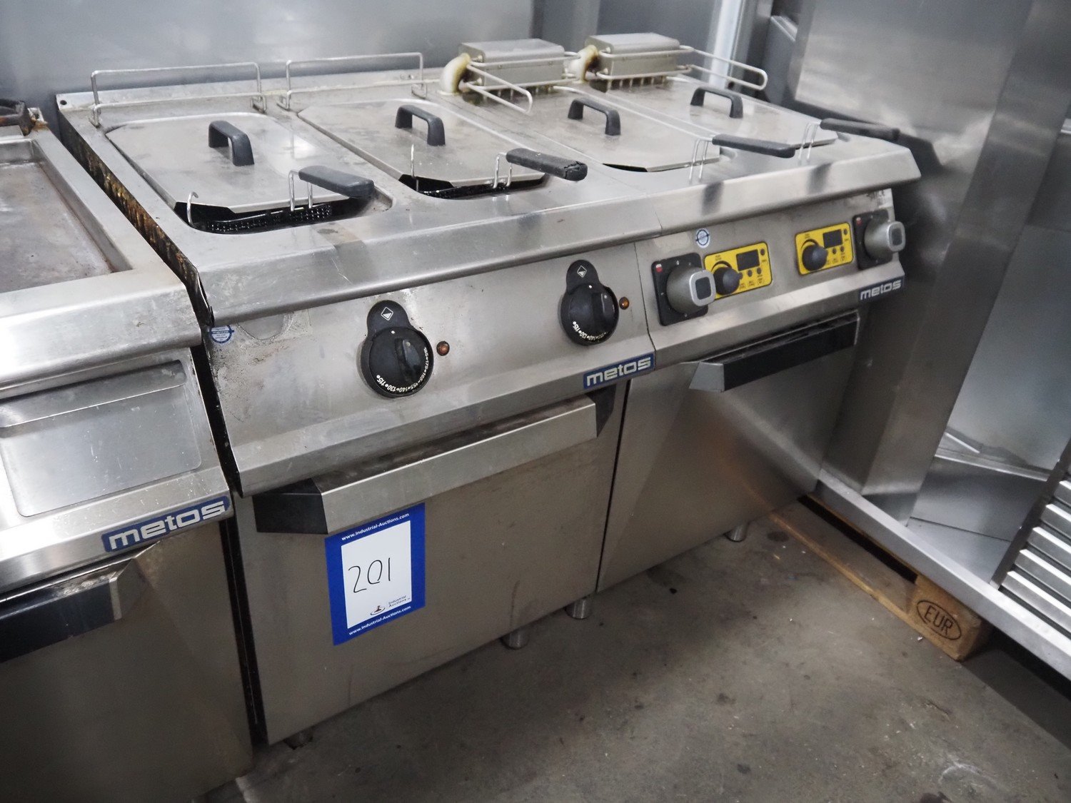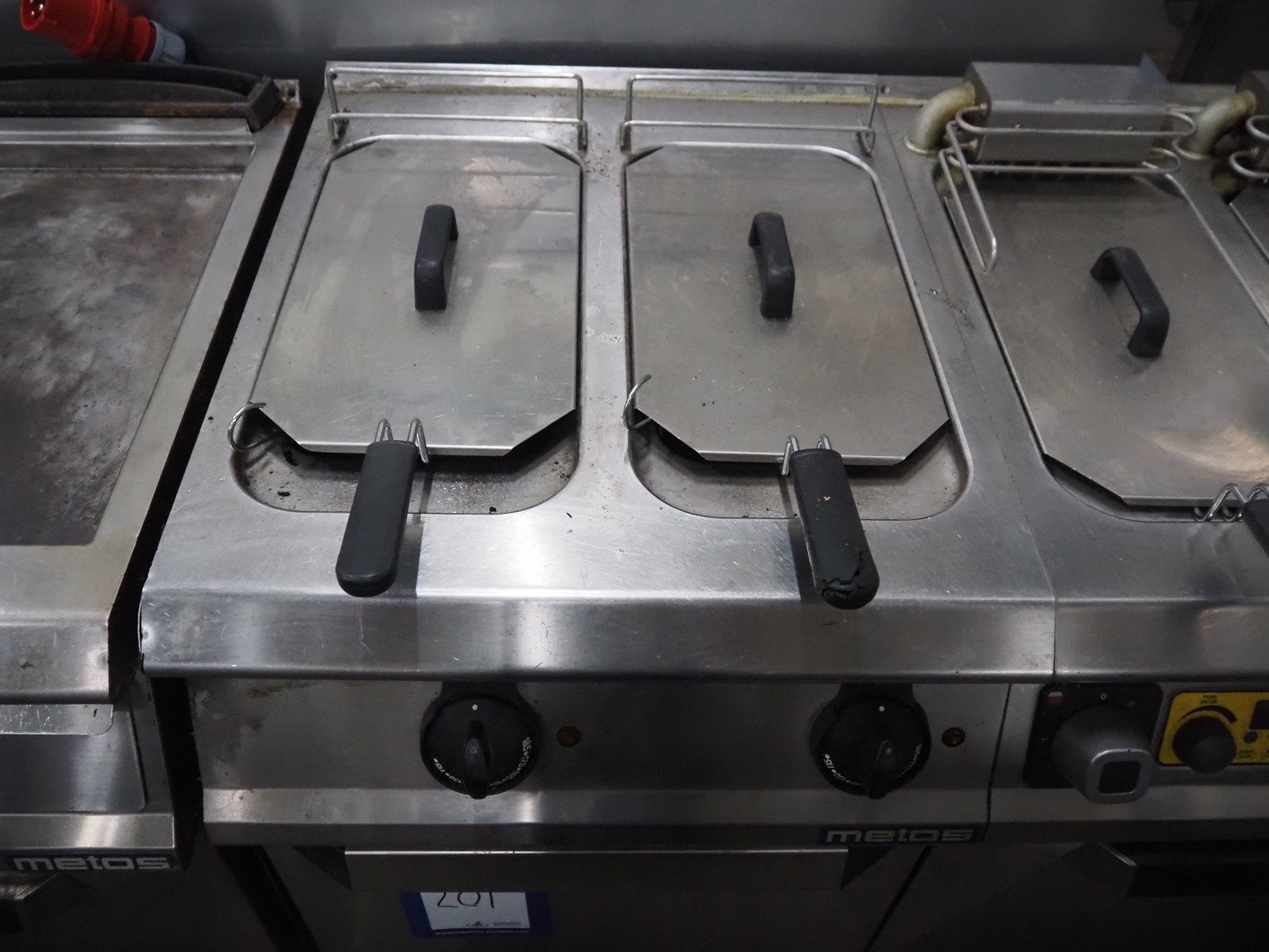 Metos fryer, 4 baskets, dimensions basket: (4x) 300 mm x 160 mm x 100 mm, total dimensions: 1200 mm x 750 mm x 1000 mm.
