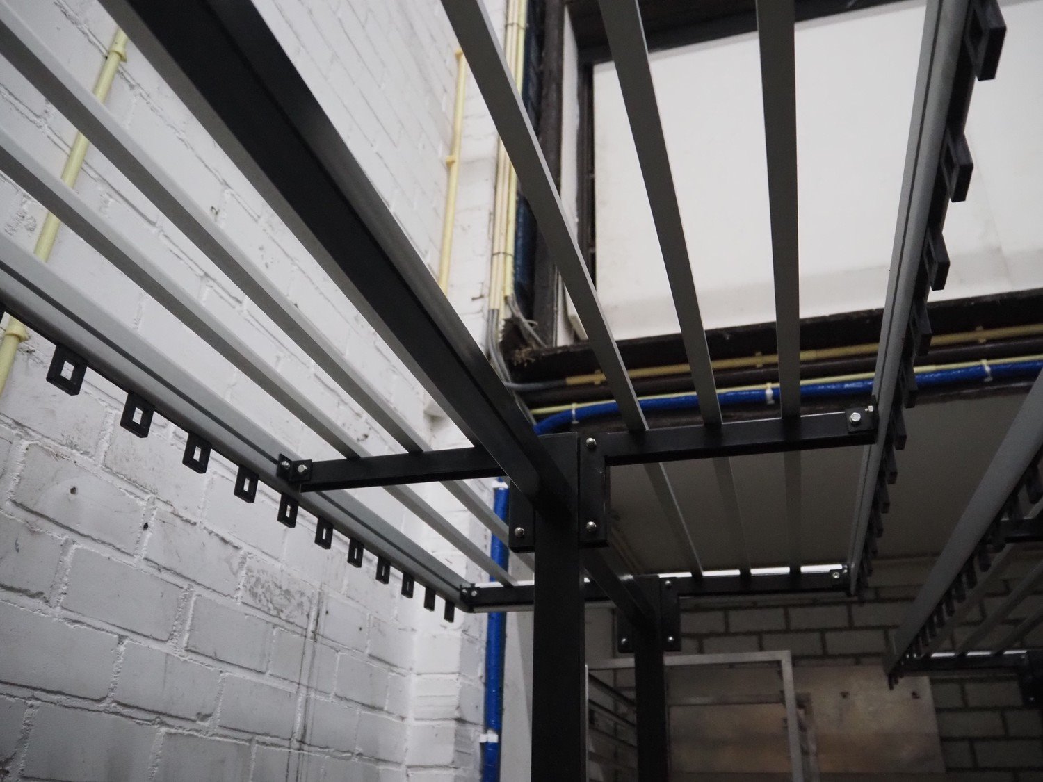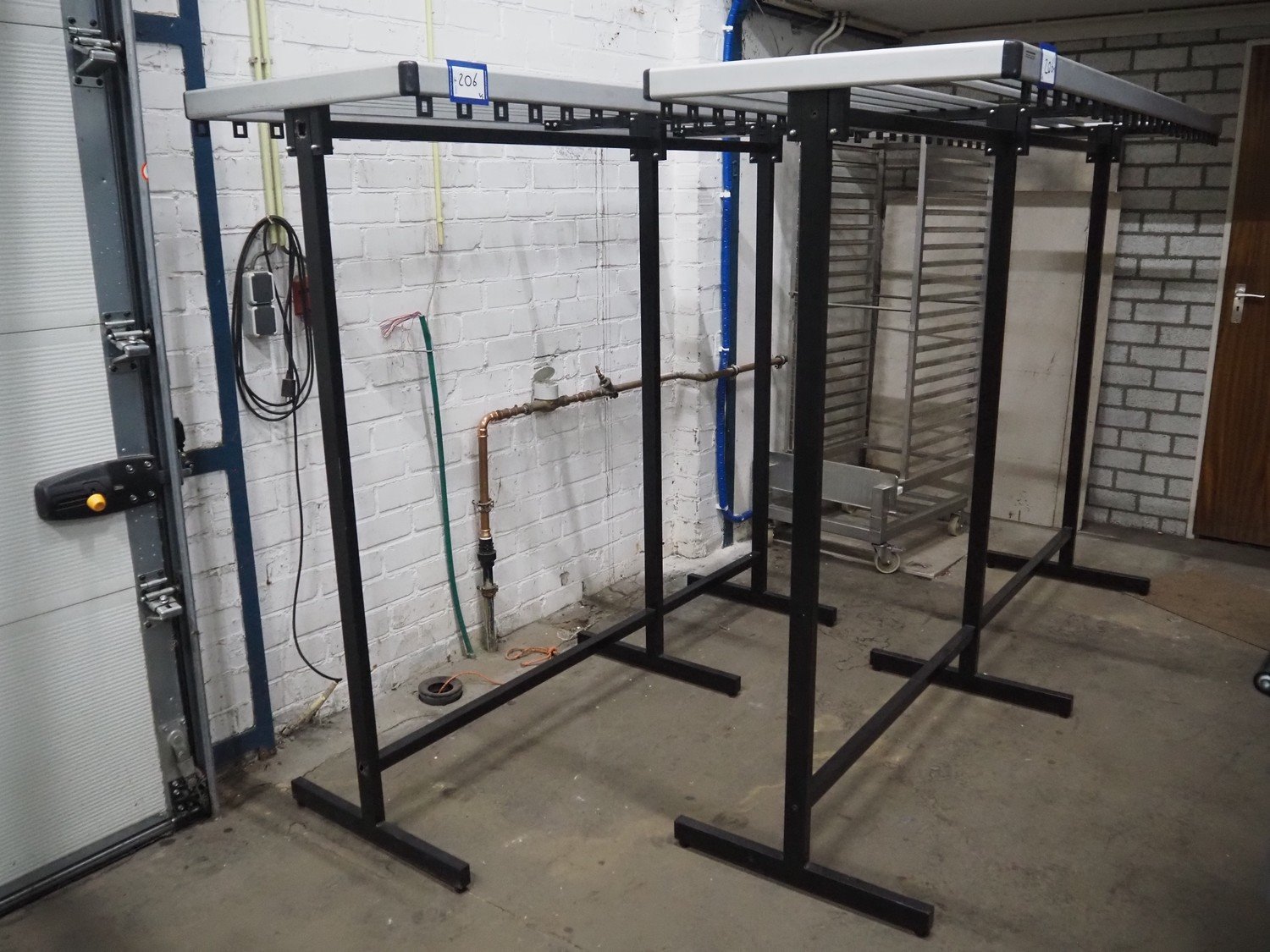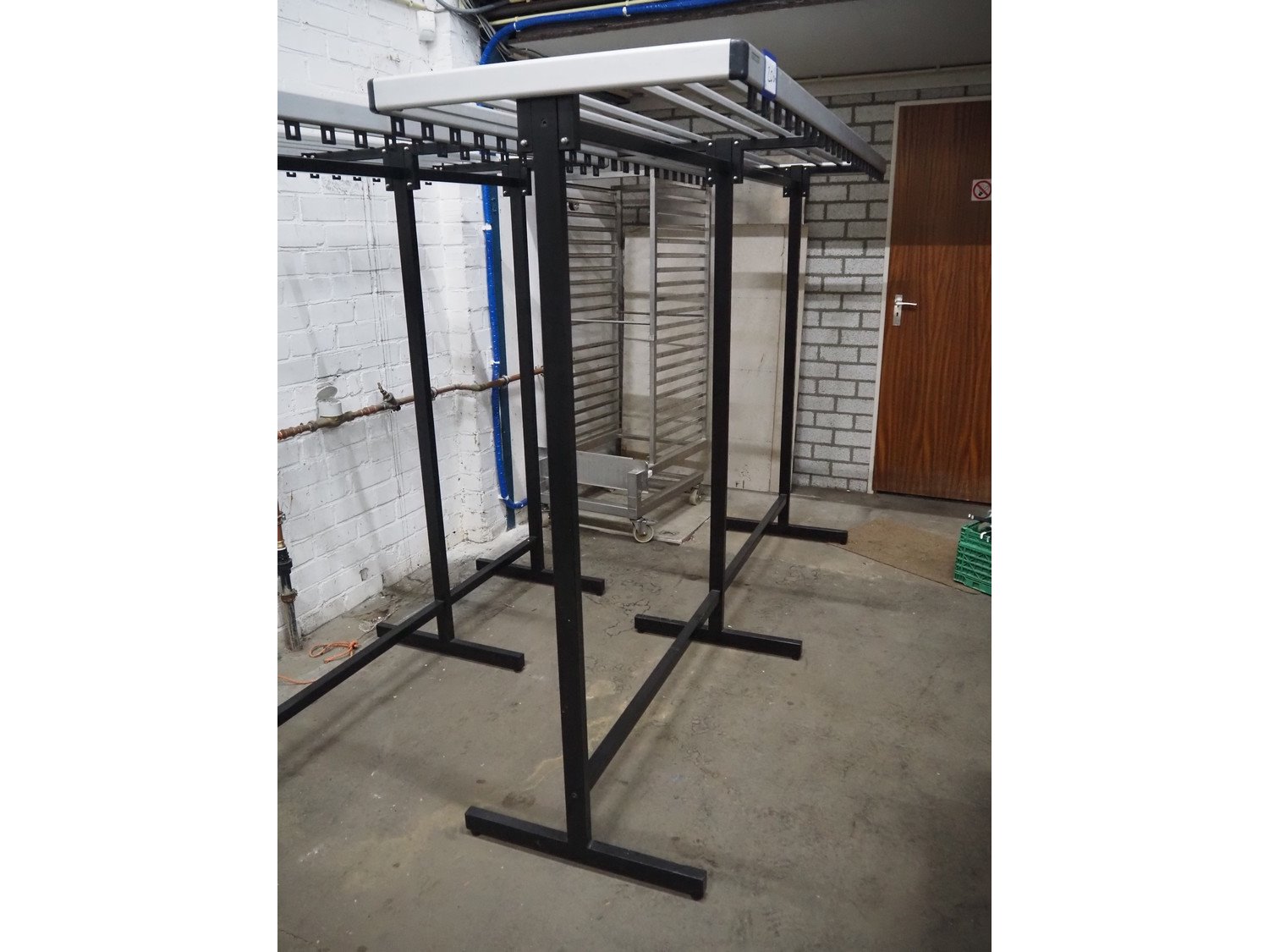 2 Loggere Metaalwerken coat racks with hangers, dimensions: (2x) 2350 mm x 730 mm x 1730 mm.