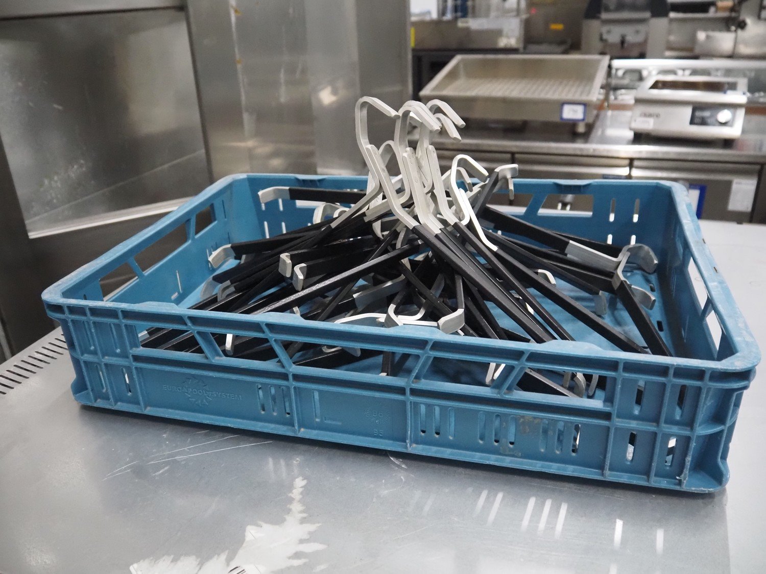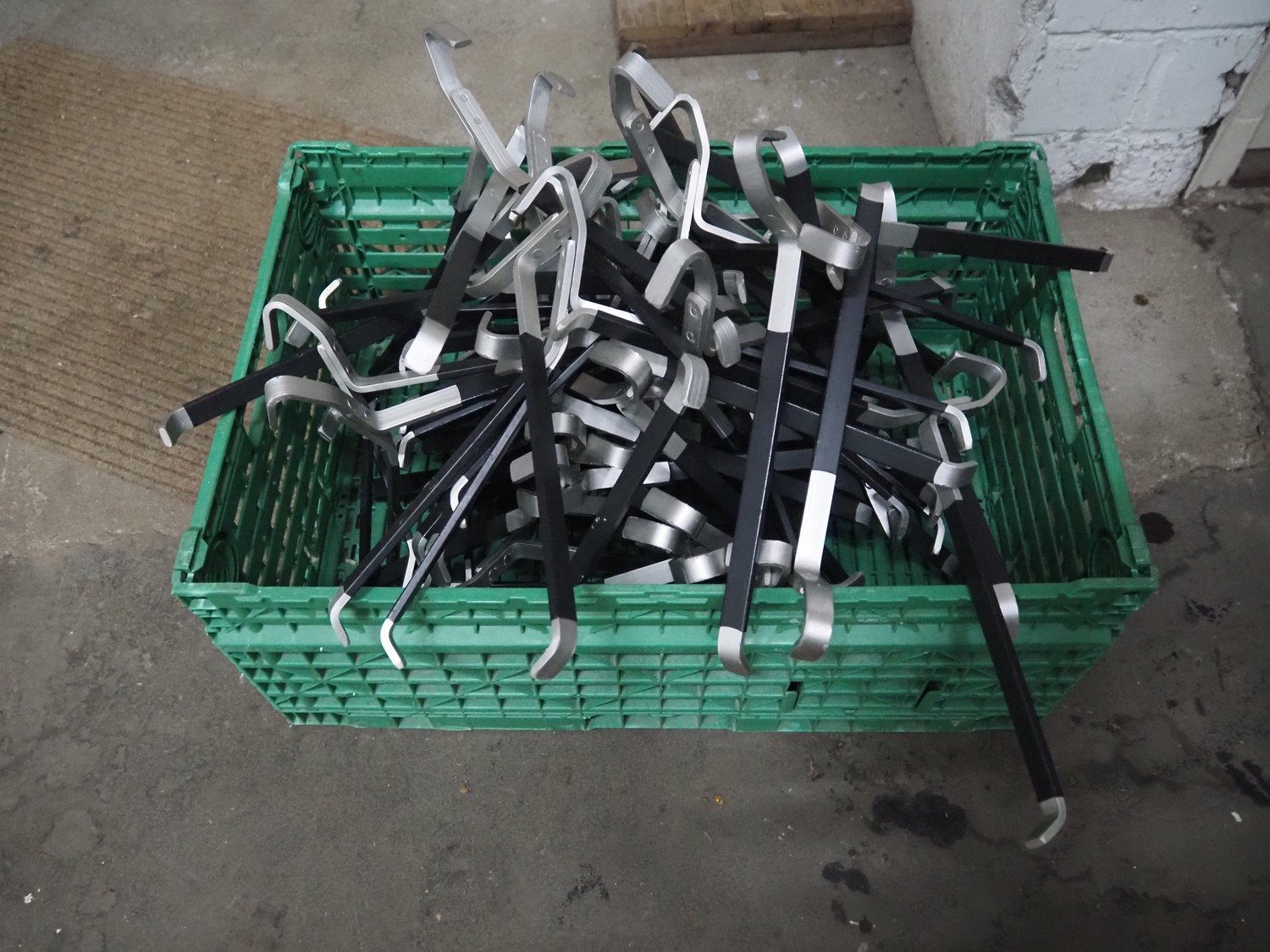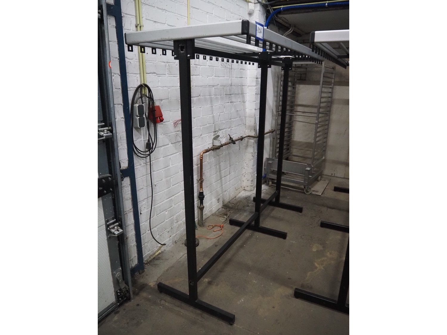 2 Loggere Metaalwerken coat racks with hangers, dimensions: (2x) 2350 mm x 730 mm x 1730 mm.