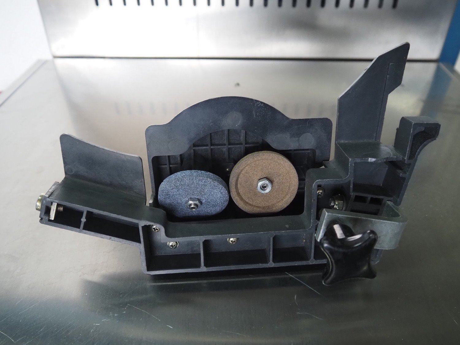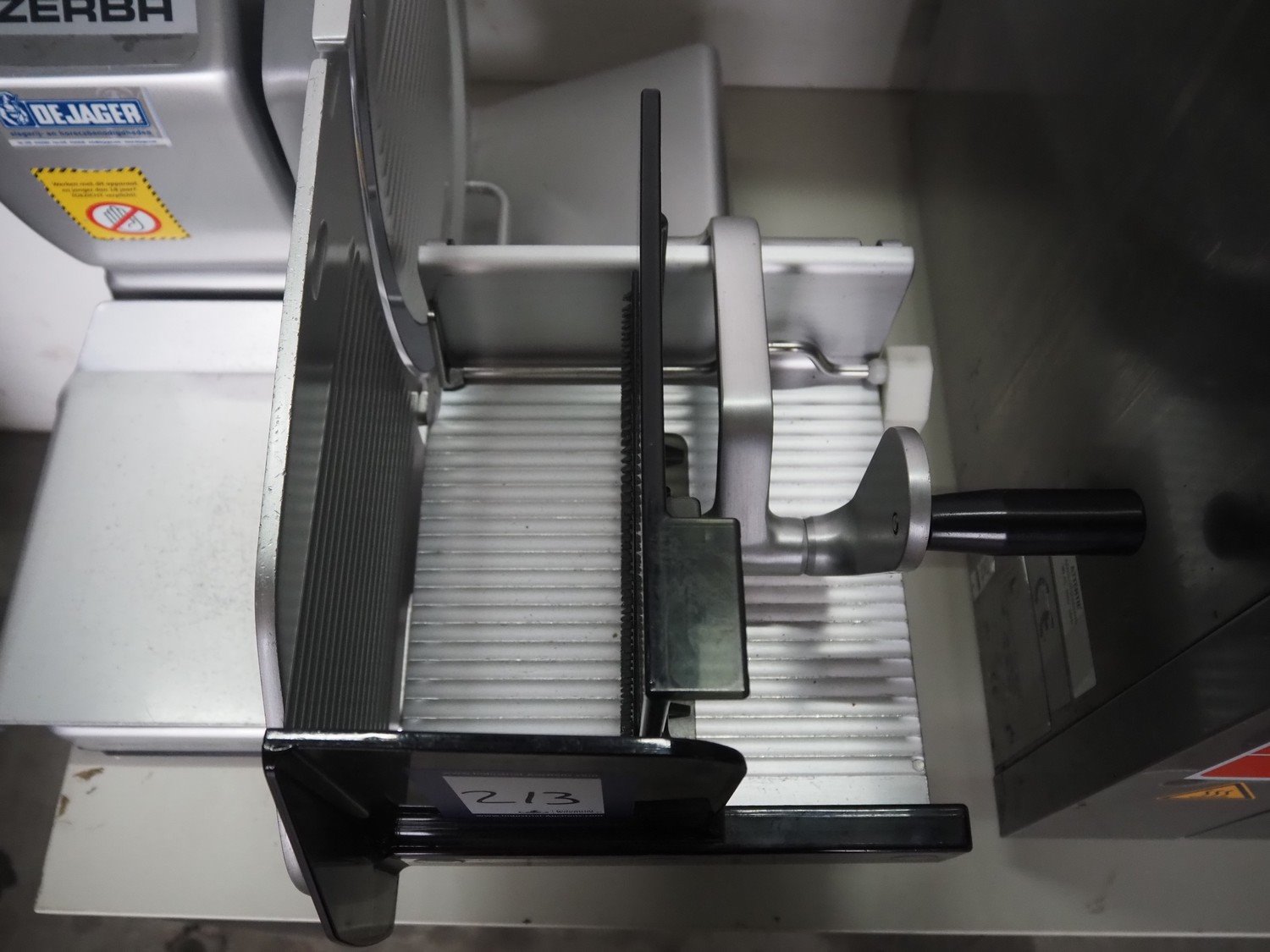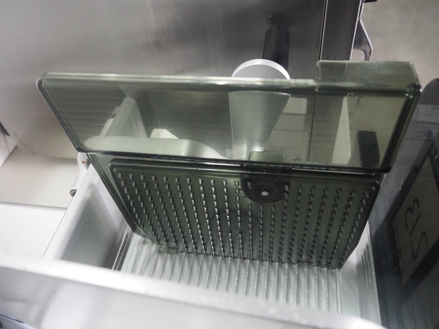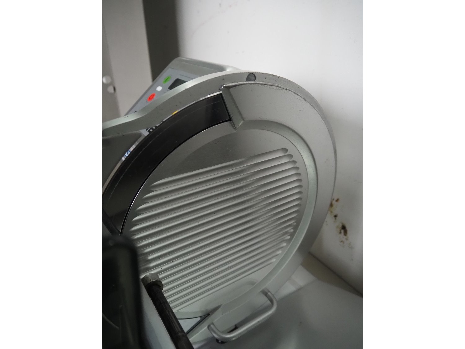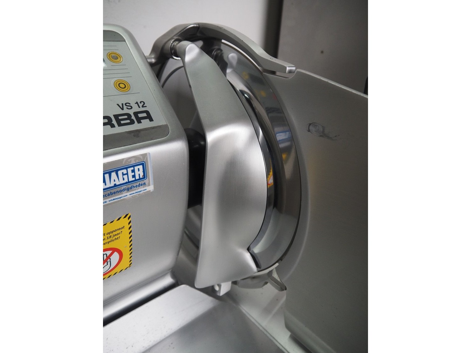 Bizerba slicer, model: VS 12-W, number; 10629934, year of construction: 2010, 230 V, 1 Ph, 50 Hz, 1.8 A, 0.400 kW, dimensions: 600 mm x 600 mm x 450 mm. Including knife sharpener.