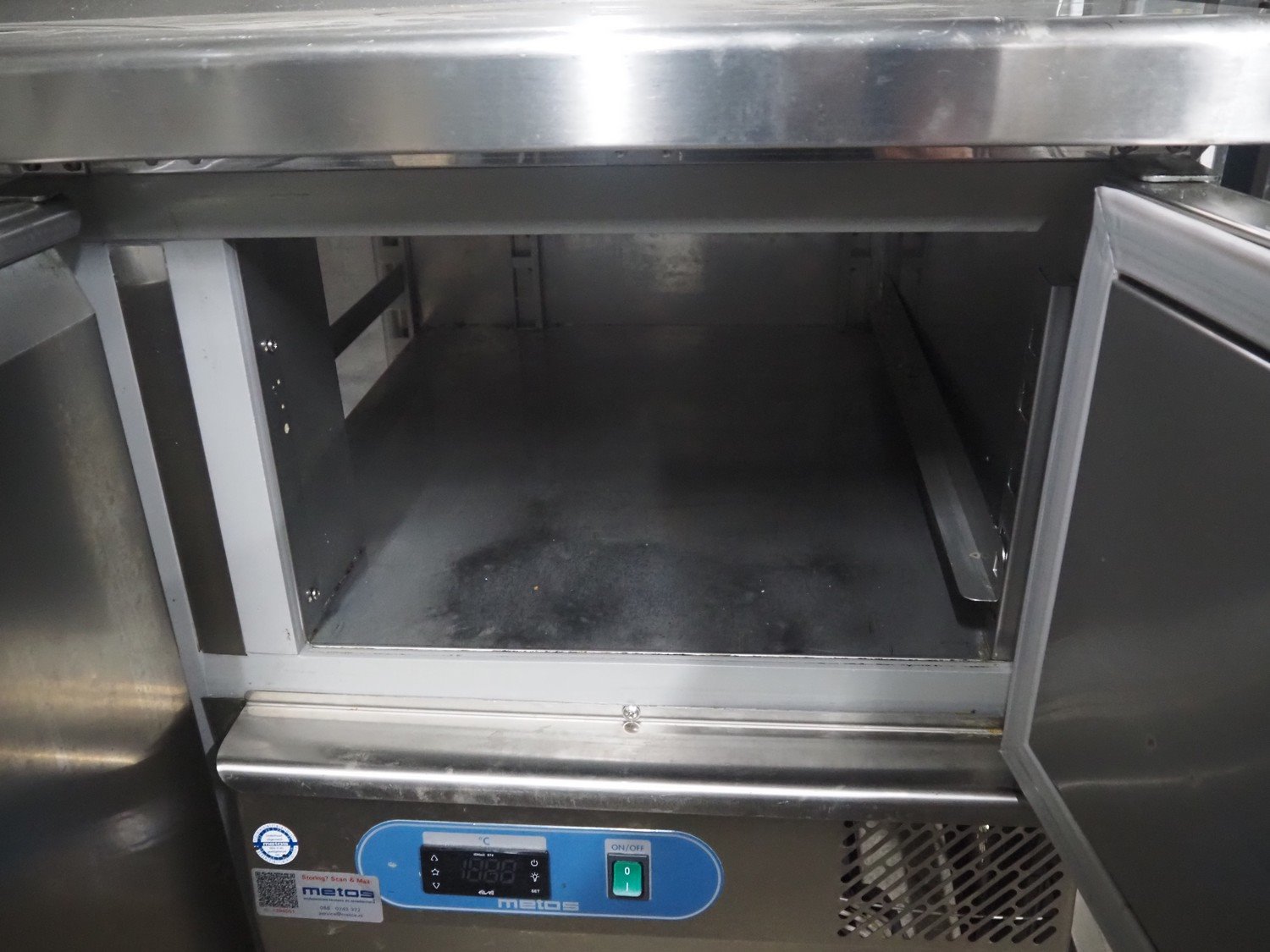 Metos refrigerated counter, dimensions: 14 floors, floor dimensions: 640 mm x 400 mm, total dimensions: 2170 mm x 800 mm x 1200 mm.