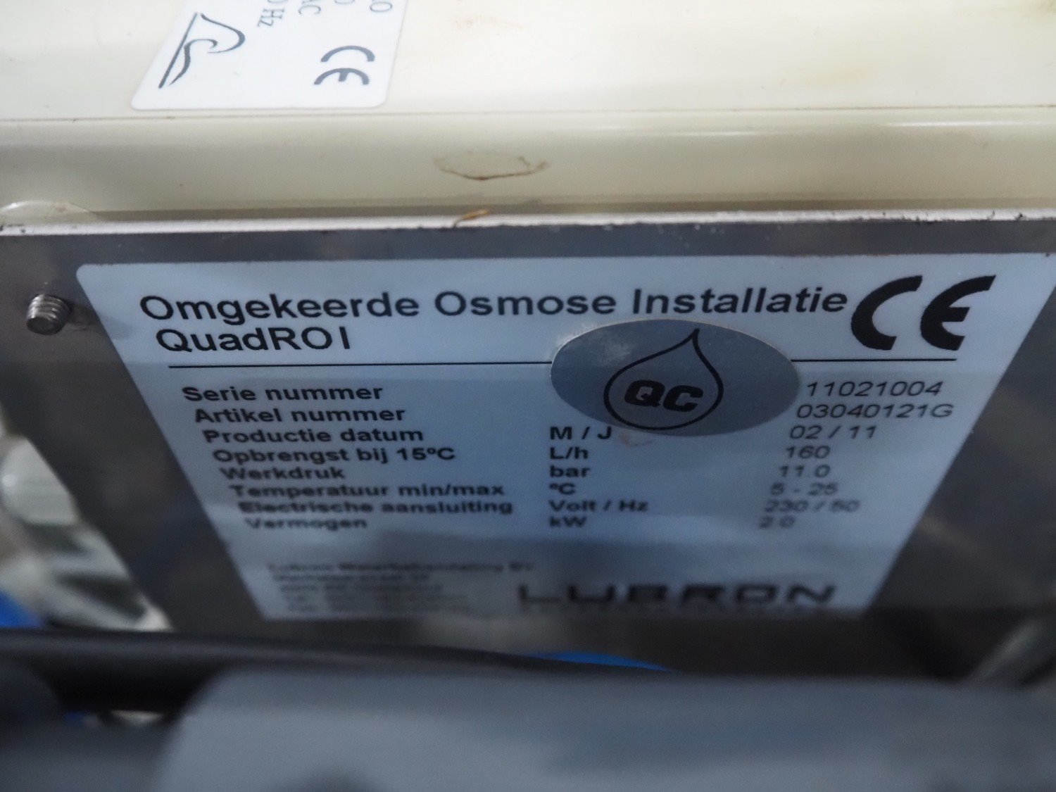 Lubron water softener and osmose system, type: Duo Matic T-100, serial number: 11020802, year of construction: 02/11, 230 V, 50 Hz, 4 W, capacity: 28 liter, dimensions: 800 mm x 600 mm x 1100 mm.