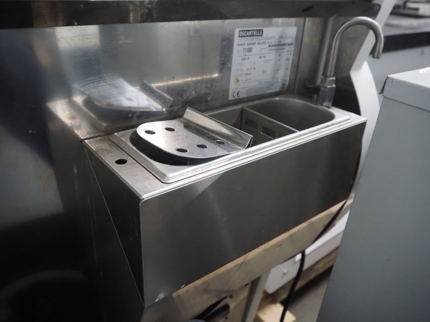Oscartielle ice cream showcase, serial number: 1N62663301, year of construction: 2014, 230 V, 50 Hz, refrigerant: R404A/2.0 kg, inside dimensions: 1000 mm x 700 mm x 220 mm, total dimensions: 1200 mm x 1250 mm x 1500 mm.