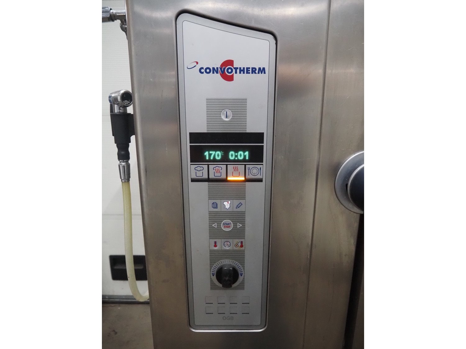 Convotherm oven, model: OGB 6.20, number: GB2CA0389, 400 V, 3 Ph, 50/60 Hz, 1.2 kW, gas heated, 7 floors, floor dimensions: 530 mm x 700 mm, total dimensions: 1250 mm x 1050 mm x 1520 mm.