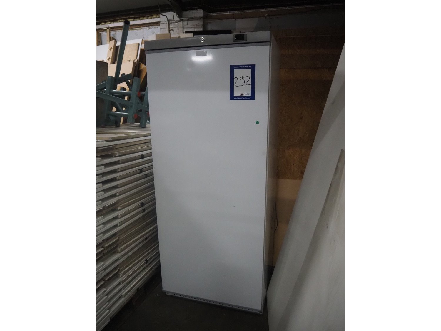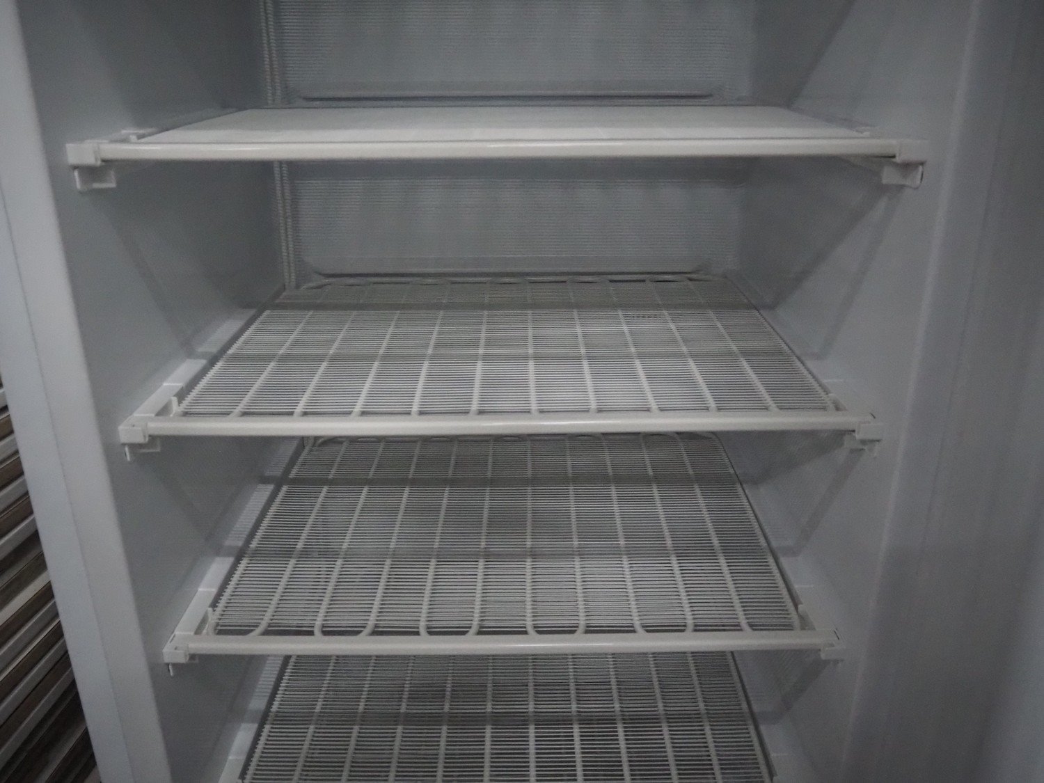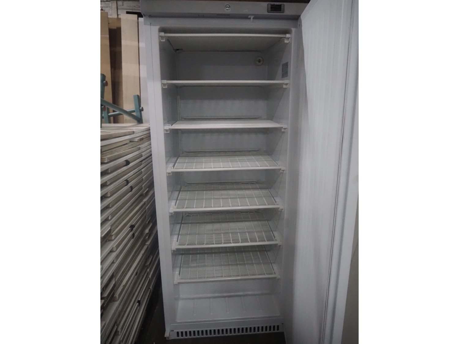 Freezer, model: F600, serial number: 442230913001, 220-240 V, 50 Hz, 2 A, refrigerant: R290/0.120 kg, capacity: 411 liter, 6 floors, floor dimensions: 640 mm x 480 mm, total dimensions: 780 mm x 700 mm x 1880 mm.