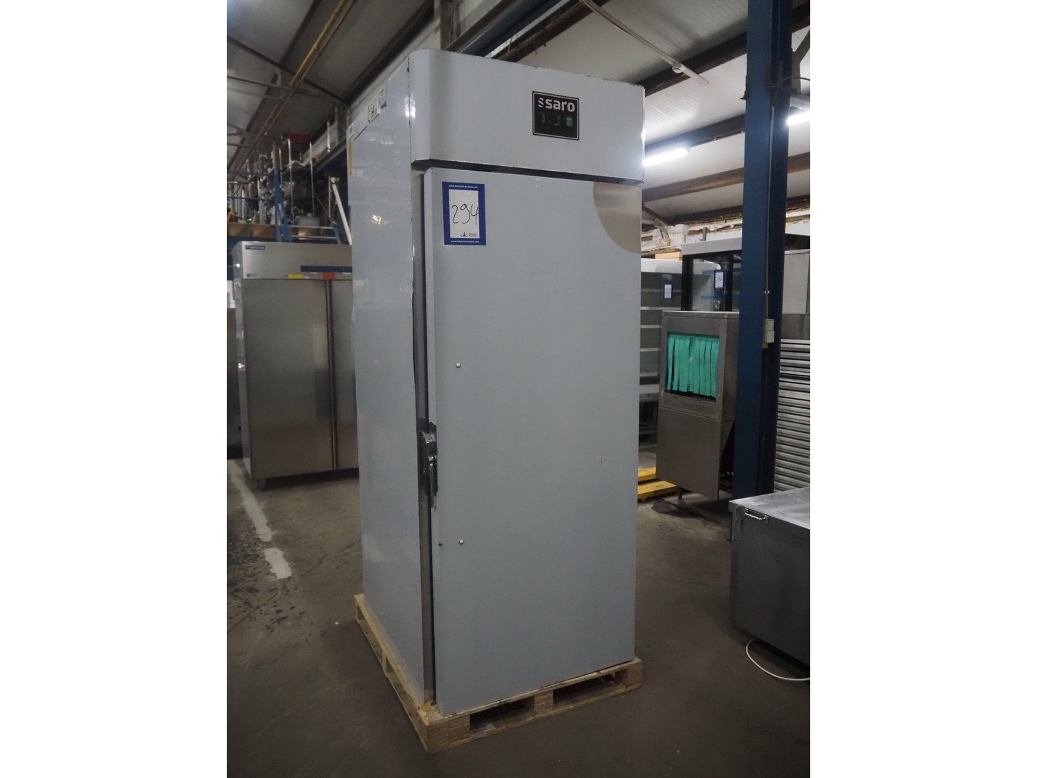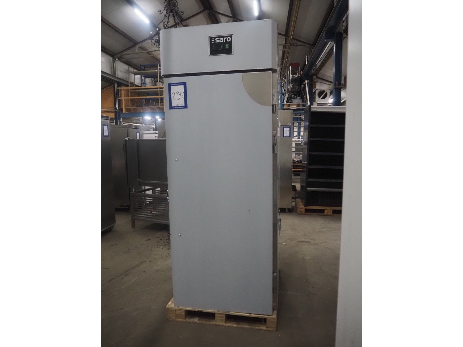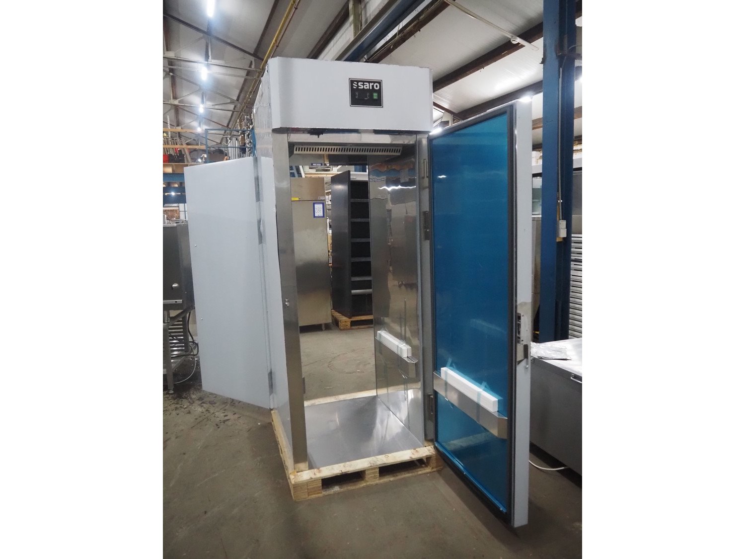 Saro Gastro-Products GmbH drive-in refrigerator, model: RT1, serial number: 23006122, 220-240 V, 50 Hz, 2 A, 300 W, weight: 158 kg, refrigerant: R290 / 0.105 kg, temperature range: 2-10°C, inside dimensions: 800 mm x 650 mm x 1750 mm, total dimensions: 1120 mm x 880 mm x 2200 mm.