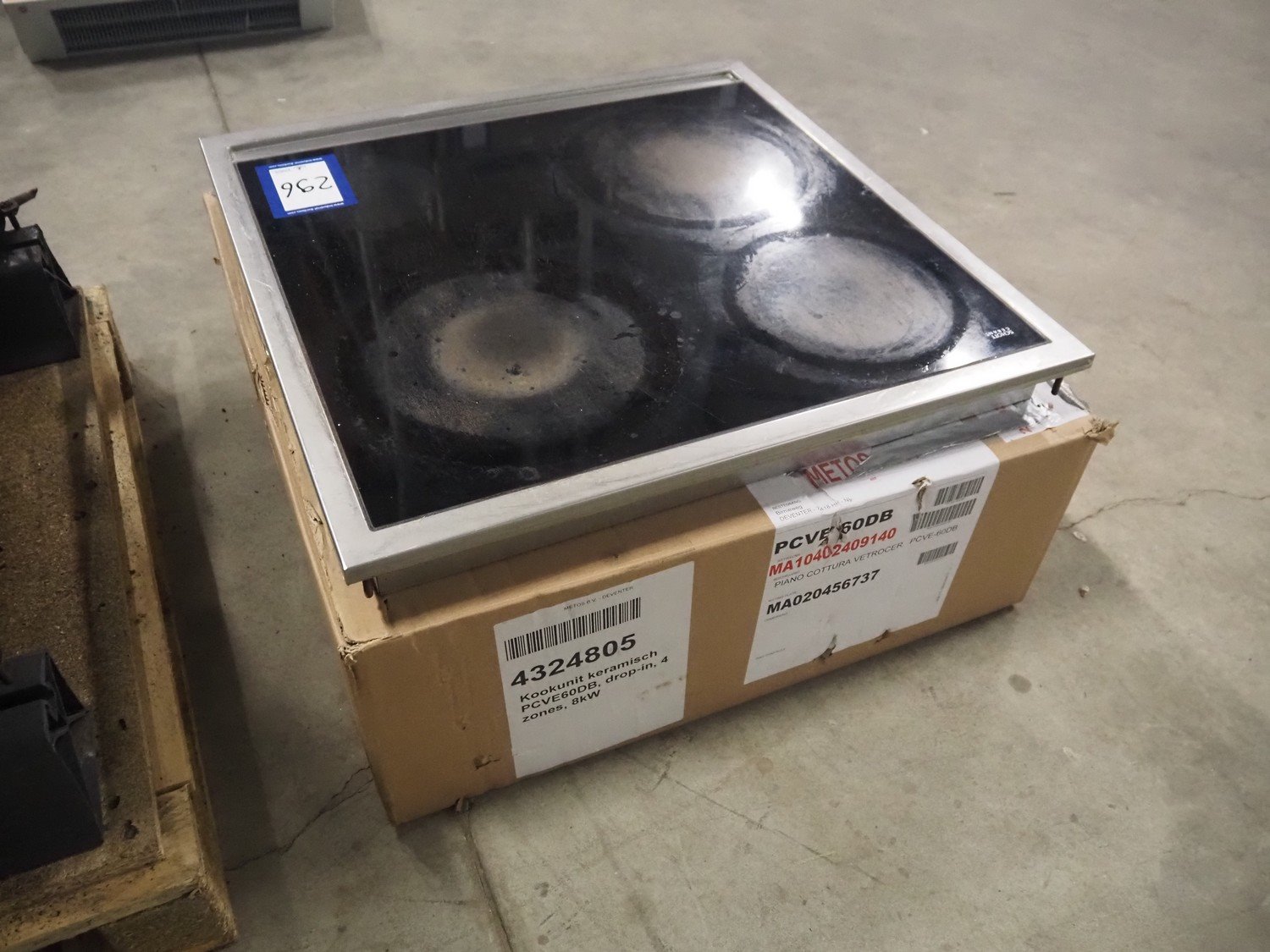 Ceramic hob, model: PCVE60DB, 8 kW, dimensions: 600 mm x 600 mm x 50 mm.