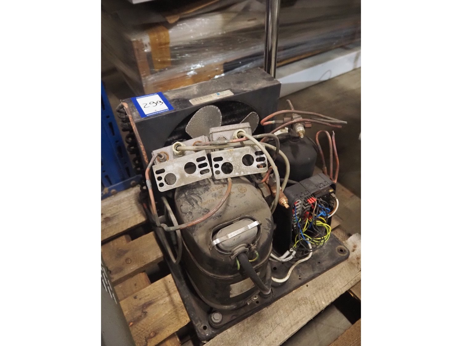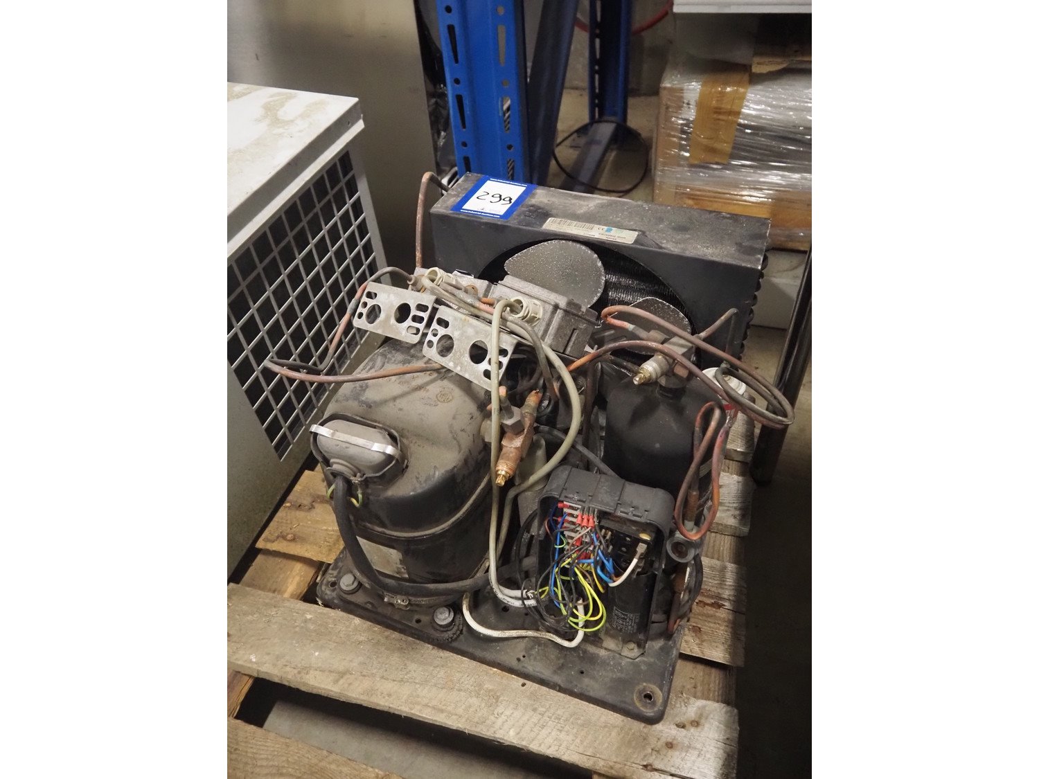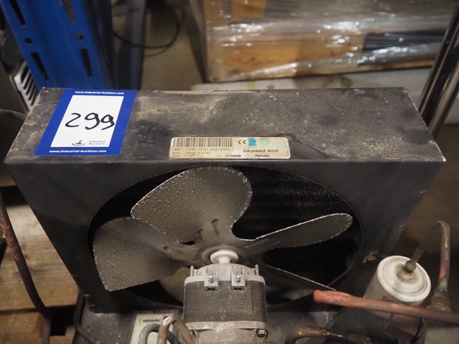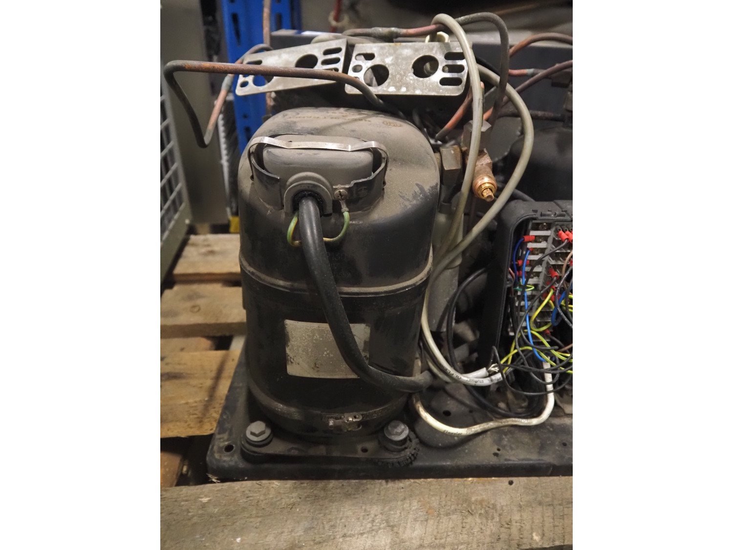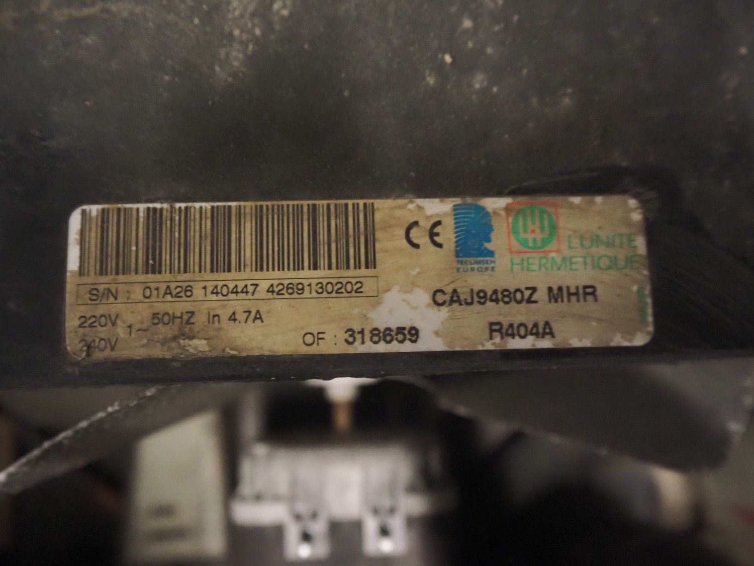 Tecumseh cooling compressor, model: CAJ9480Z MHR, serial number: 01A26 140447 4269130202, 220-240 V, 1 Ph, 50 Hz, refrigerant: R404A, dimensions: 430 mm x 470 mm x 420 mm.