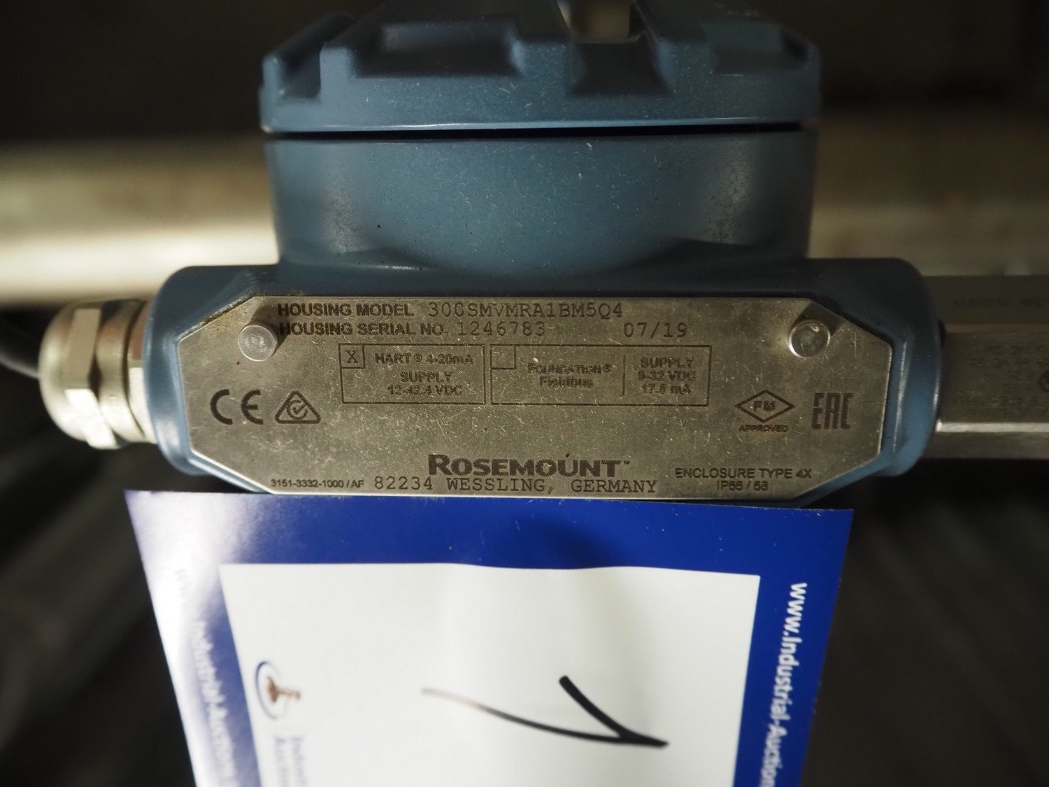 Rosemount flowmeter, model: 300SMVMRA1BM5Q4, serial number: 1246783, year of construction: 2019, dimensions: 200 mm x 200 mm x 500 mm.