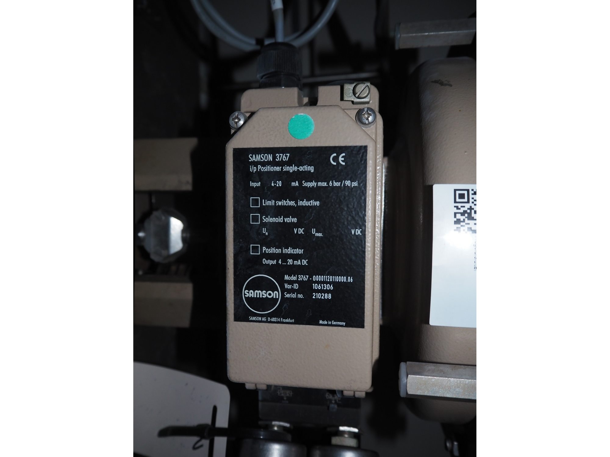 Samson valve with pneumatic diaphragm actuator and electropneumatic positioner, type actuator: 3277, type positioner: 3767, dimensions: 400 mm x 300 mm x 500 mm and ARI Armaturen pneumatic valve, type: DP33, serial number: 1219224448, dimensions: ø 300 mm x 530 mm.