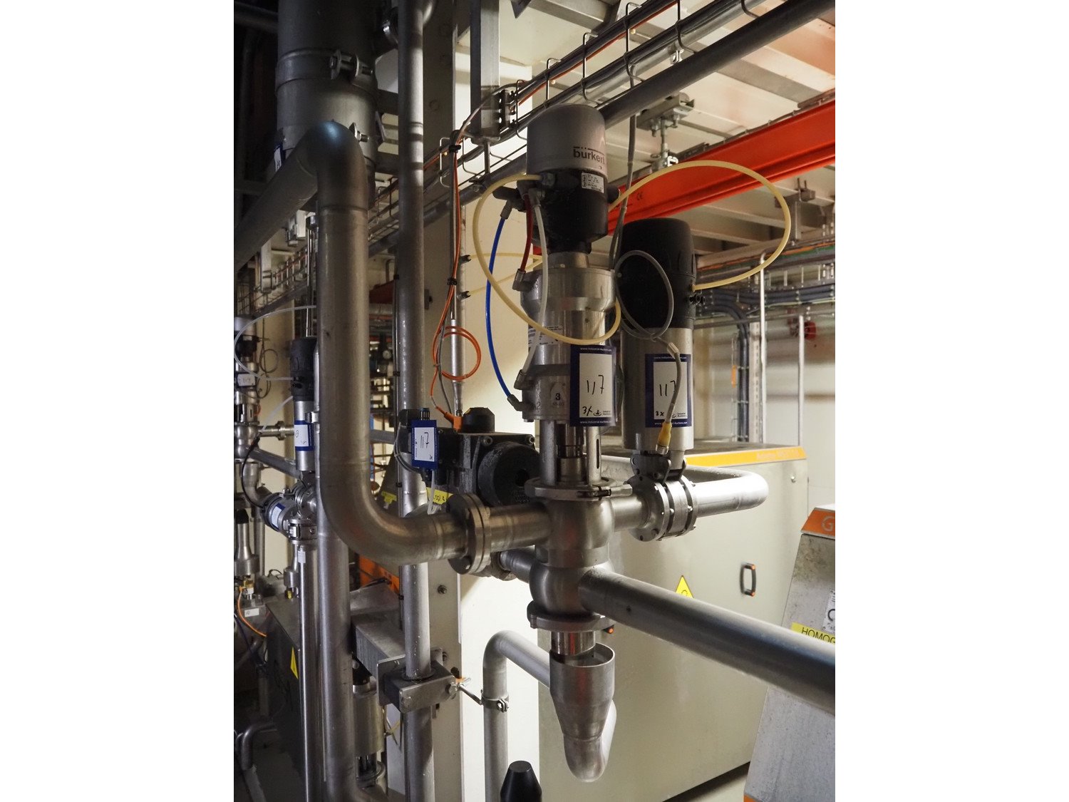 Bürkert valve with Schwer Fittings housing, DN: 40, dimensions: 300 mm x 150 mm x 300 mm, 1 Pentair and 1 Bardiani Valvole Spa valve, type Pentair valve: F257 100, type Bardiani Valvole Spa valve: B925, DN: 50, dimensions: ø 100 mm x 400 mm, ø 100 mm x 650 mm.