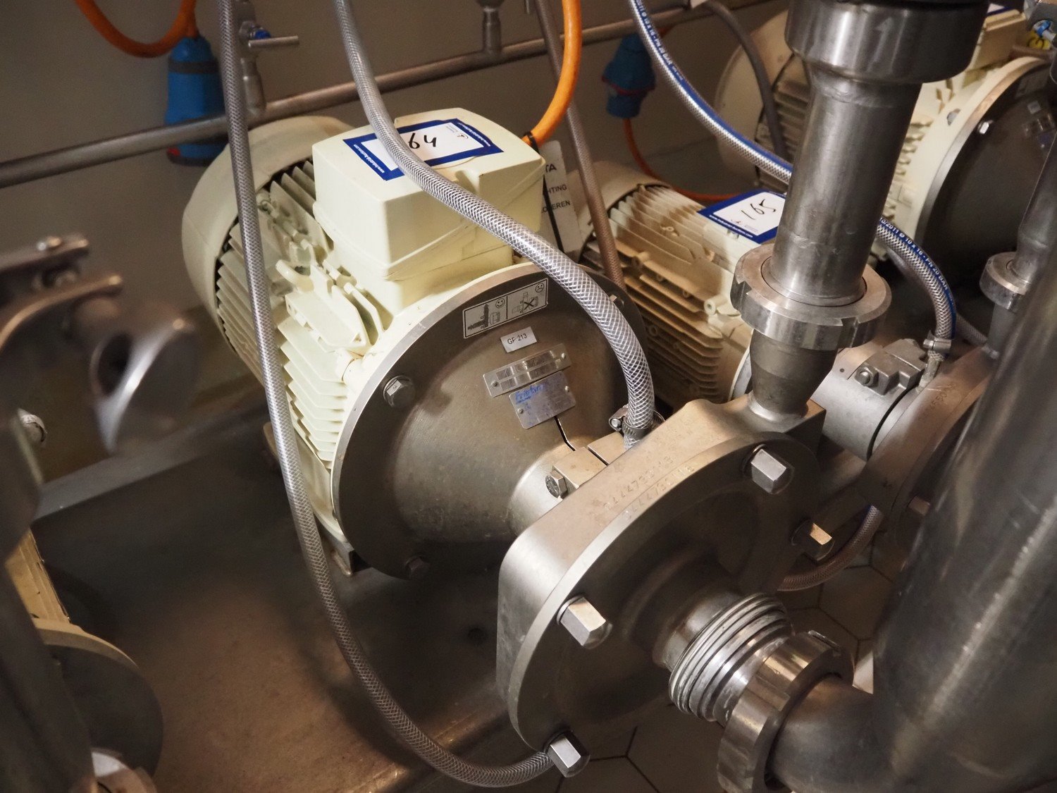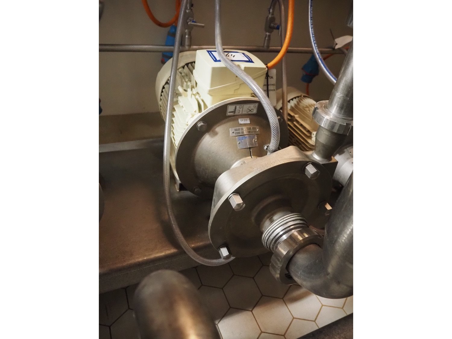 Fristam centrifugal pump, type: FP 742/195 VB, serial number: 0444730118, year of construction: 2021, Q: 8 m³/h, H: 28 m, P: 7.5 kW, N: 2900 l/min, dimensions: 700 mm x 400 mm x 450 mm.