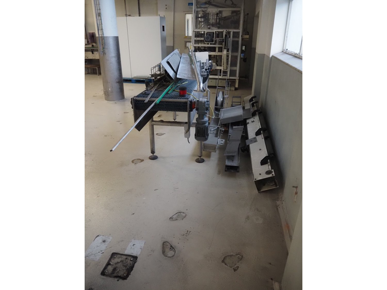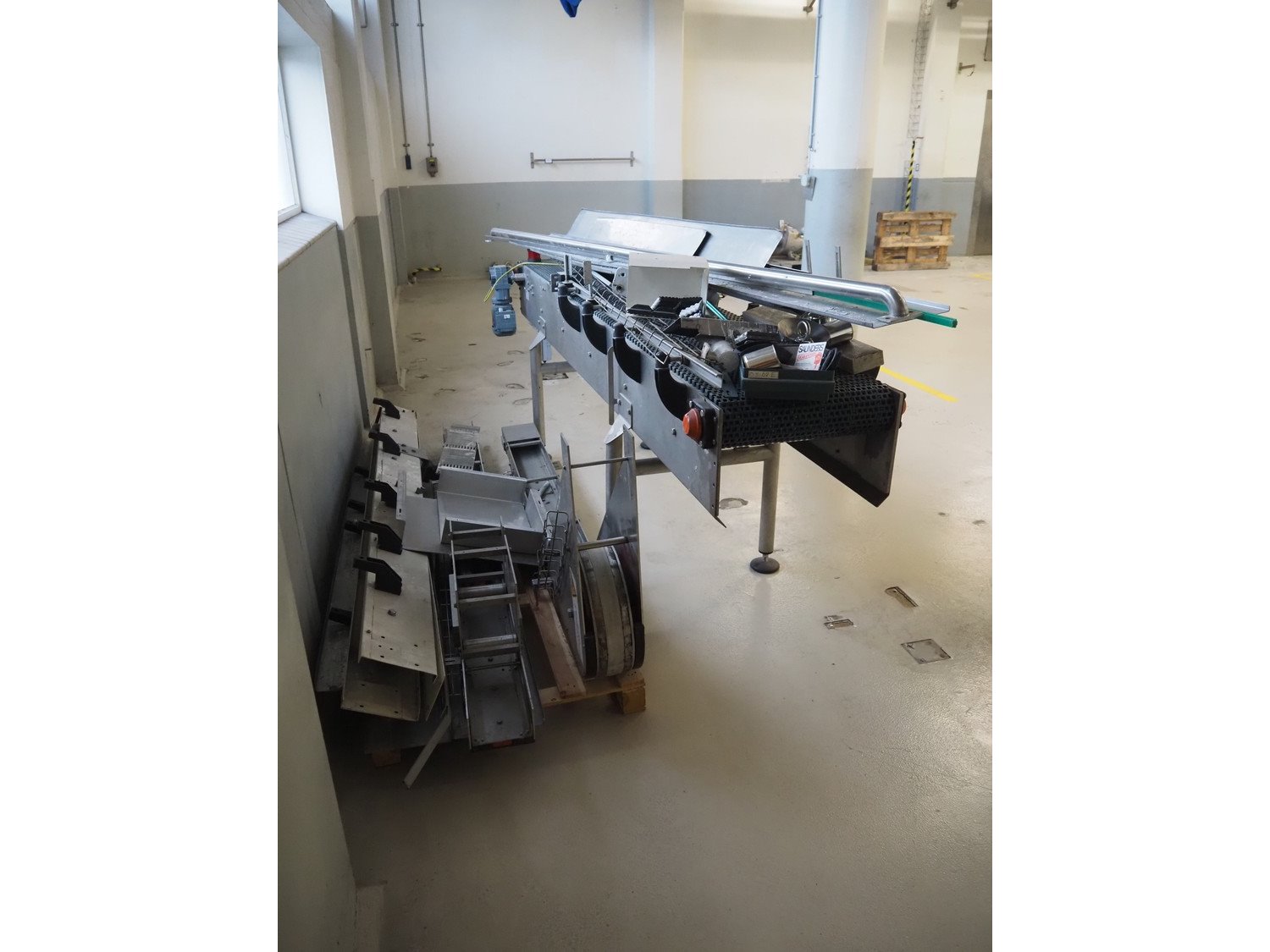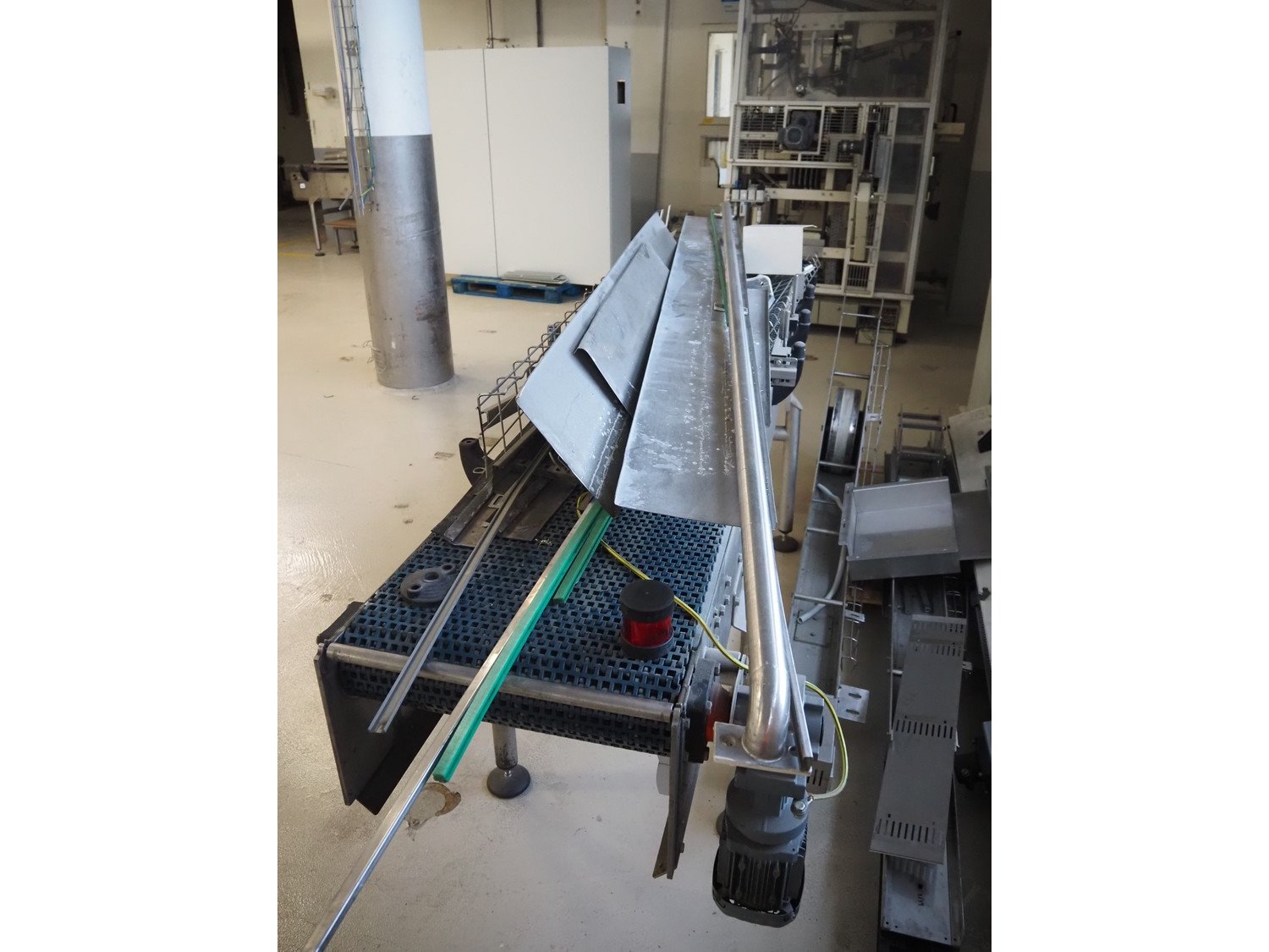 Apollo Engineering BV transport belt and 45° curve conveyor, machine number: 10162-0500, year of construction: 2010, plastic mesh belt, belt width: 510 mm, total dimensions: 3050 mm x 850 mm x 1300 mm and 2350 mm x 800 mm x 850 mm.