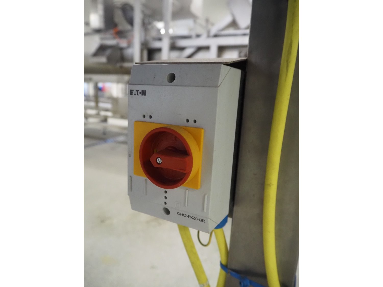 Mobile V-elevating belt, s/s frame, plastic belt, belt width: 475 mm, elevating height: 1600 mm, total dimensions: 2600 mm x 900 mm x 1600 mm.