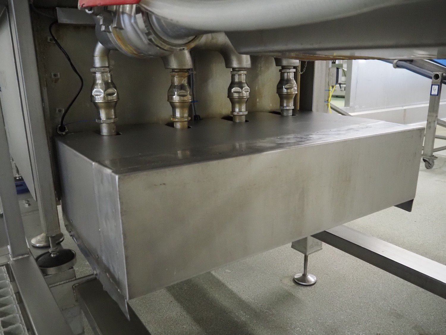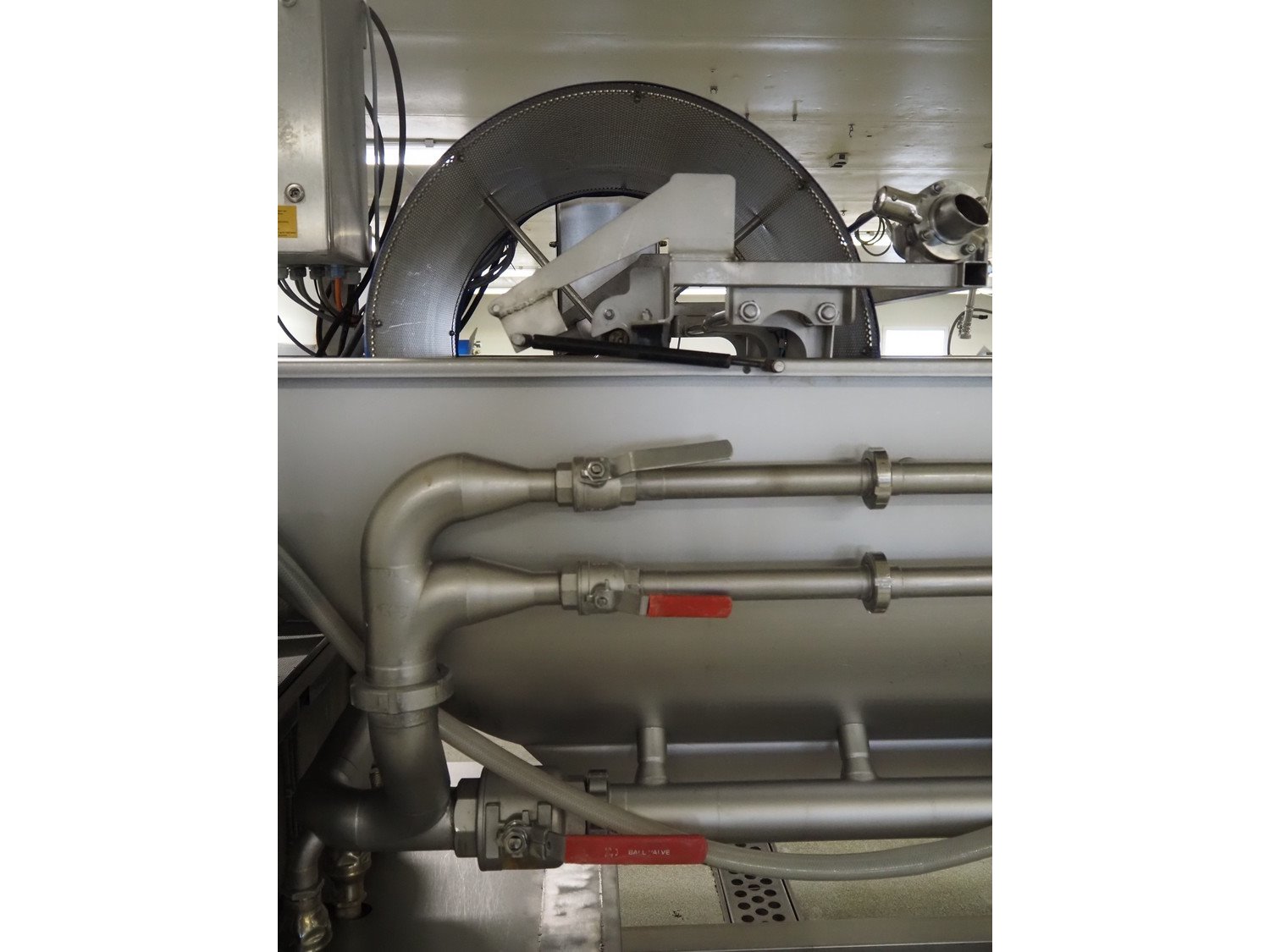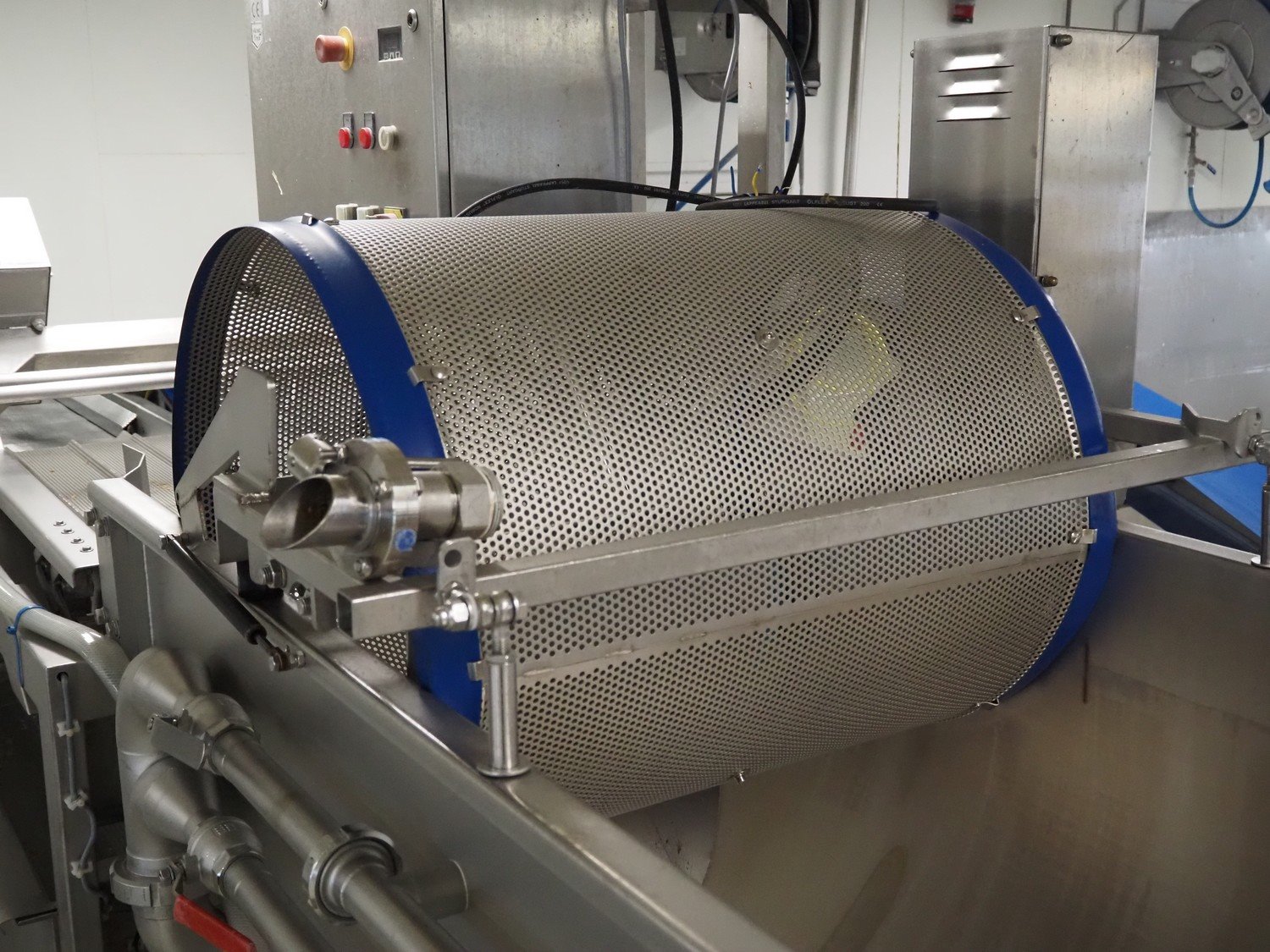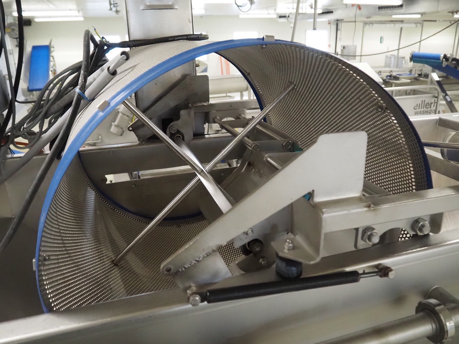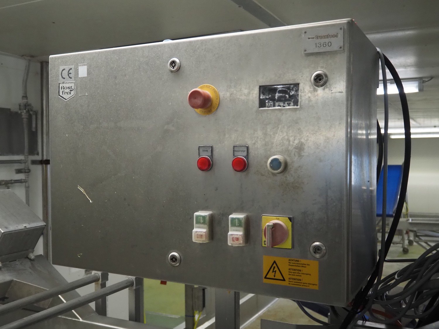 Kronen vegetable washer with outfeed vibrating gutter, type: GEWA 5000 D, serial number: 179, year of construction: 2001, 400 V, 3 Ph, 50 Hz, 11 kW, gutter width: 800 mm, total dimensions: 5200 mm x 1400 mm x 2400 mm.