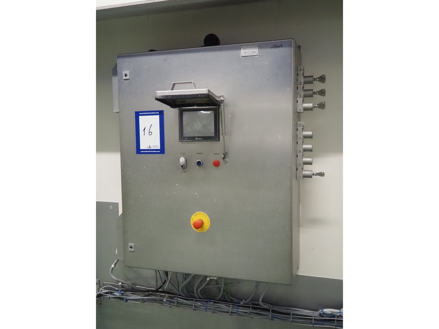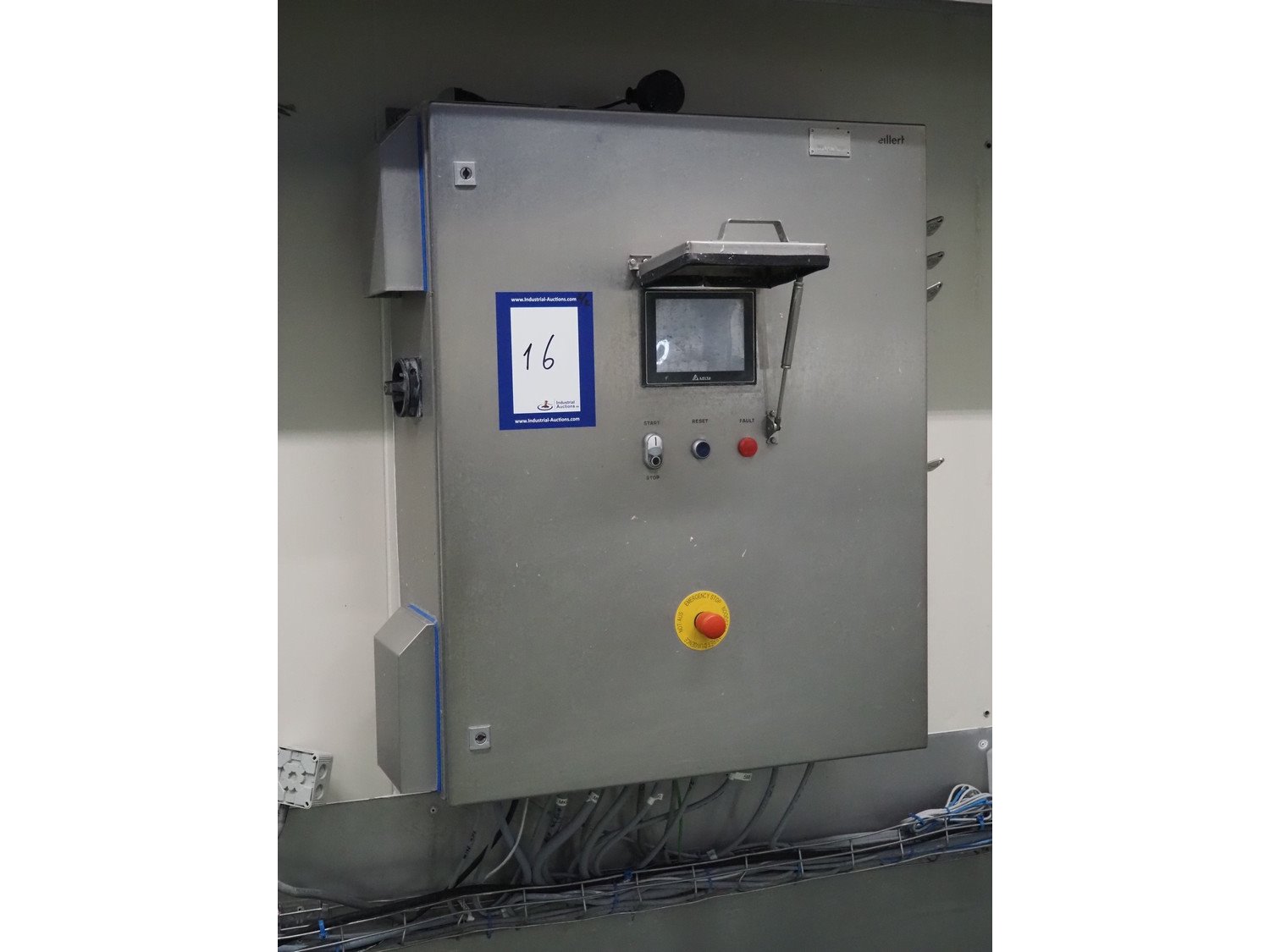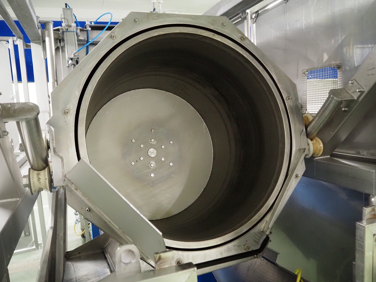 Eillert automatic centrifuges for vegetables, type: ASD-800, machine number: 004, year of construction: 2006, 400 V, 3 Ph, 8.7 A, 5.5 kW, air: 6 bar, water: 2 bar, volume: 800 liter, total dimensions: 2900 mm x 1800 mm x 1650 mm, including switch cabinet, dimensions: 900 mm x 300 mm x 1000 mm.