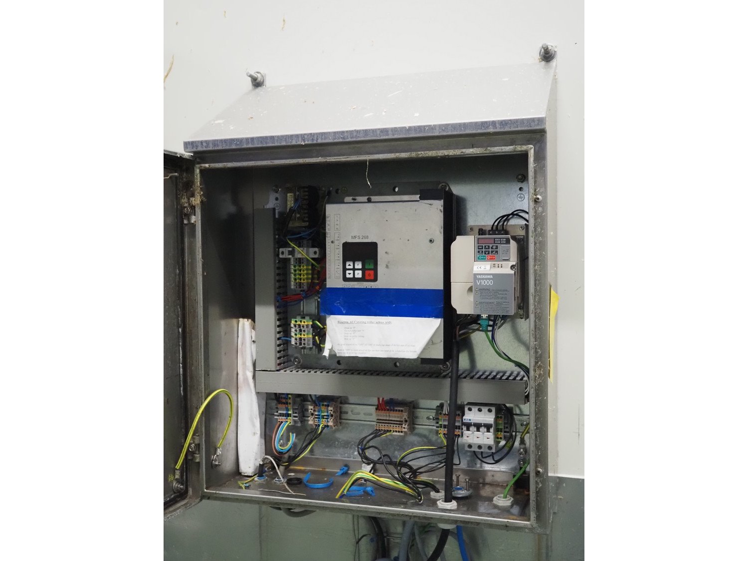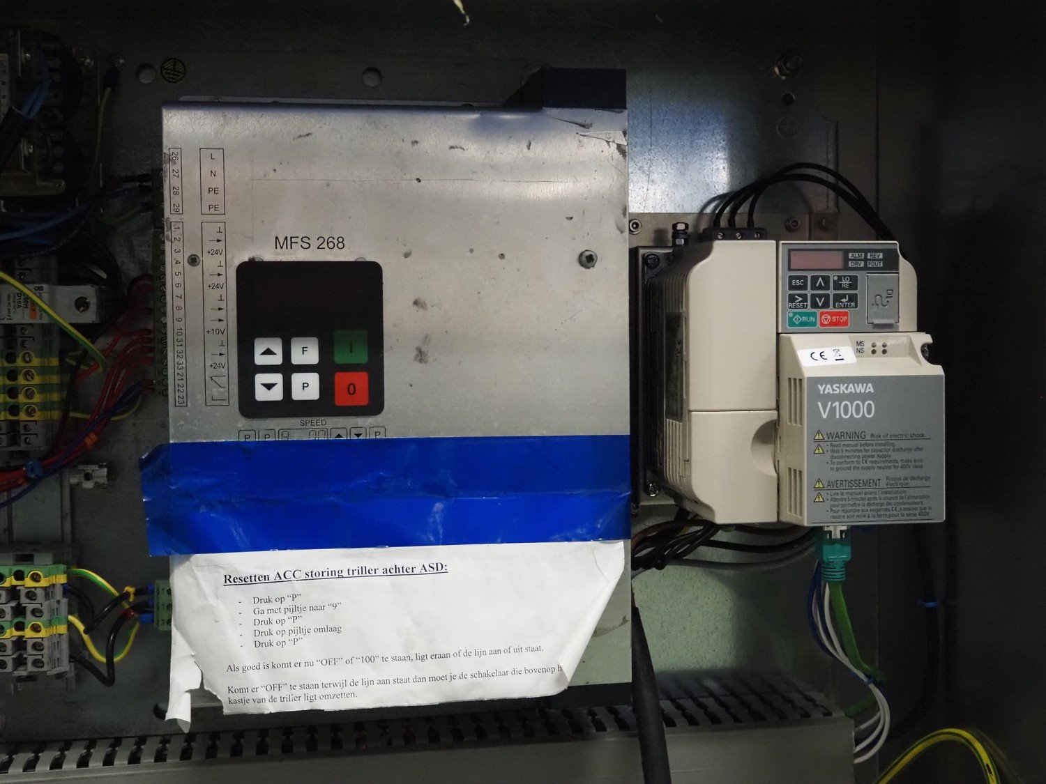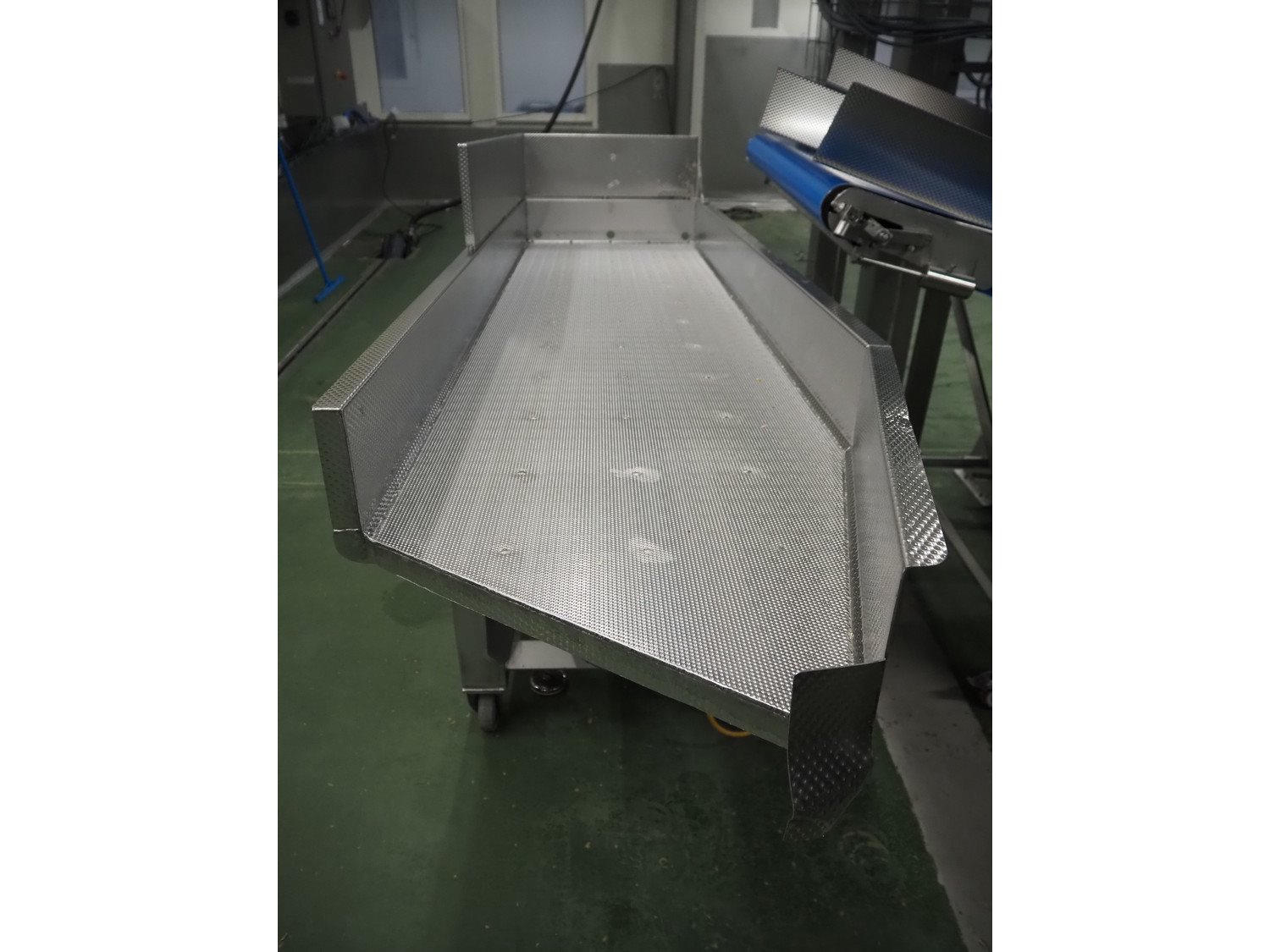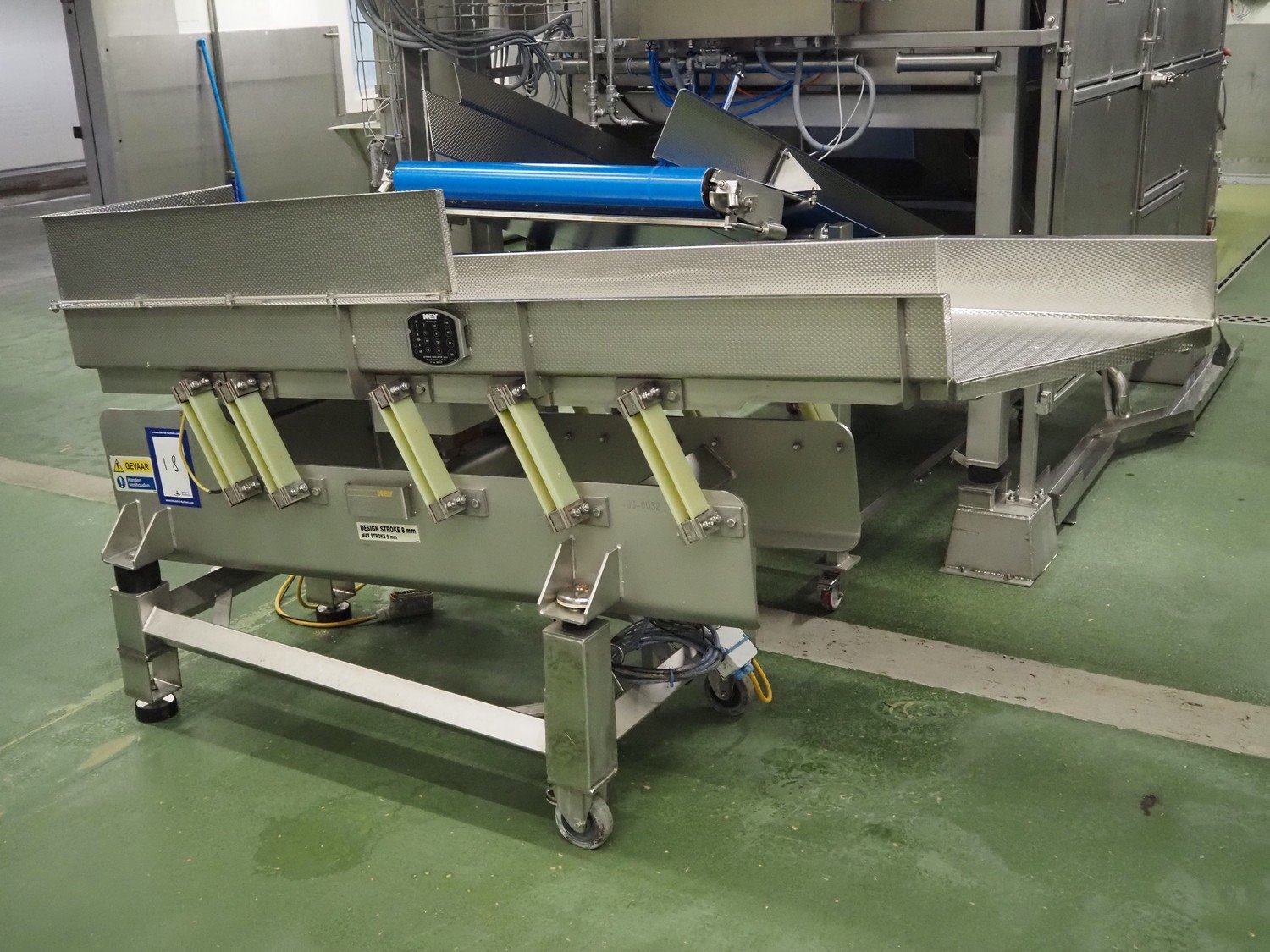 Key Superior vibrating gutter, year of construction: 2006, gutter width: 600 mm, outfeed height: 1120 mm, design stroke: 8 mm, maximum stroke: 9 mm, total dimensions: 2550 mm x 700 mm x 1100 mm, switch cabinet, dimensions: 600 mm x 800 mm x 250 mm.