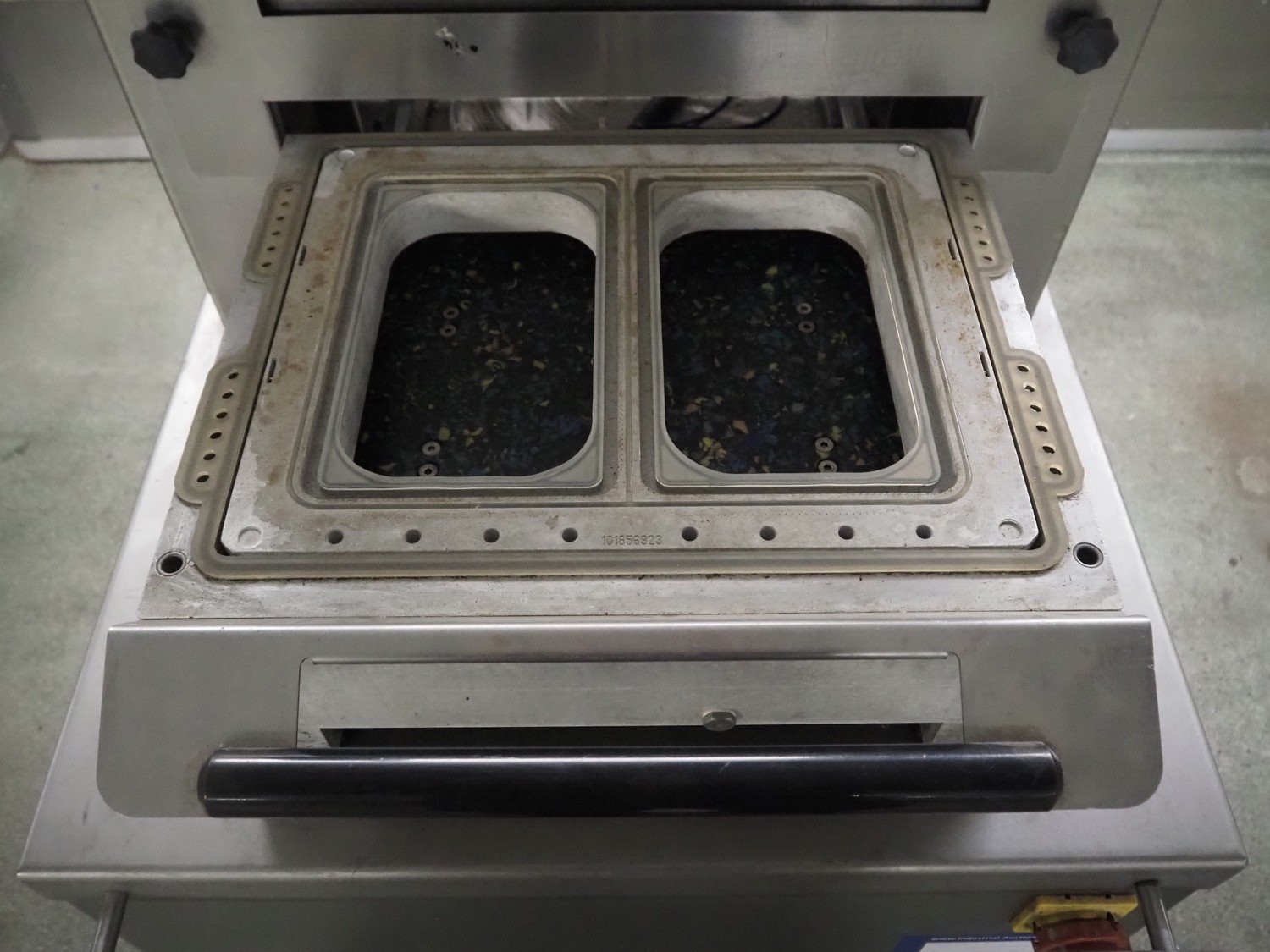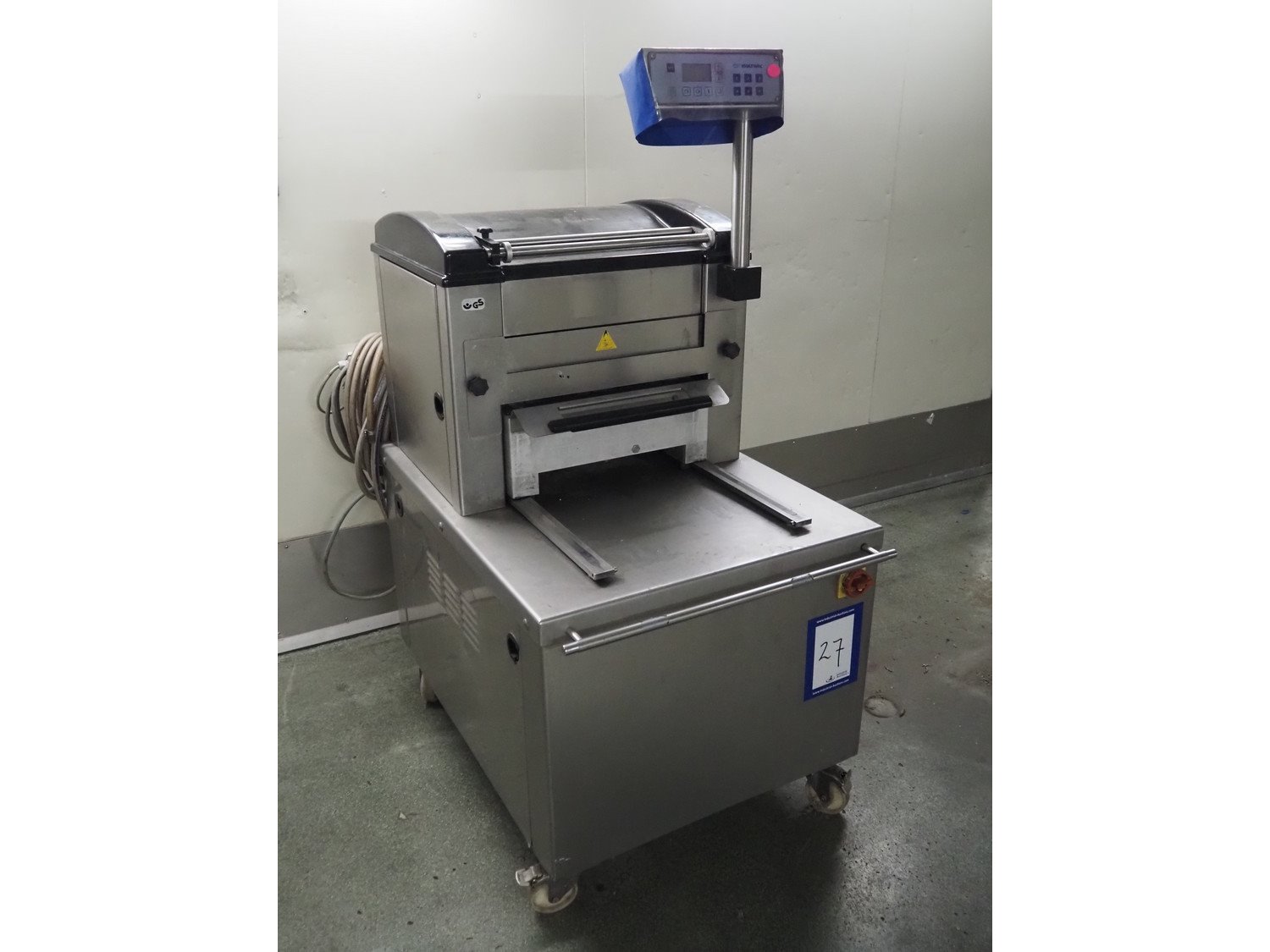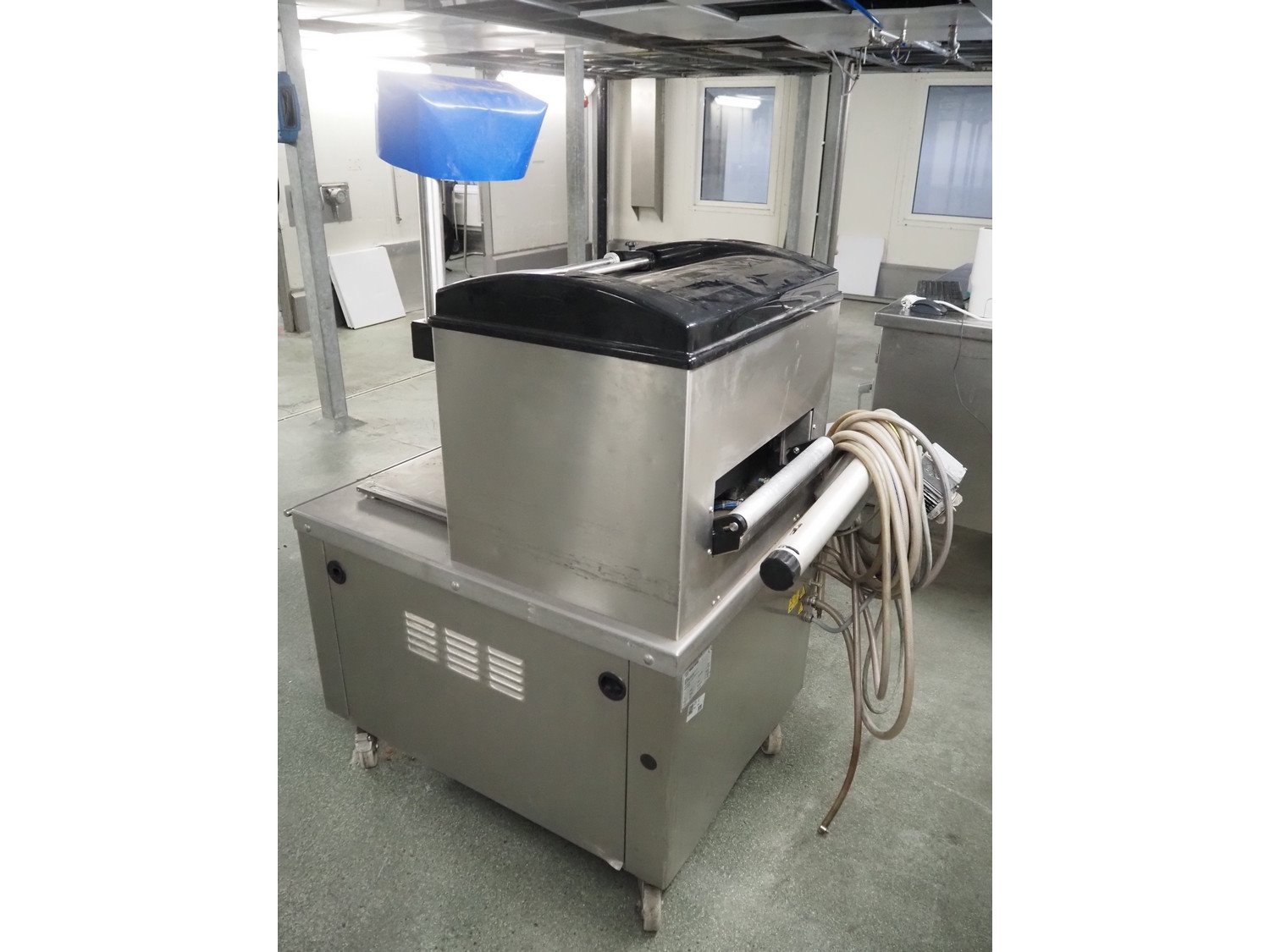 Multivac mobile traysealer, type: T200, machine number: 121012, year of construction: 2008, 400 V, 3 Ph, 50 Hz, 20 A, 3.8 kW, dye: (2x) 245 mm x 150 mm, Busch vacuum pump, type: RA 0063 F, year of construction: 2007, capacity: 63 m³ per hour, total dimensions: 1250 mm x 800 mm x 1610 mm.