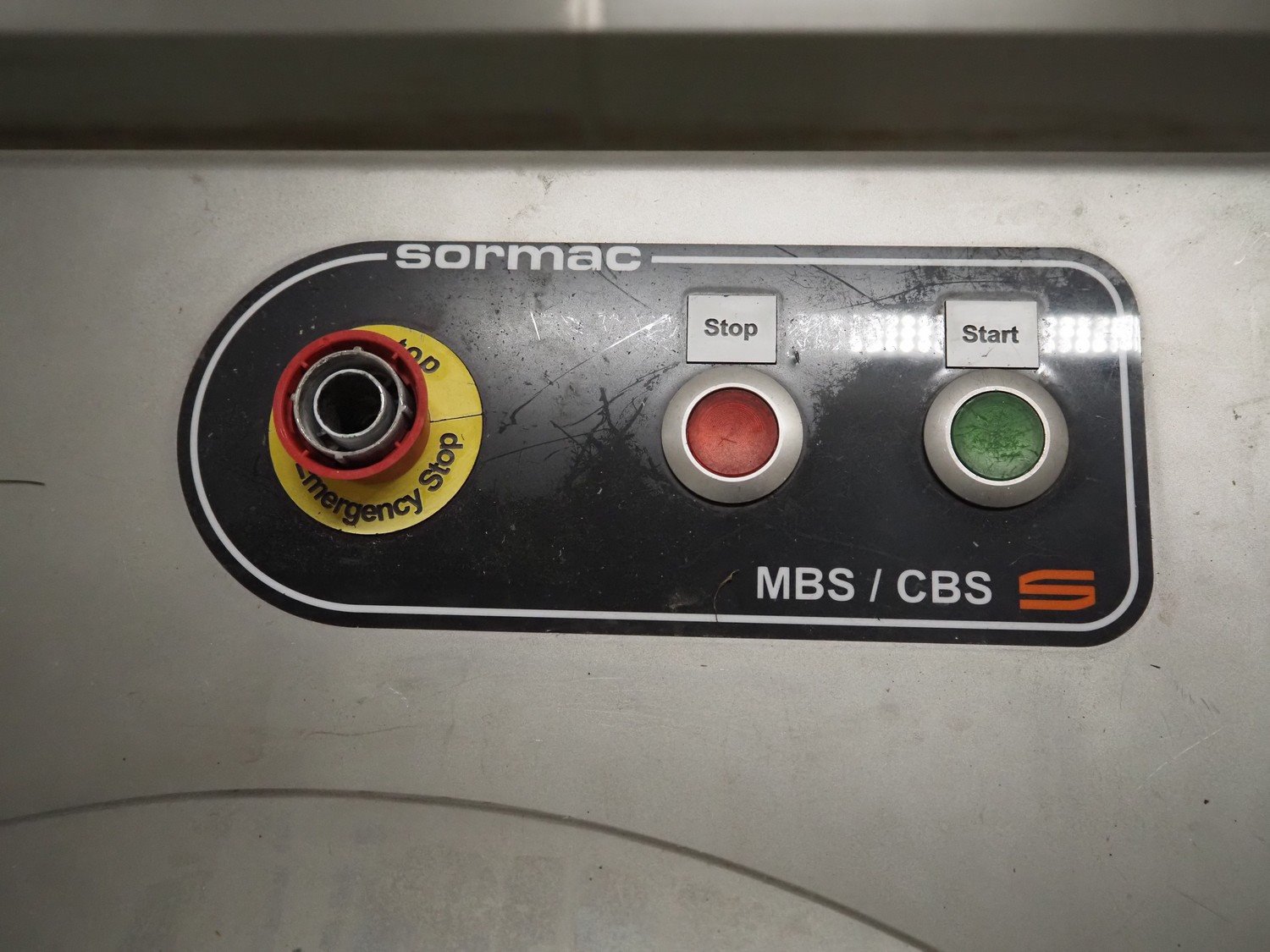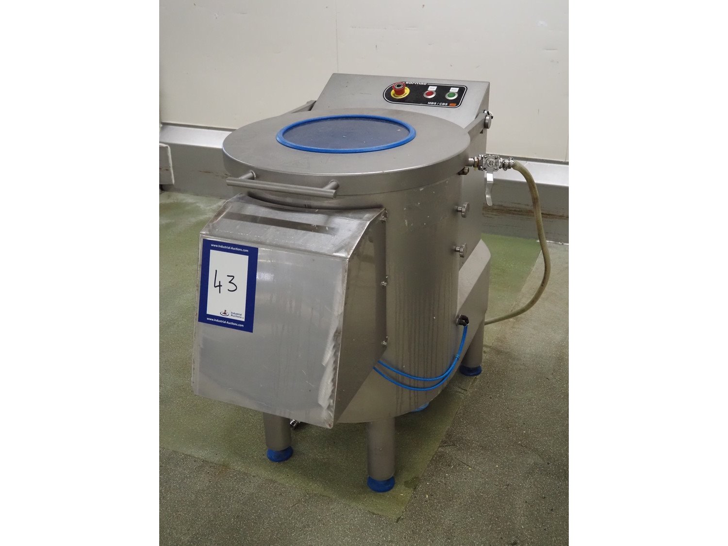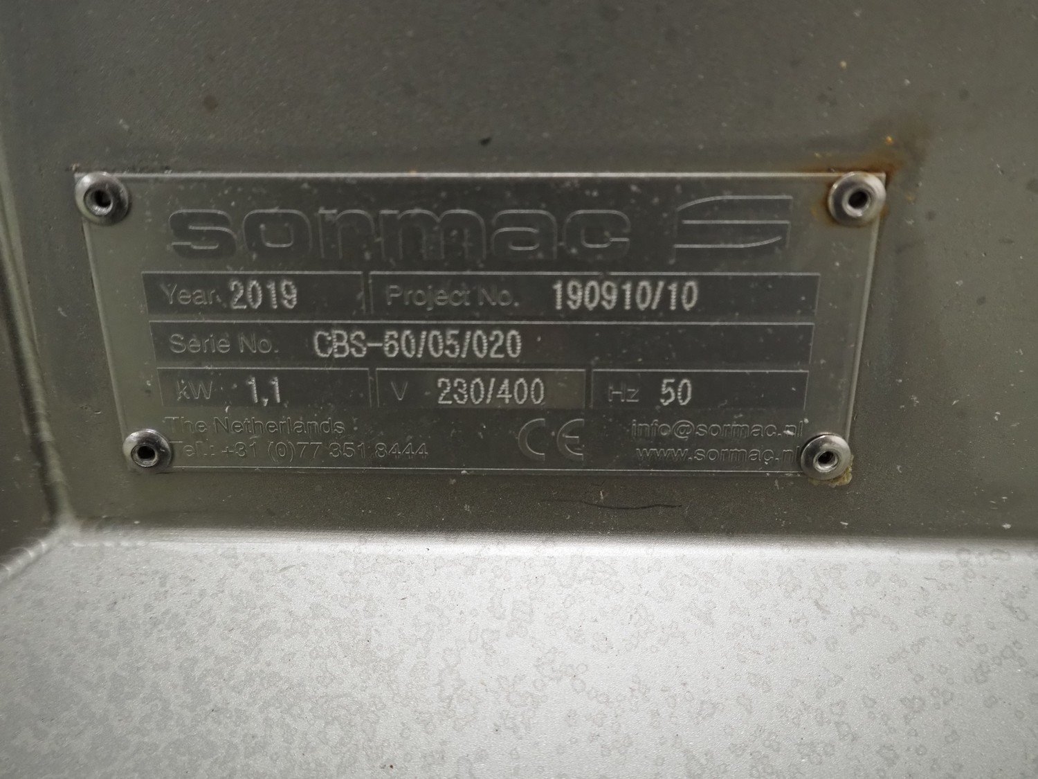 Sormac peeler, model: CBS, serial number: CBS-60/05-020, year of construction: 2019, 230/400 V, 50 Hz, 1.1 kW, dimensions: 800 mm x 1200 mm x 1100 mm. Emergency stop broken.