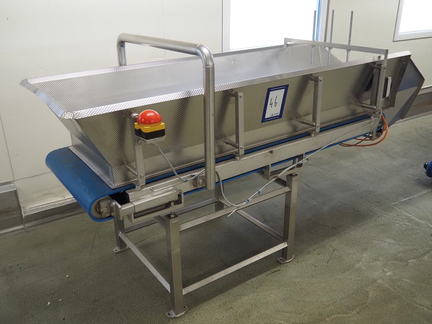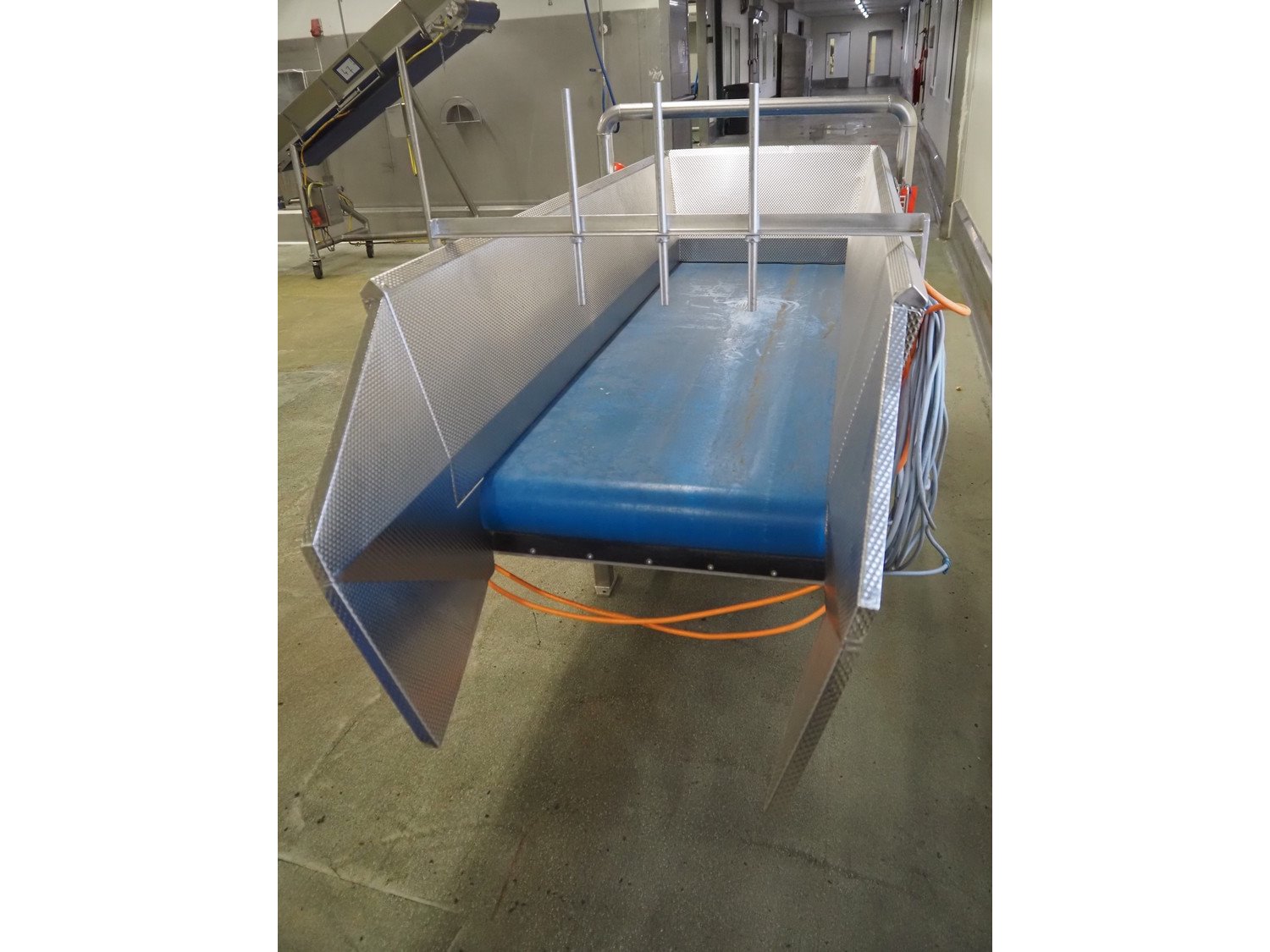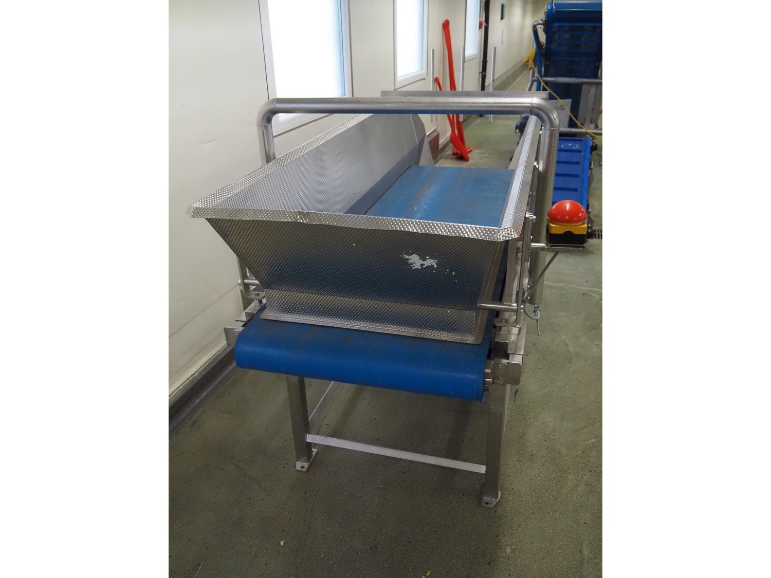 Buffer infeed belt, s/s frame, plastic belt, belt width: 680 mm, total dimensions: 2600 mm x 1000 mm x 1350 mm.
