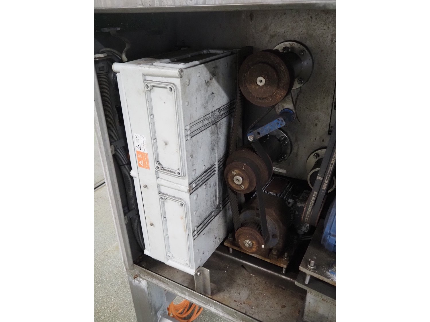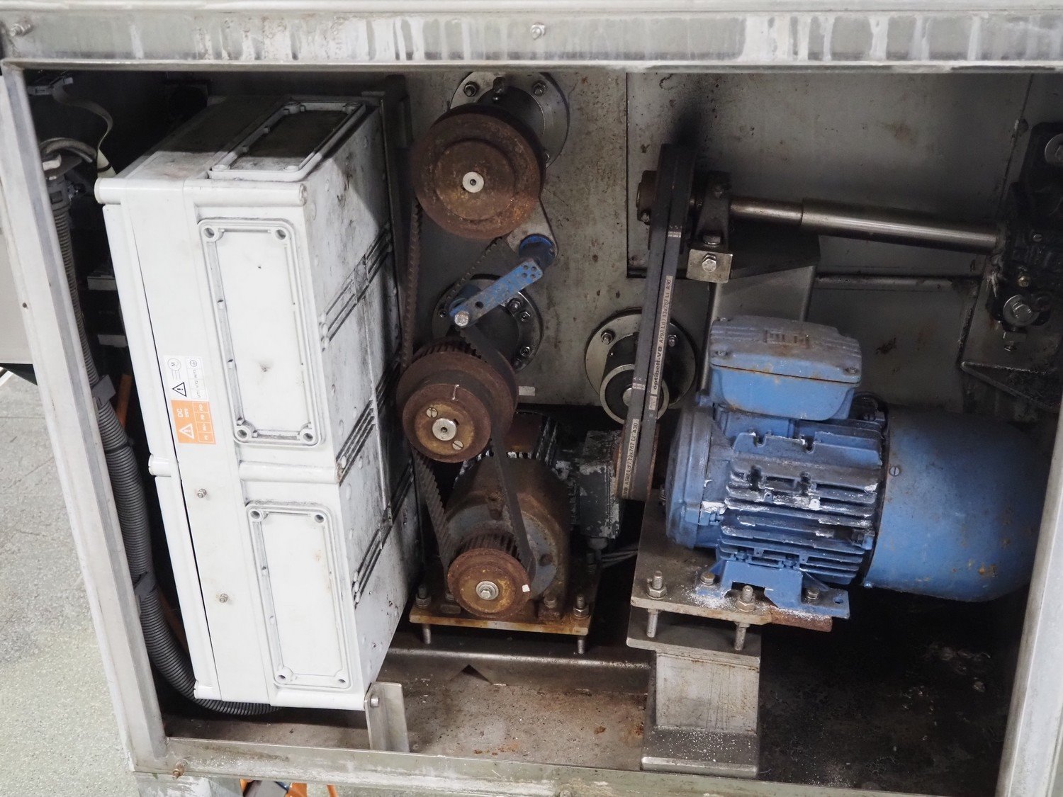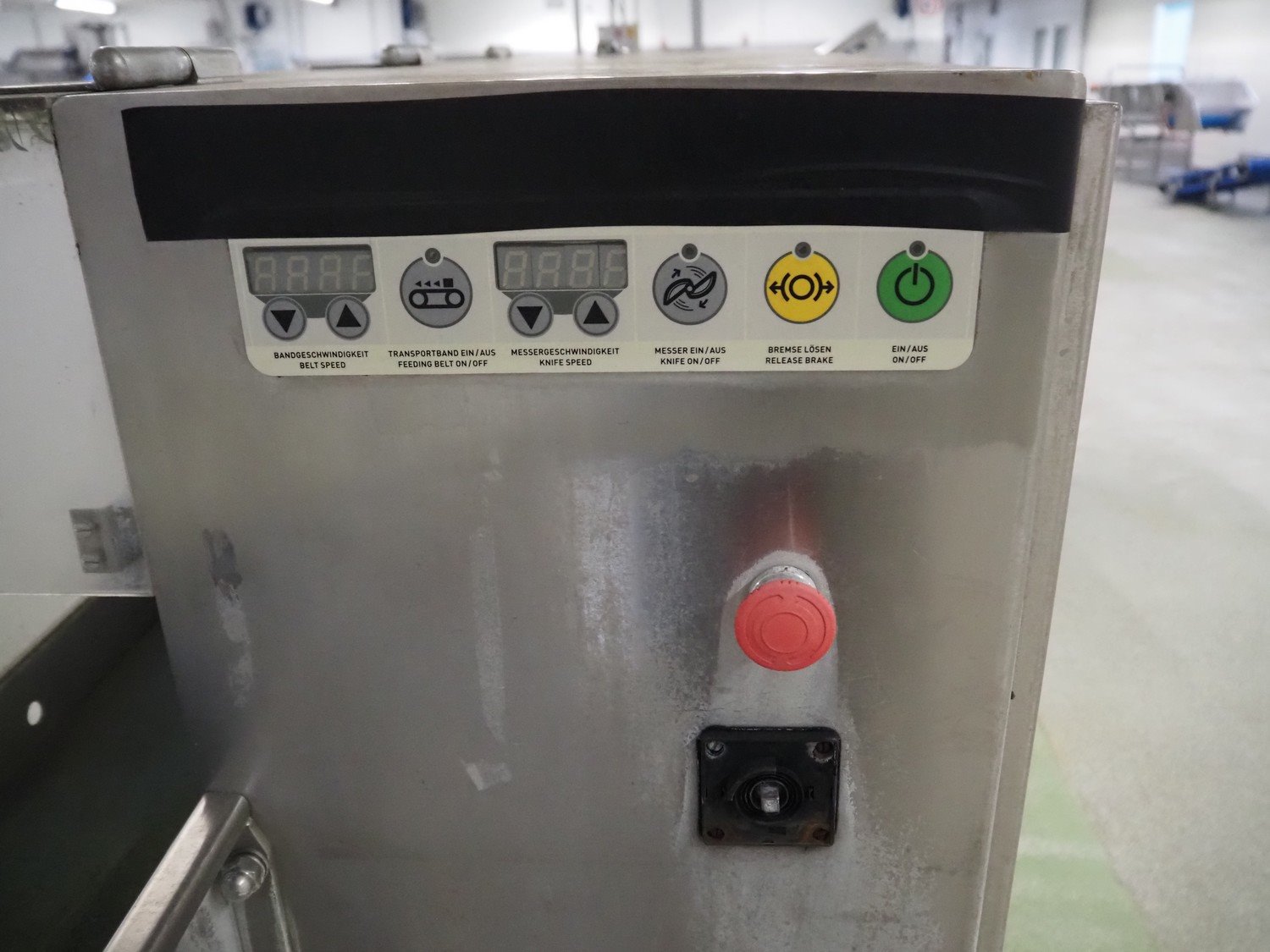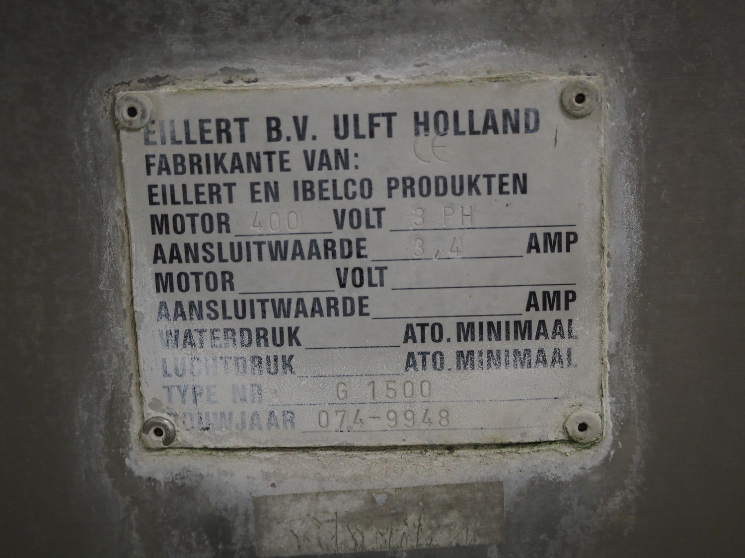 Eillert belt slicer, type: G 1500, serial number: 074-9948, 400 V, 3 Ph, 3.4 A, plastic belt, belt width: 150 mm, total dimensions: 1700 mm x 700 mm x 1280 mm