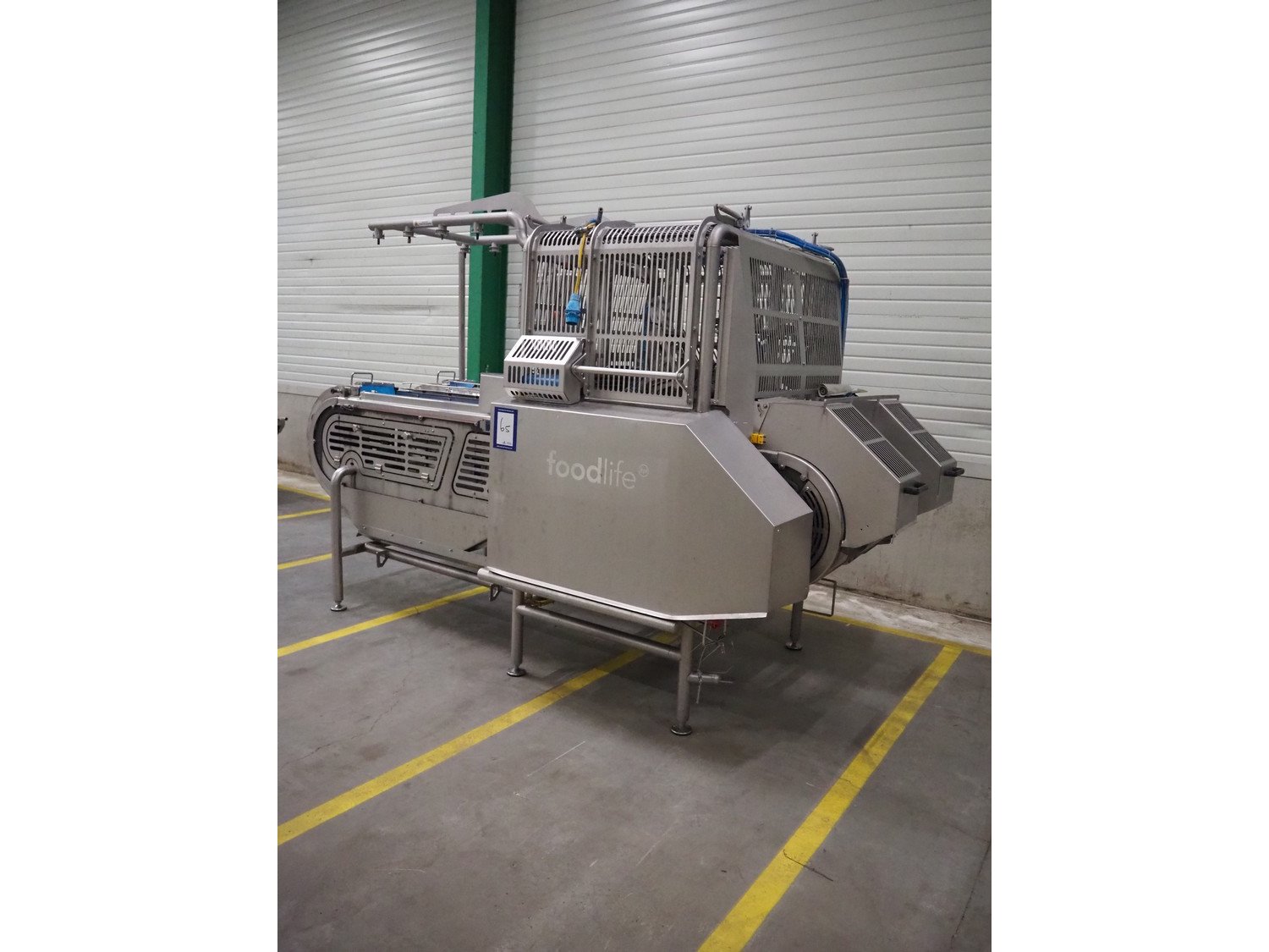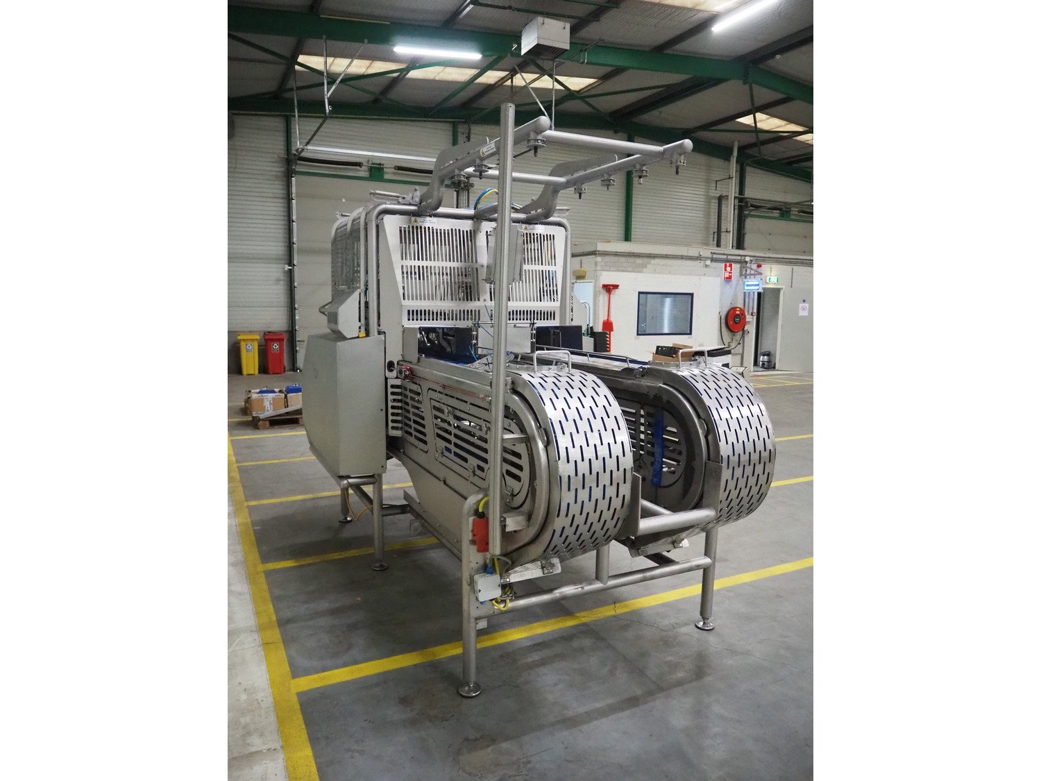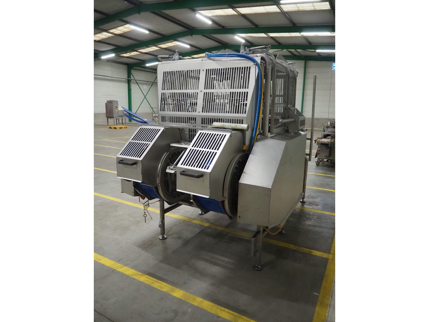 Hitec / Foodlife double lane decoring machine, type: CABRO TWIN SL V, serial number: 2013-0228/WN 1095, year of construction: 2014, 23 kW, maximum product diameter: 230 mm, total dimensions: 3900 mm x 1800 mm x 2520 mm. Including pallet with various parts.