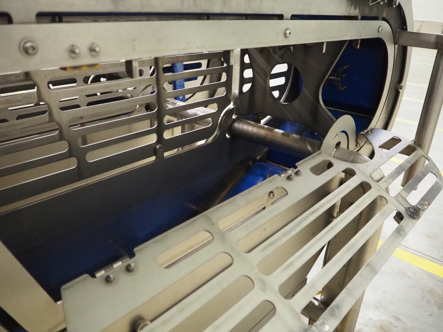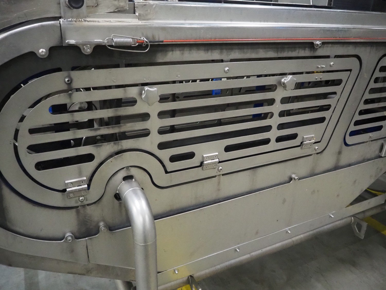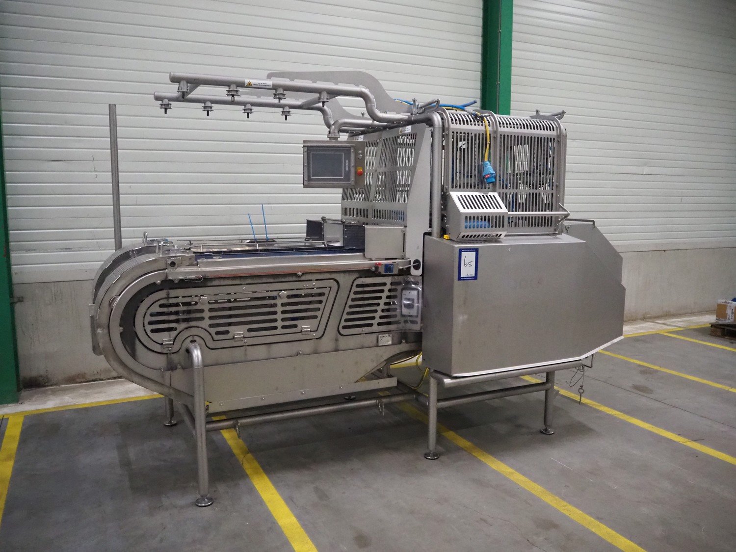 Hitec / Foodlife double lane decoring machine, type: CABRO TWIN SL V, serial number: 2013-0228/WN 1095, year of construction: 2014, 23 kW, maximum product diameter: 230 mm, total dimensions: 3900 mm x 1800 mm x 2520 mm. Including pallet with various parts.