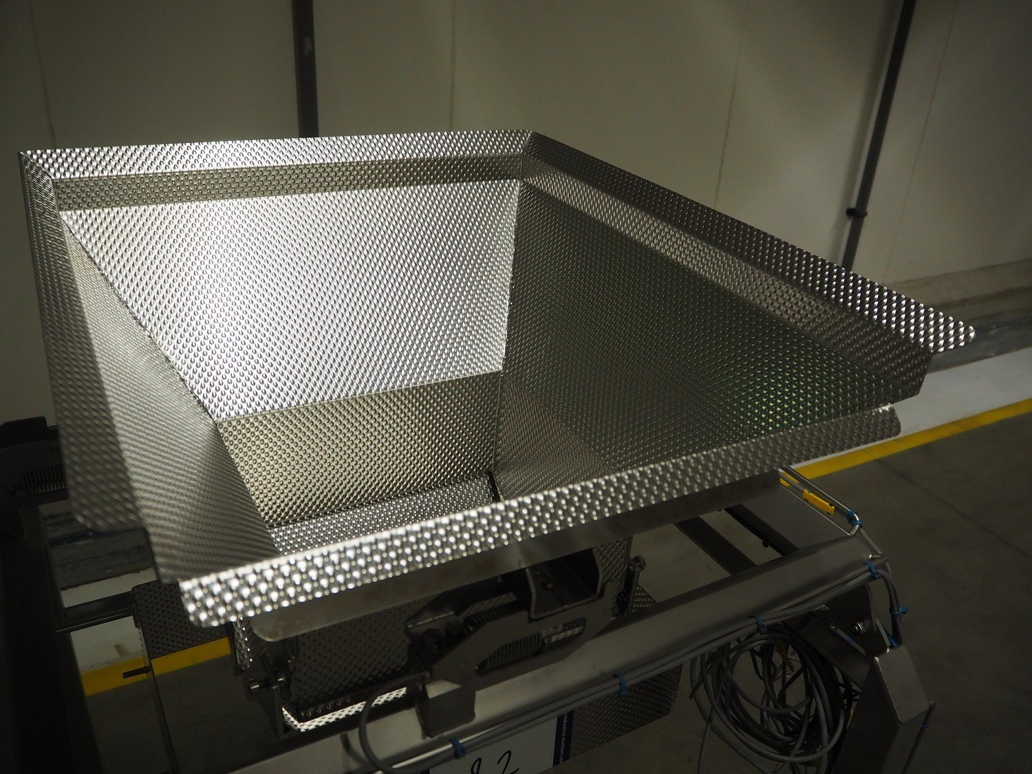 Weighing and dosing hopper, working width hopper: 330 mm, total dimensions: 900 mm x 750 mm x 1520 mm, pallet with switch cabinet, dimensions: 600 mm x 800 mm x 250 mm.