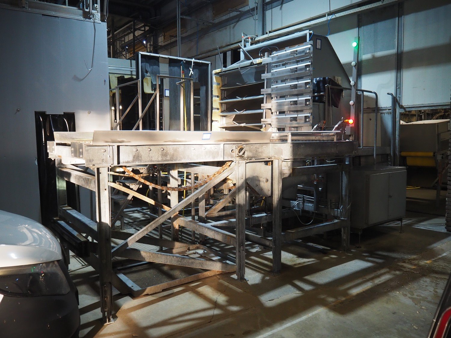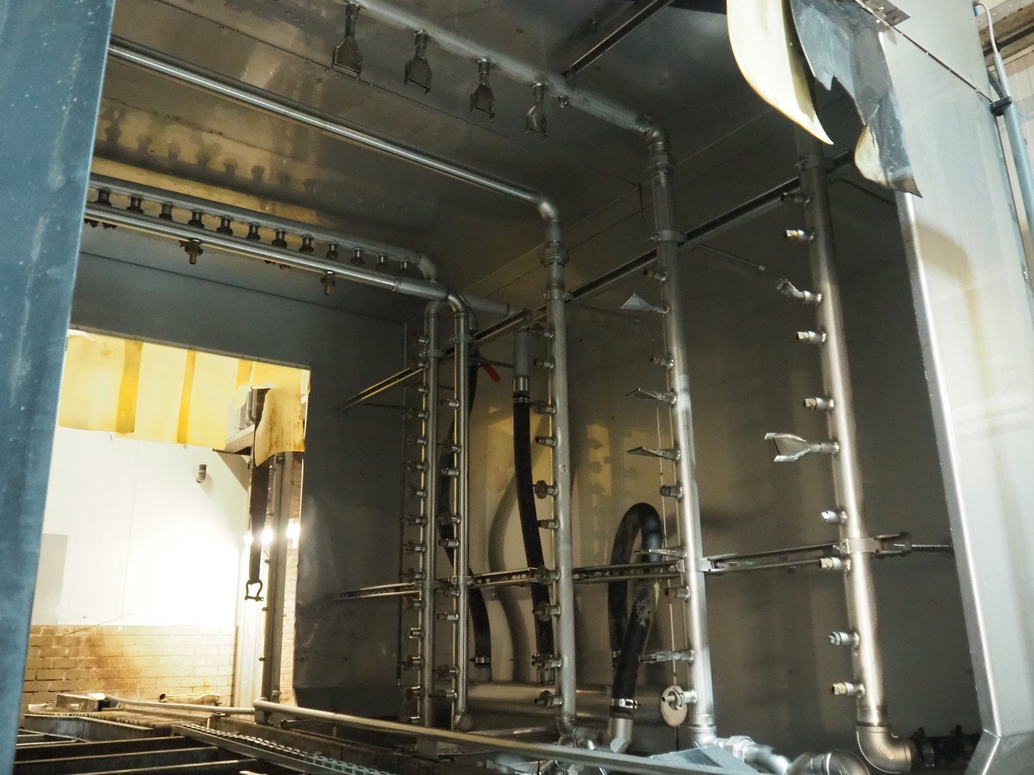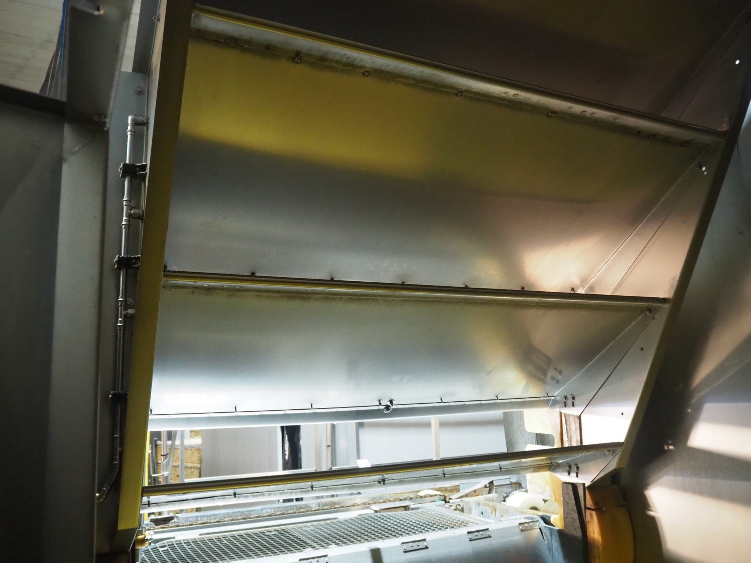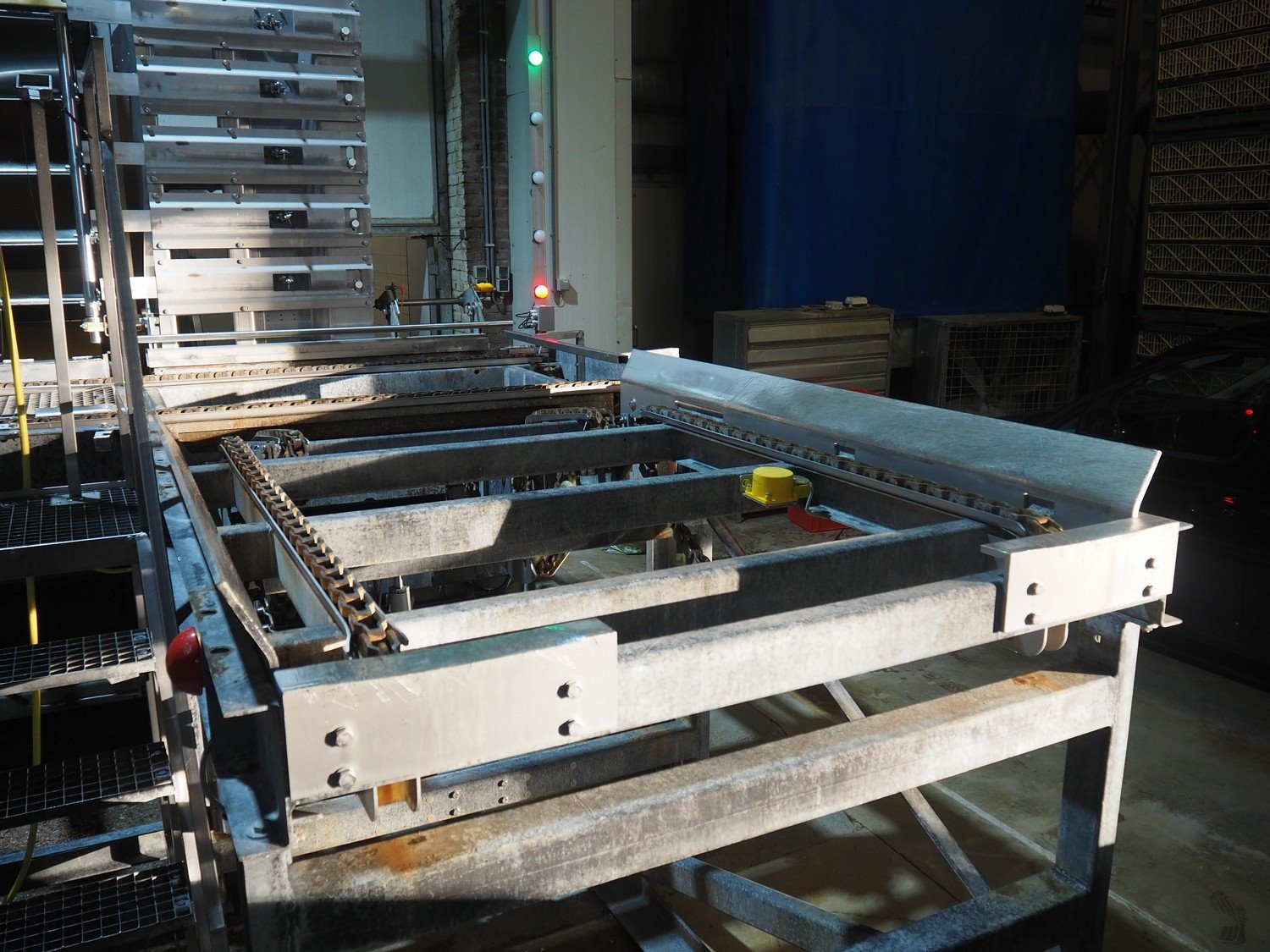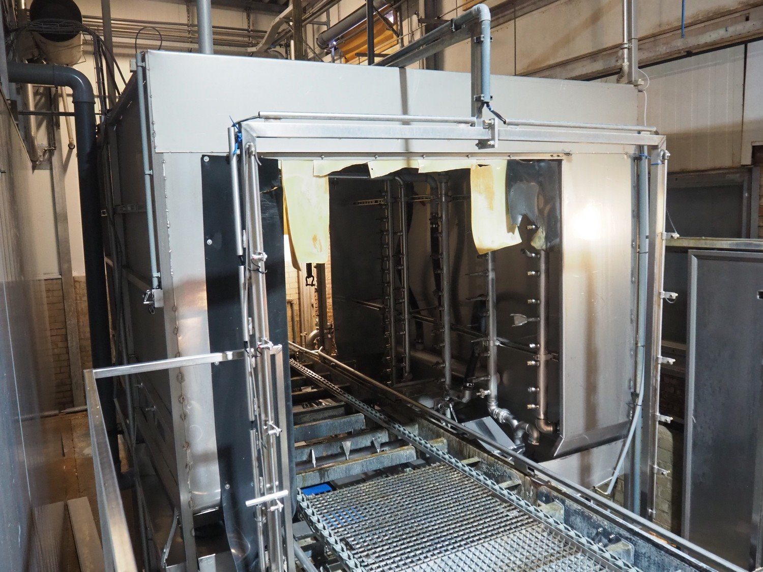 Stork live-bird unloading system with crate washing machine, number: 94-03-22, total belt width: 1200 mm, plastic outfeed belt, belt width: 1600 mm, clearance washing machine: 1200 mm x 1400 mm, total dimensions: 10000 mm x 2600 mm x 3400 mm. Important! A bid on a lot is including professional dismantling. Pickup of the lots on 12 December 2025 at pre-specified times.