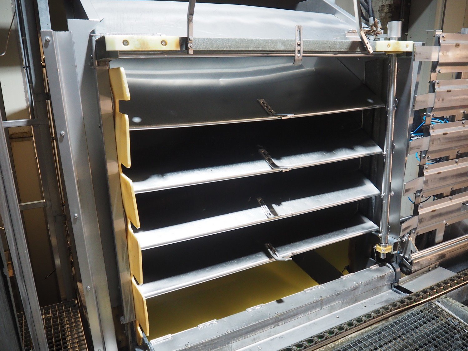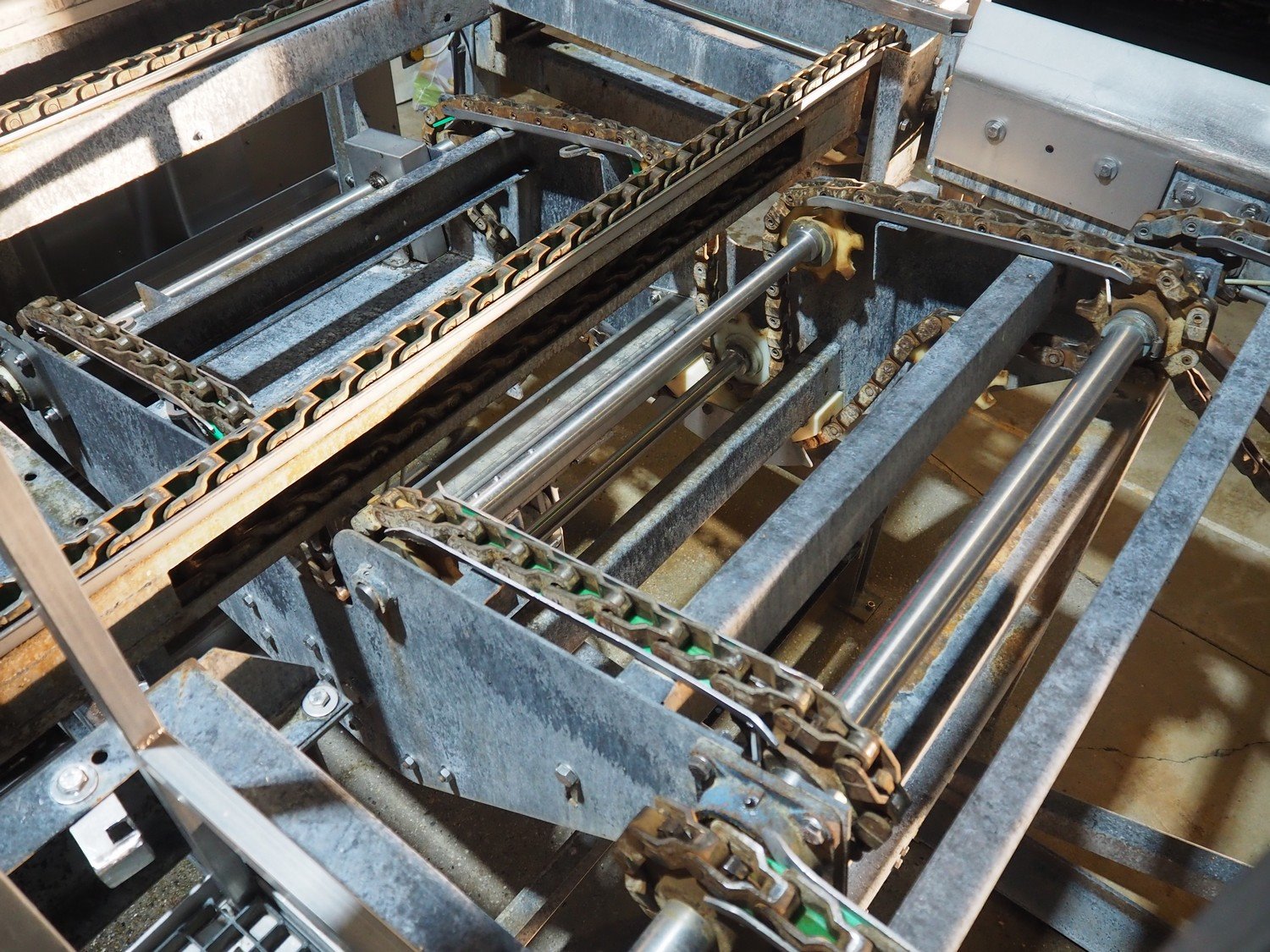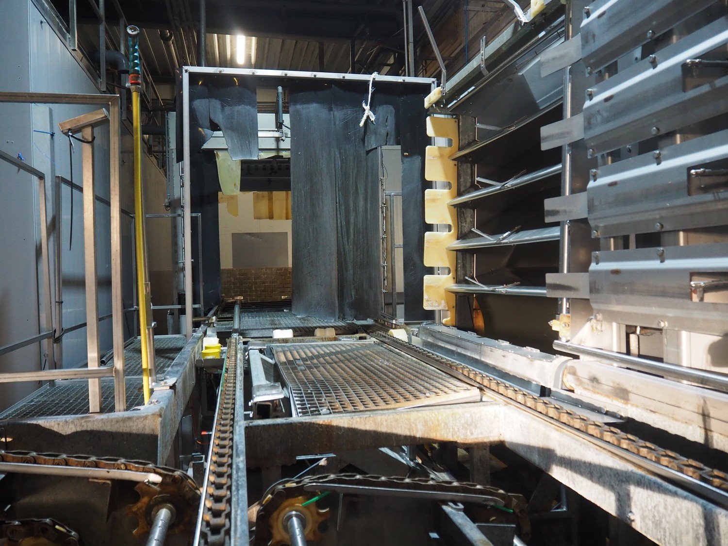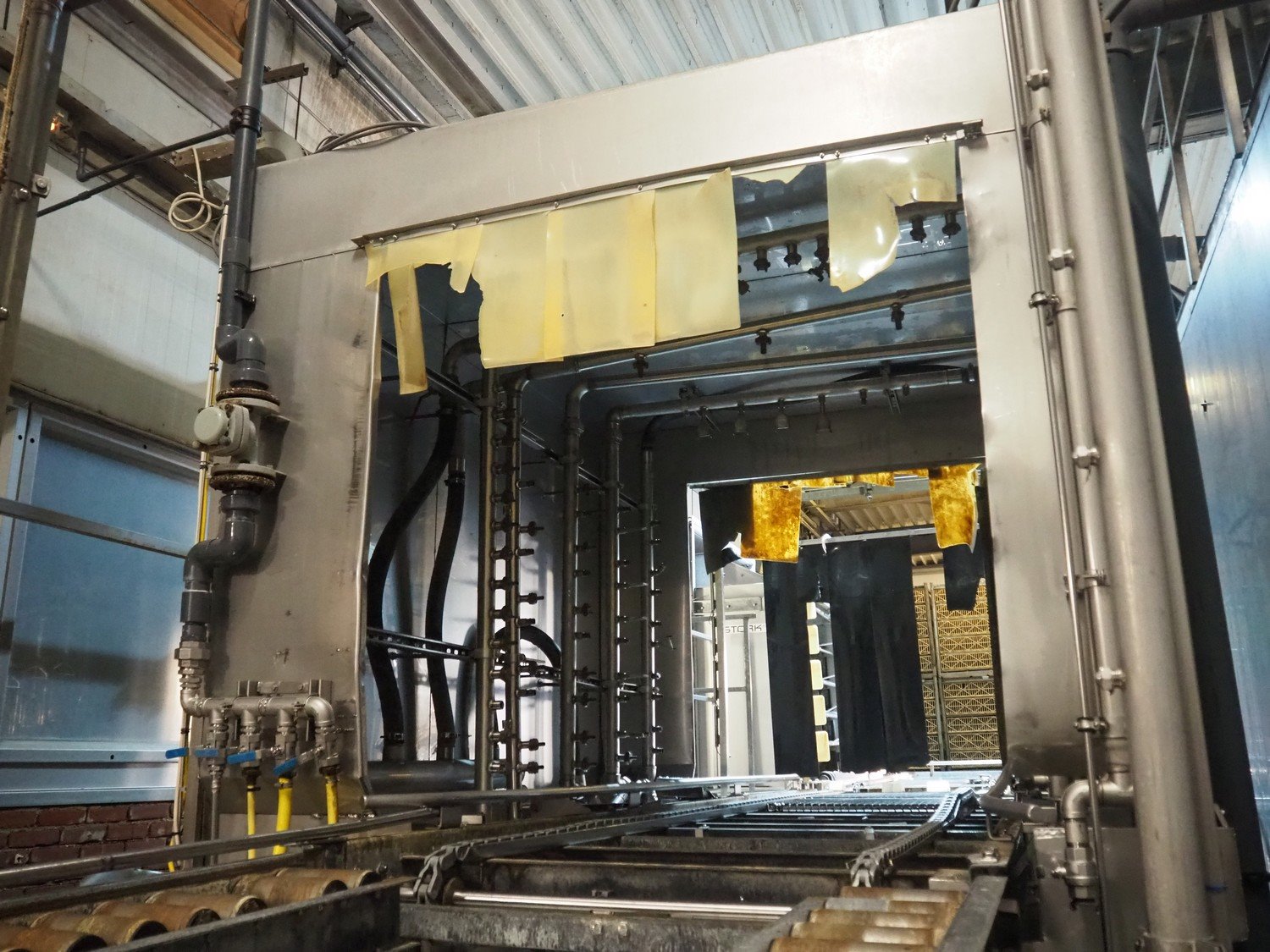Stork live-bird unloading system with crate washing machine, number: 94-03-22, total belt width: 1200 mm, plastic outfeed belt, belt width: 1600 mm, clearance washing machine: 1200 mm x 1400 mm, total dimensions: 10000 mm x 2600 mm x 3400 mm. Important! A bid on a lot is including professional dismantling. Pickup of the lots on 12 December 2025 at pre-specified times.