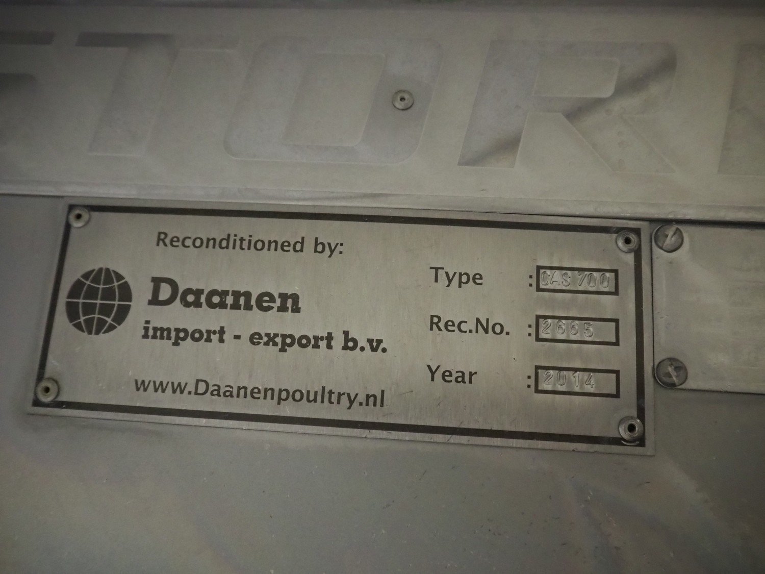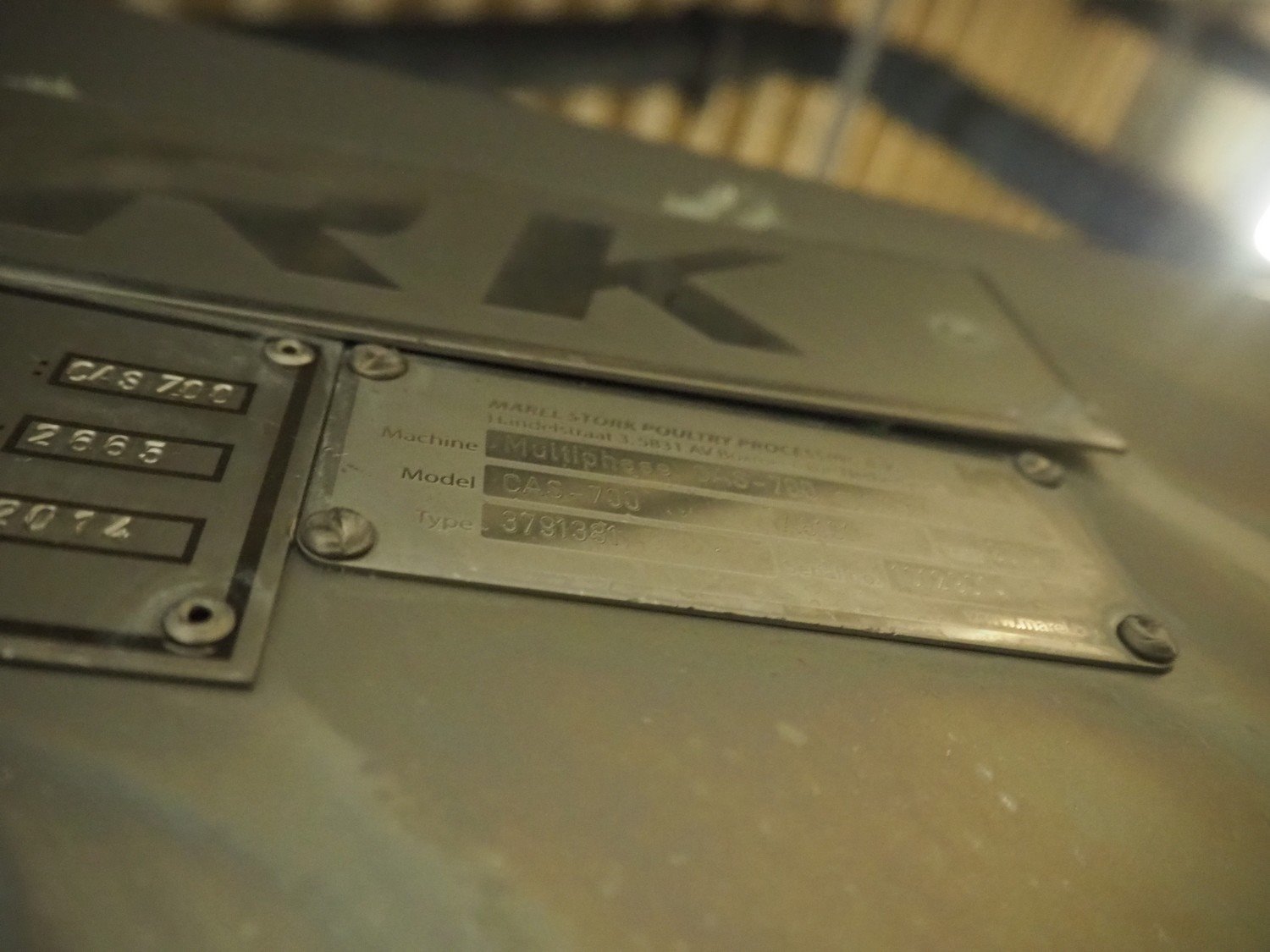 Marel Stork Poultry Processing B.V. gas stunning tunnel, model: CAS-700 A8101, type: 3791381, serial number: 10129014, year of construction: 2014 (revised), plastic belt, belt width: 690 mm, total dimensions: 15500 mm x 1650 mm x 2300 mm. Important! A bid on a lot is including professional dismantling. Pickup of the lots on 12 December 2025 at pre-specified times.