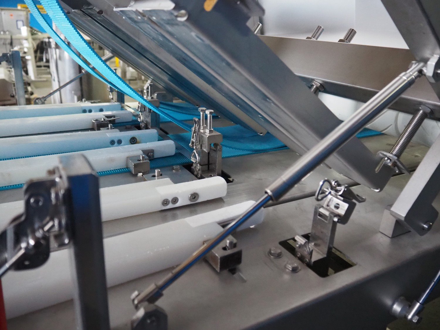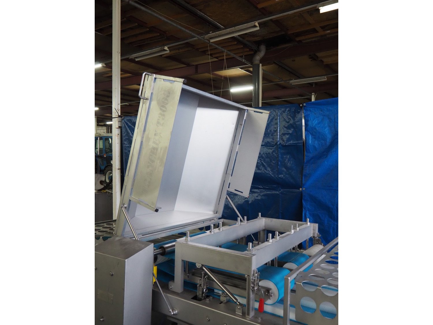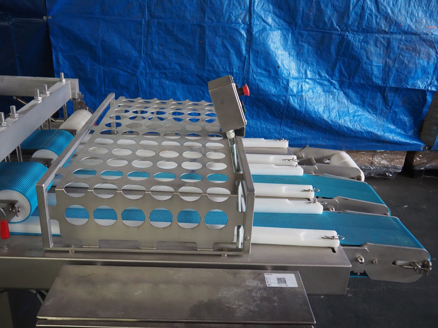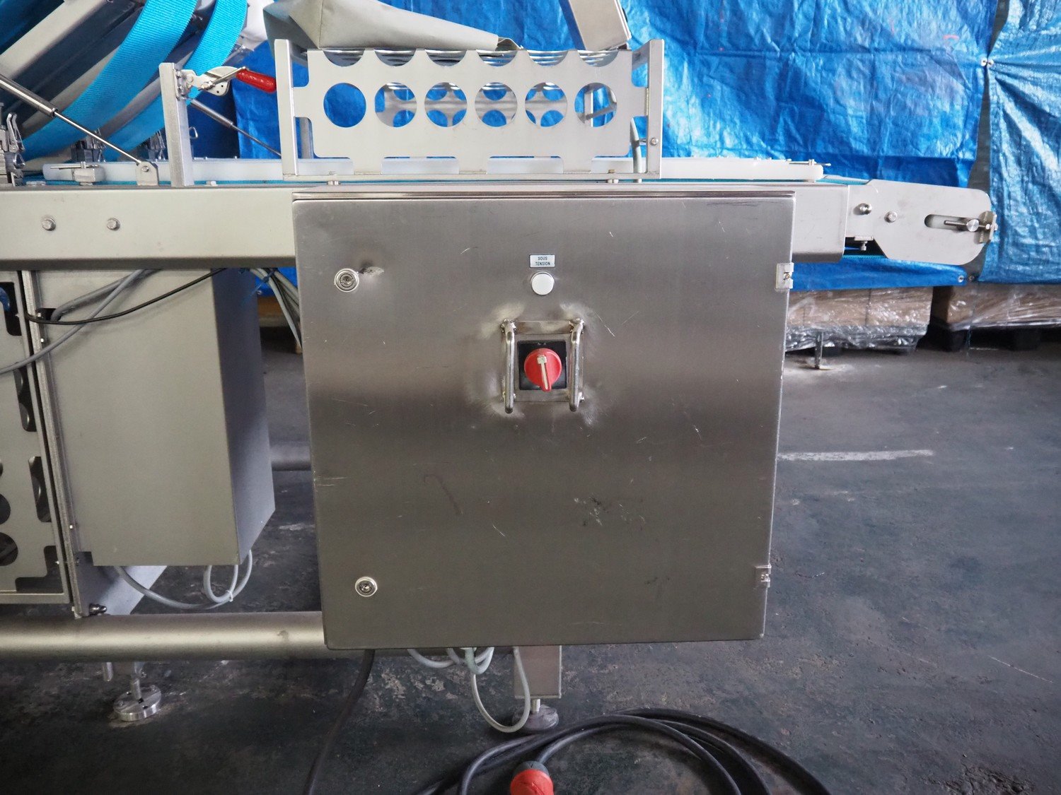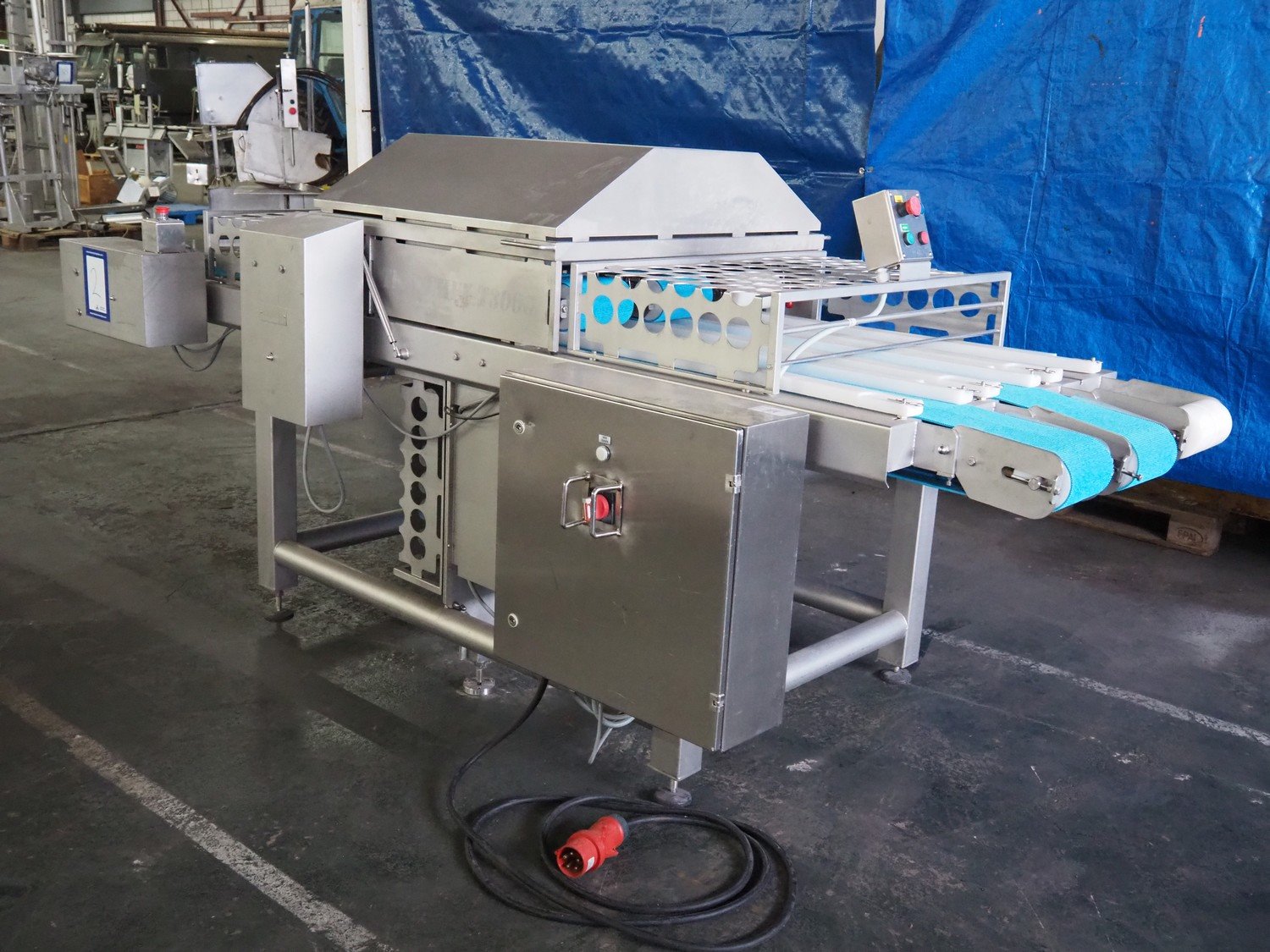 Thielemann Tranchex 3-lane horizontal breast fillet slicer, type: T3000, number: 2022, plastic belts, belt width: 180 mm, total dimensions: 2950 mm x 1250 mm x 1400 mm. 1 belt missing.