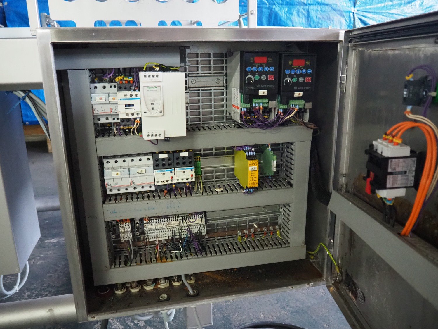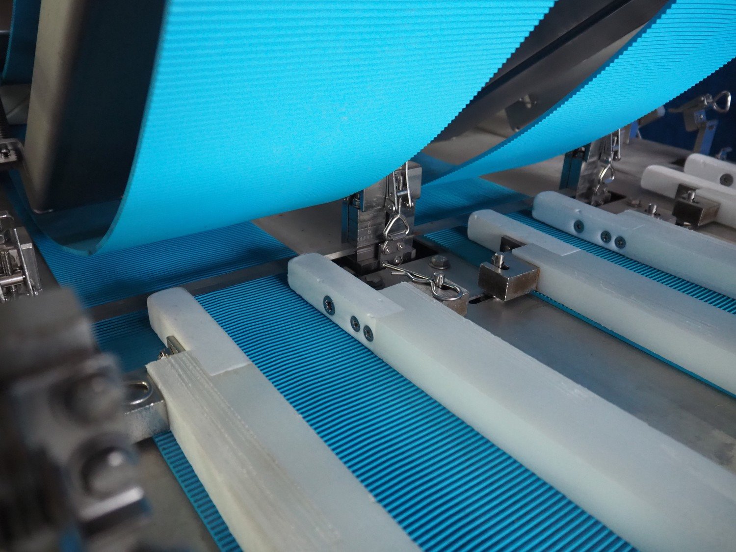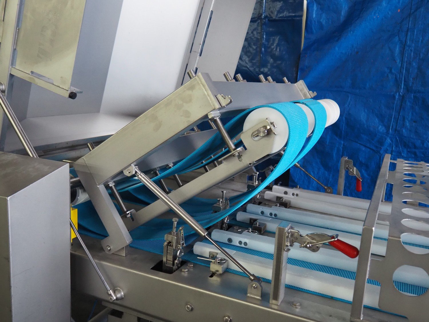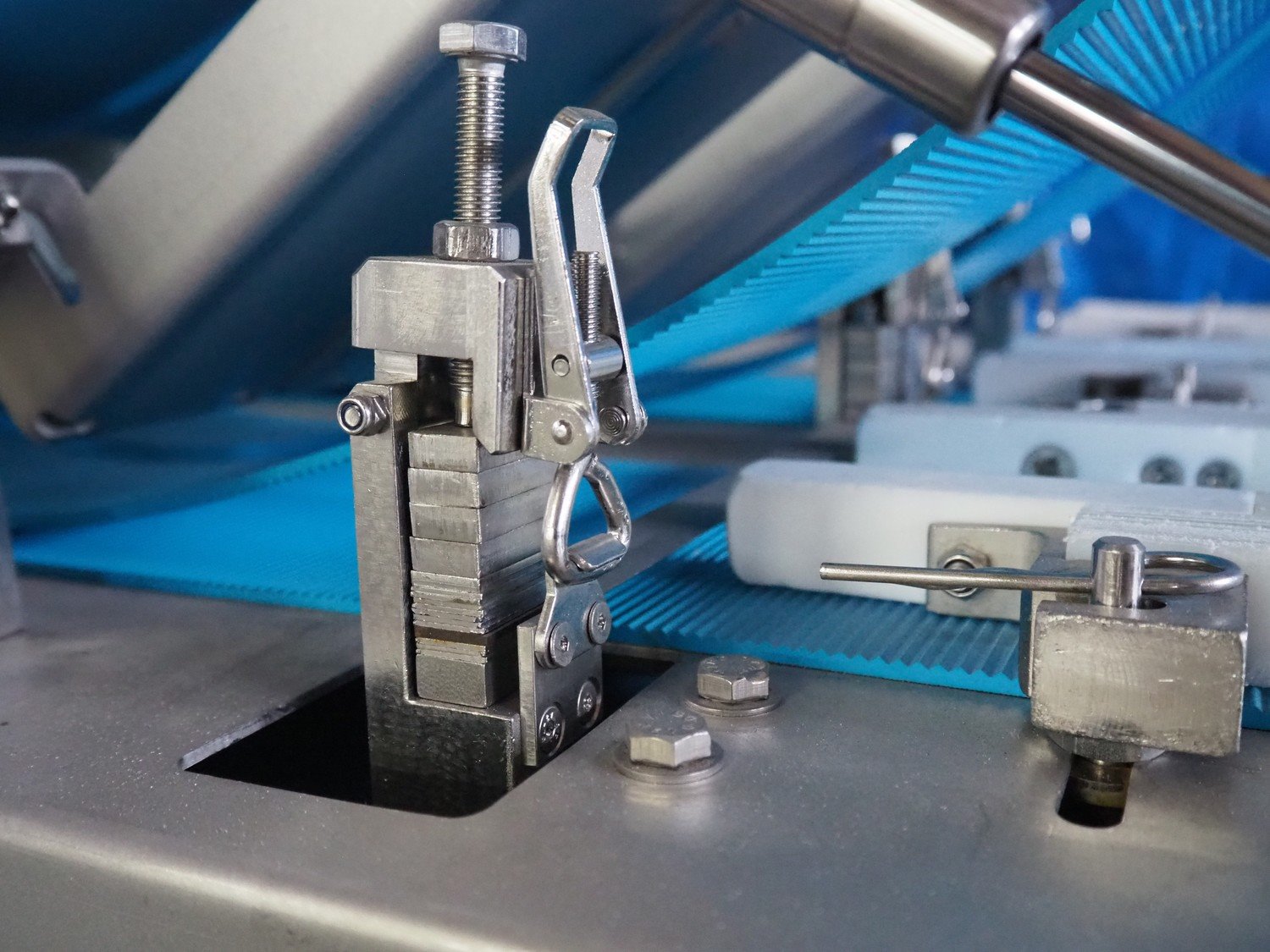 Thielemann Tranchex 3-lane horizontal breast fillet slicer, type: T3000, number: 2022, plastic belts, belt width: 180 mm, total dimensions: 2950 mm x 1250 mm x 1400 mm. 1 belt missing.