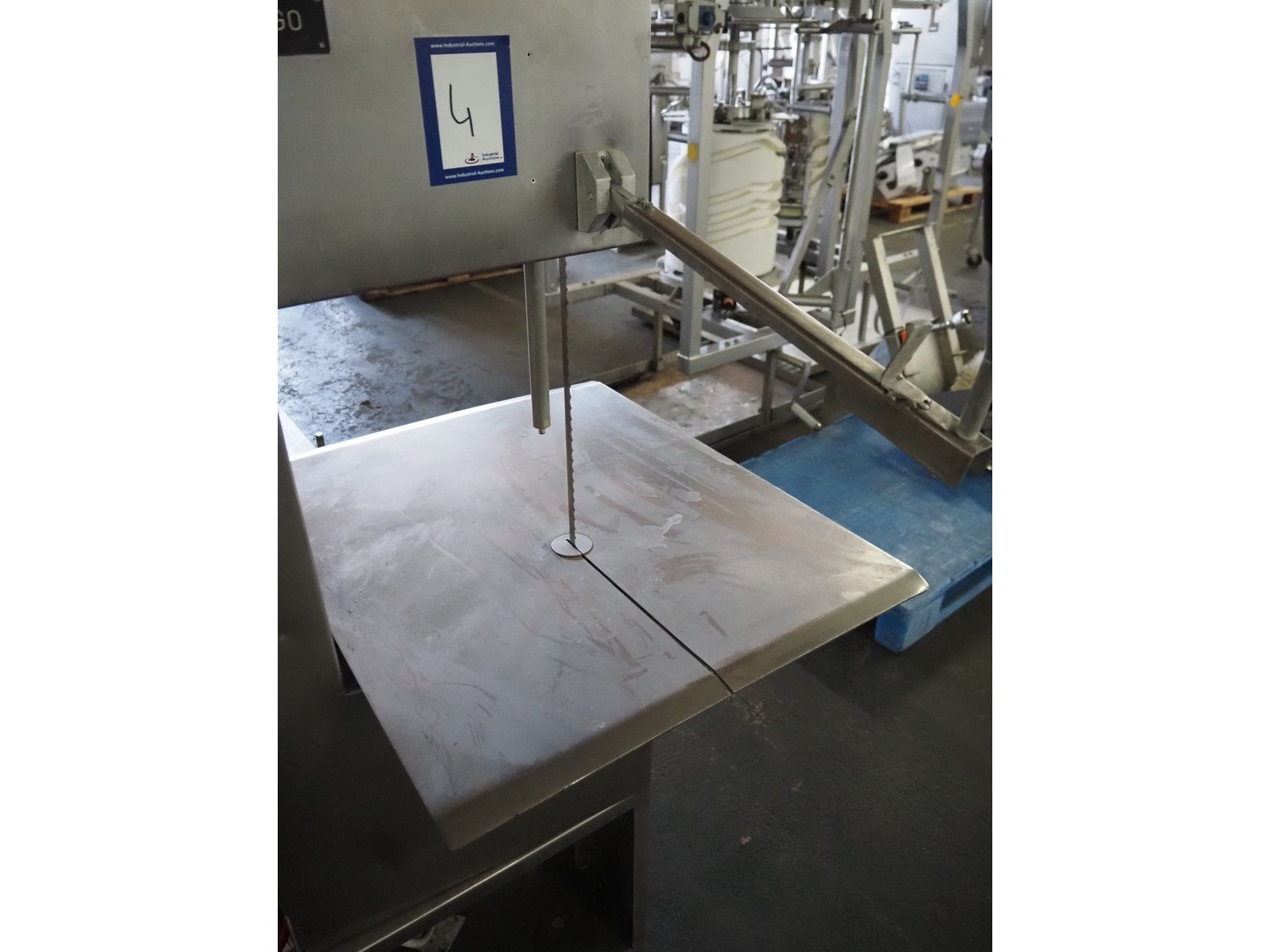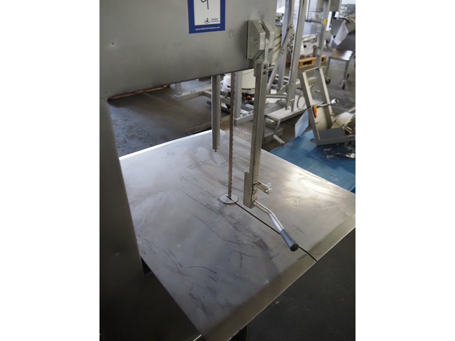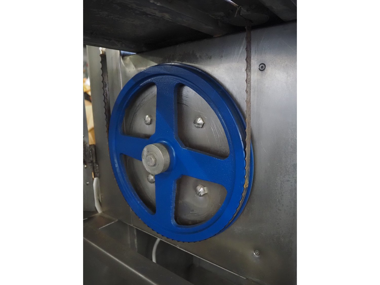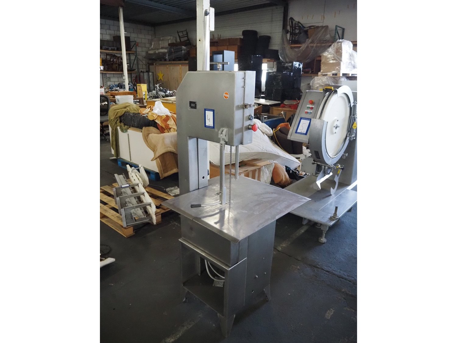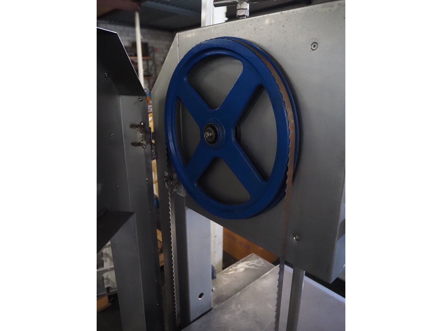 SGO bandsaw, table dimensions: 700 mm x 580 mm, total dimensions: 700 mm x 700 mm x 1970 mm. Including extra saw blades.