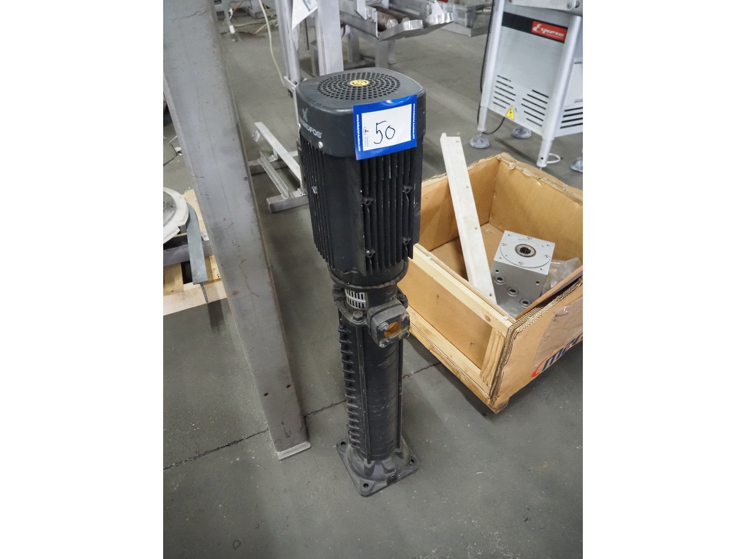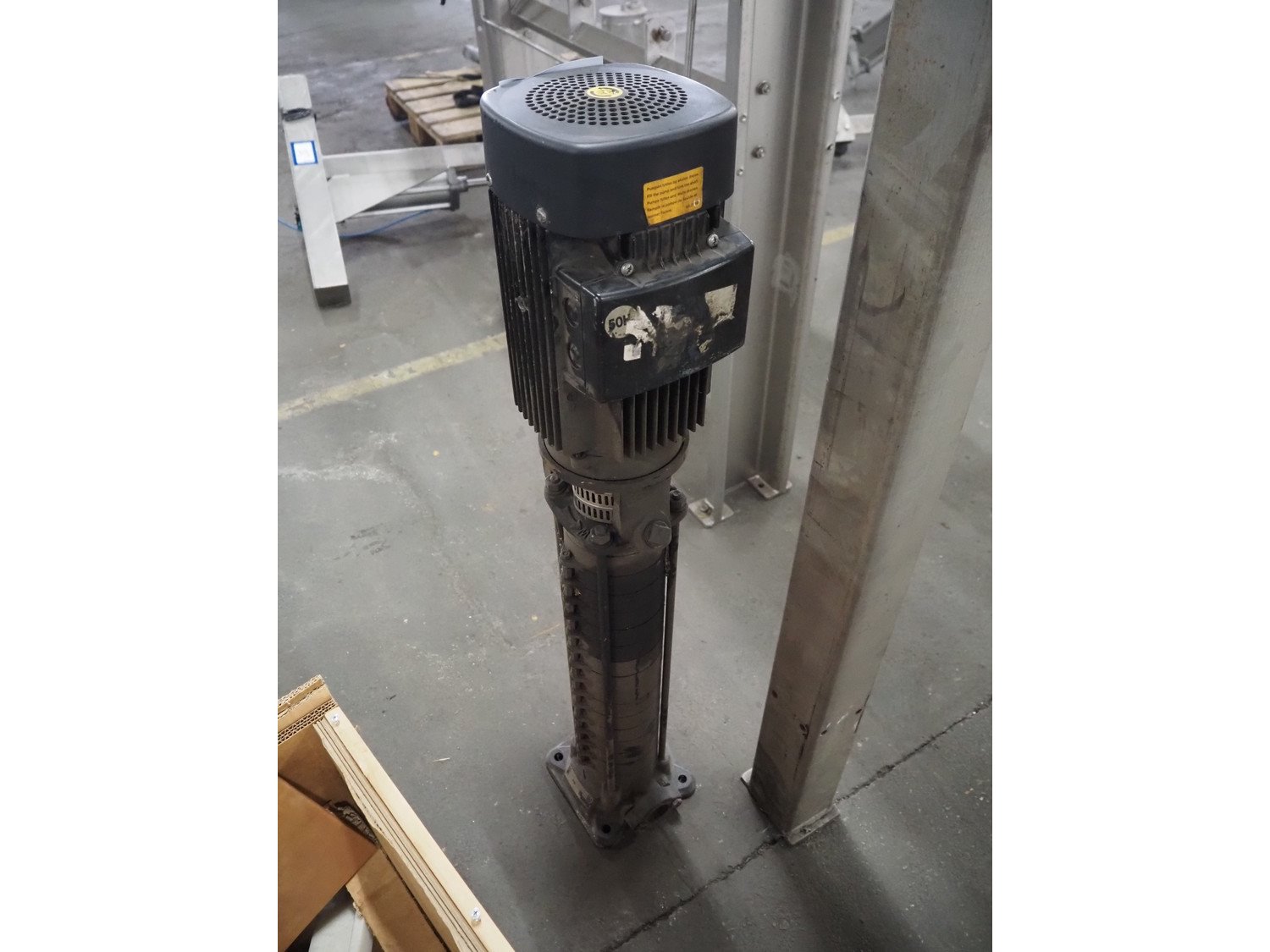 Grundfos high pressure water pump, type: CP3-150K, capacity: 3.0 m³ per hour, dimensions: 200 mm x 200 mm x 1100 mm.