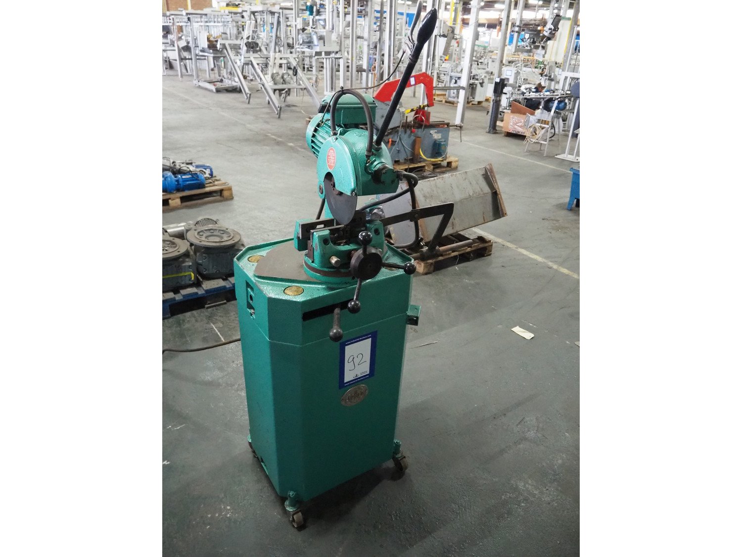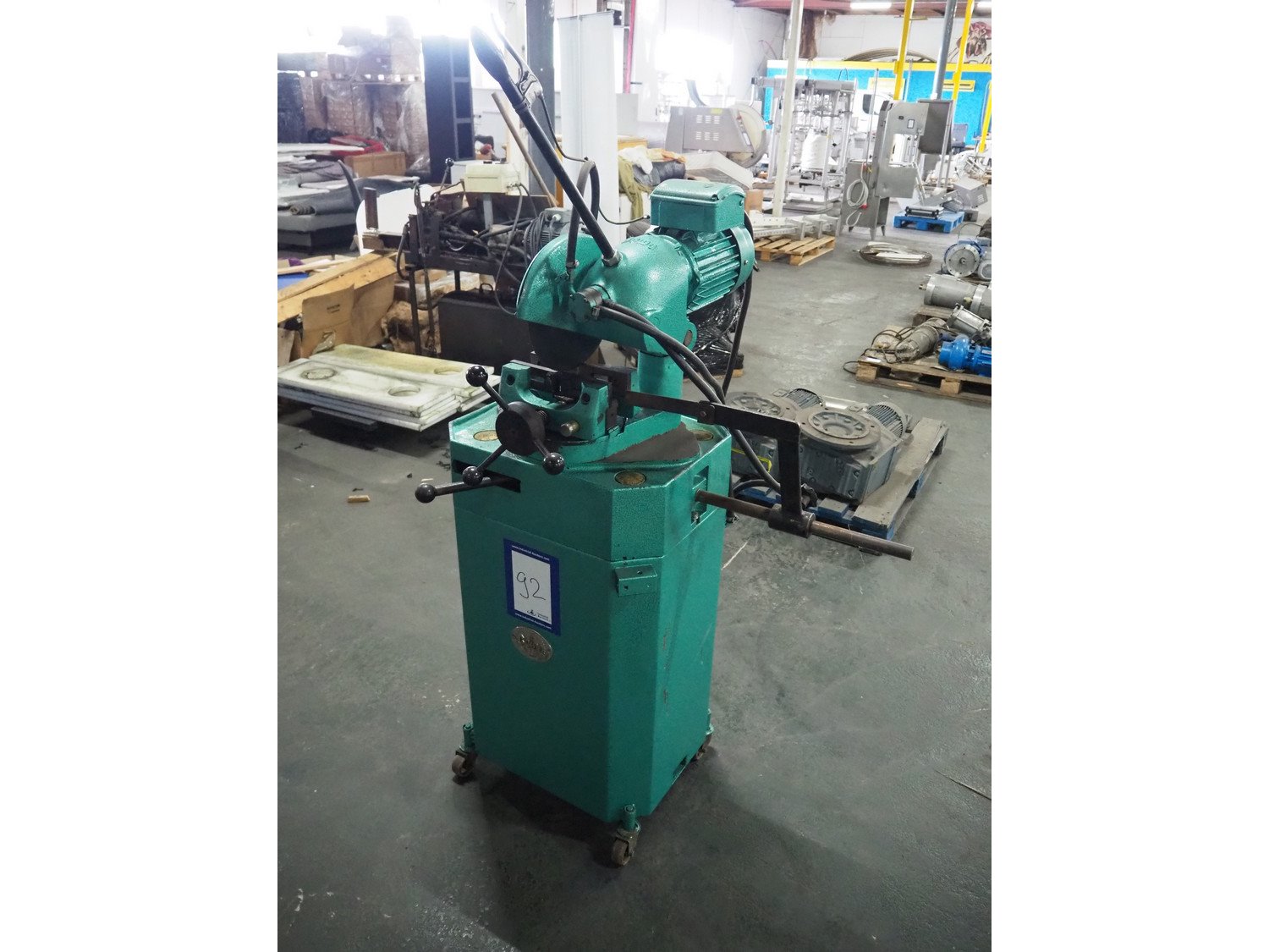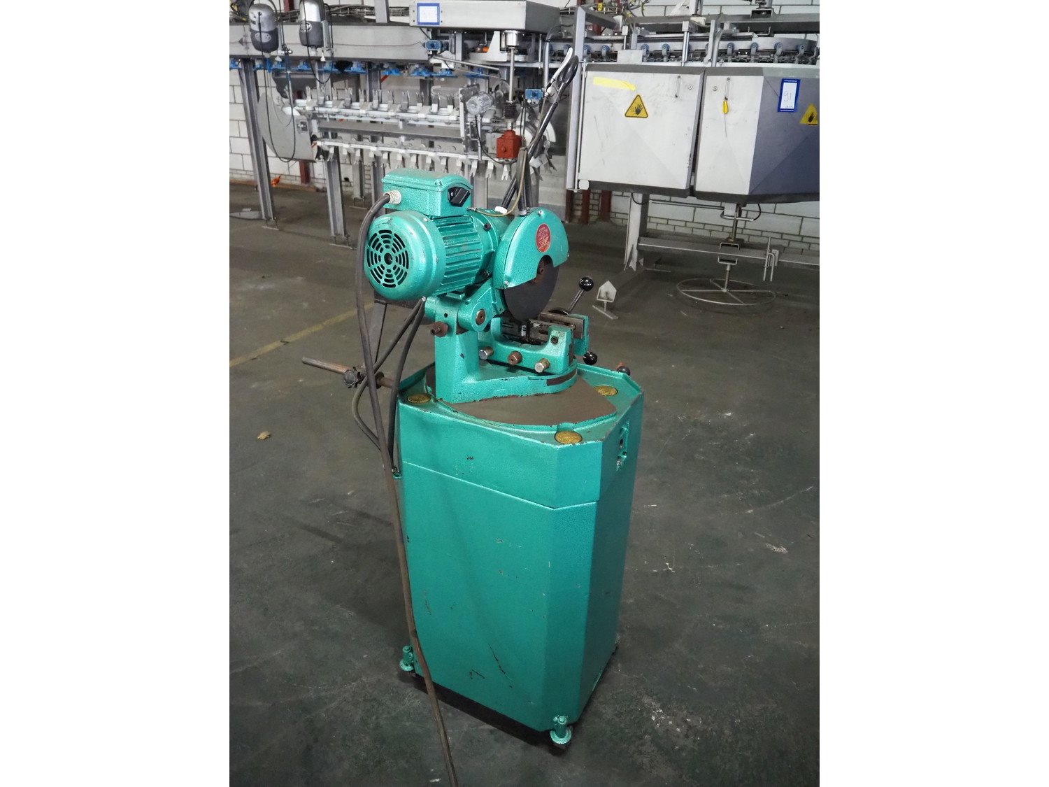 Bewo cut-off saw, dimensions: 1000 mm x 700 mm x 1750 mm.