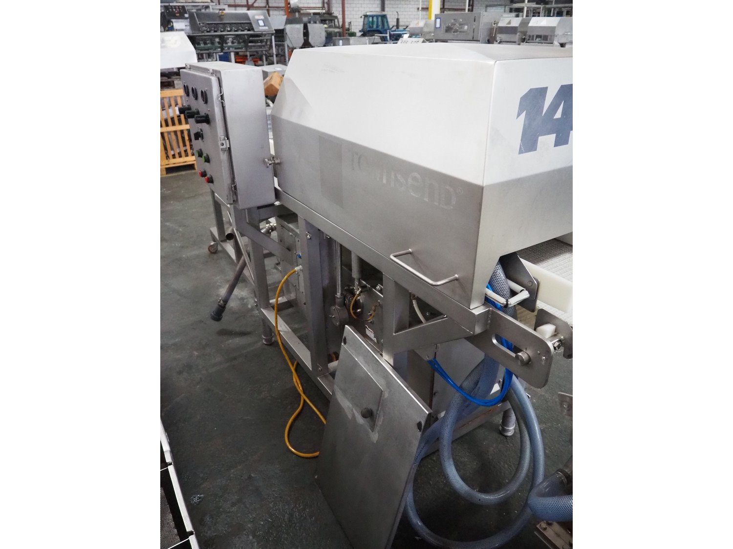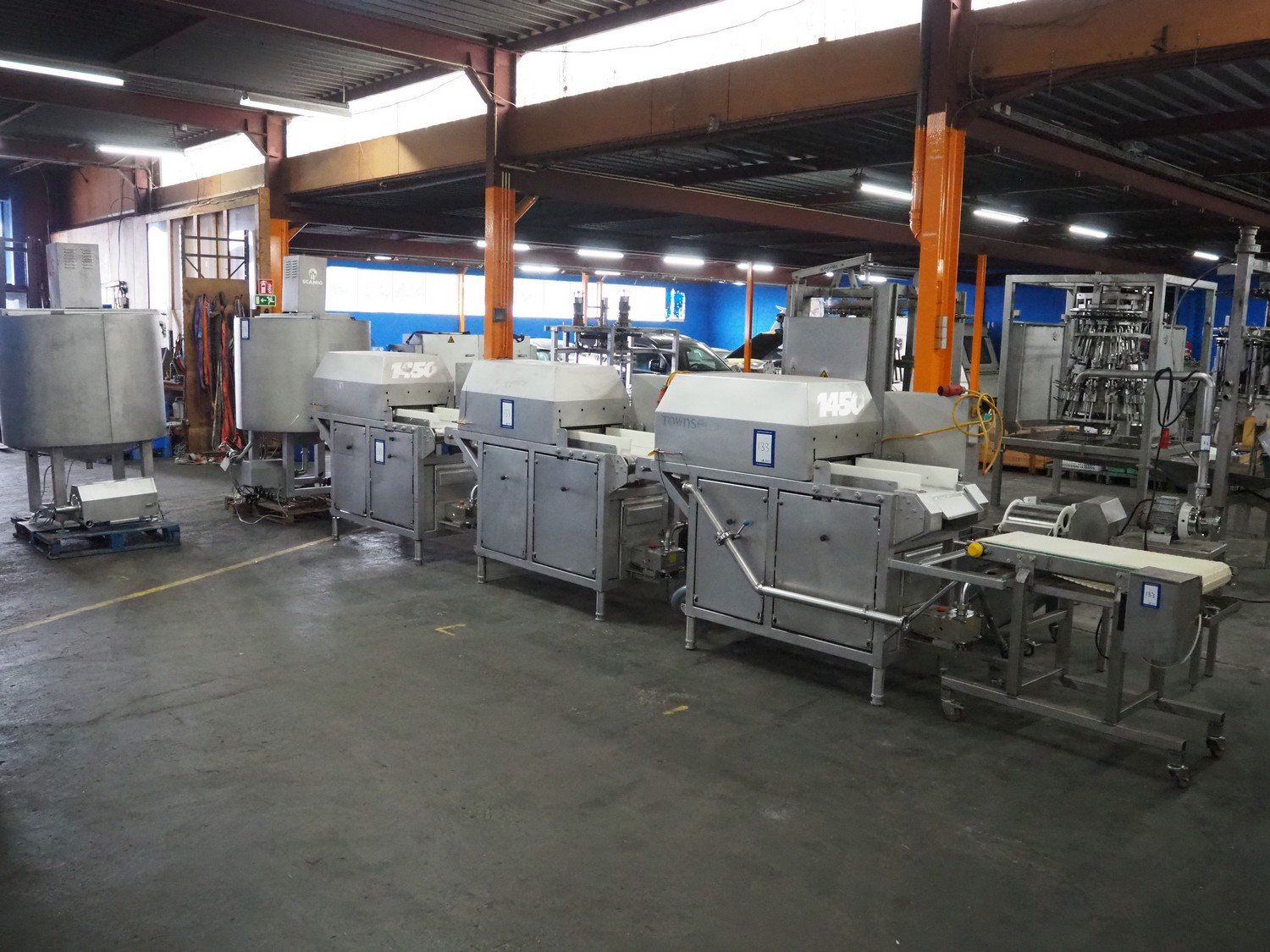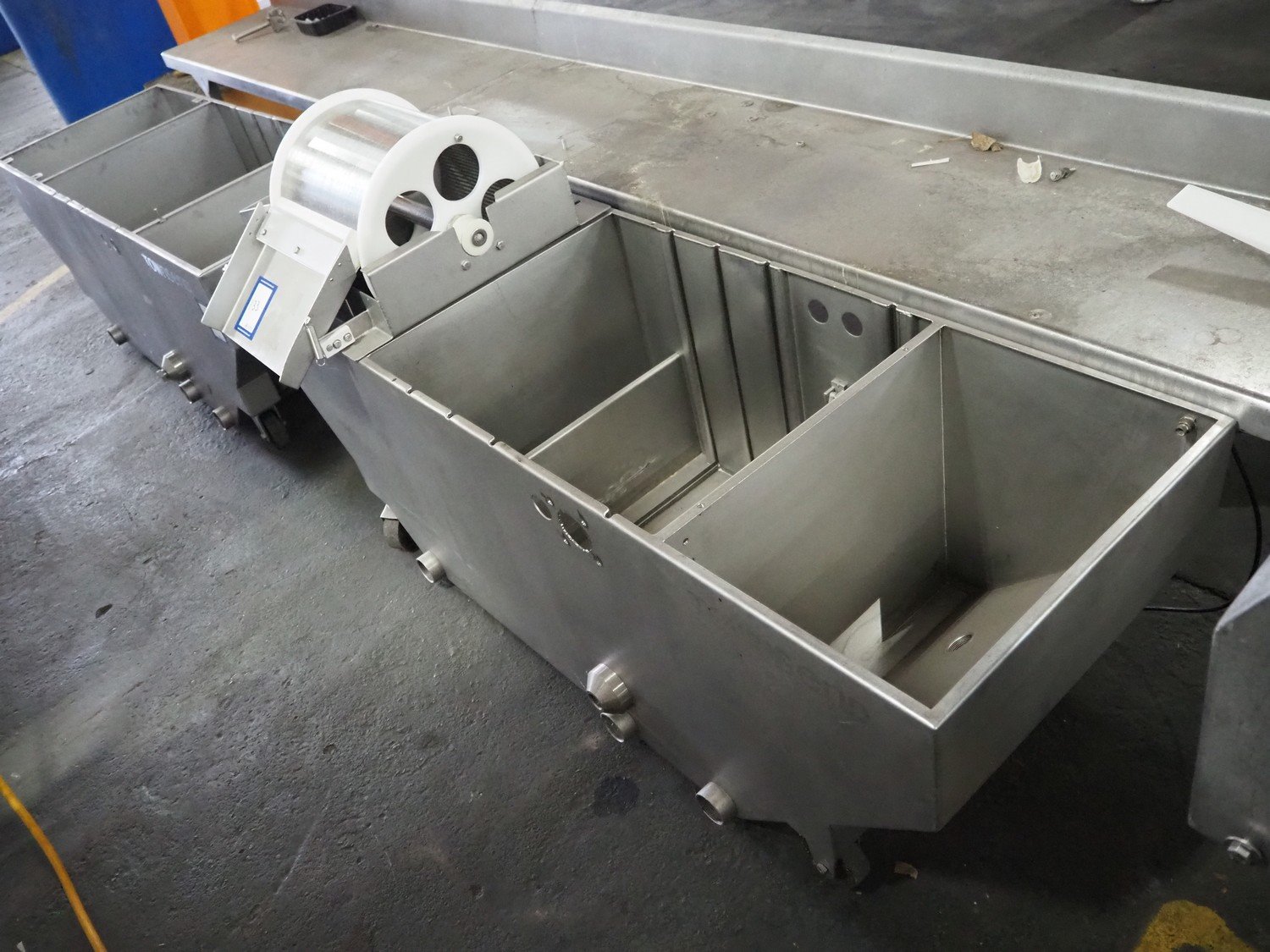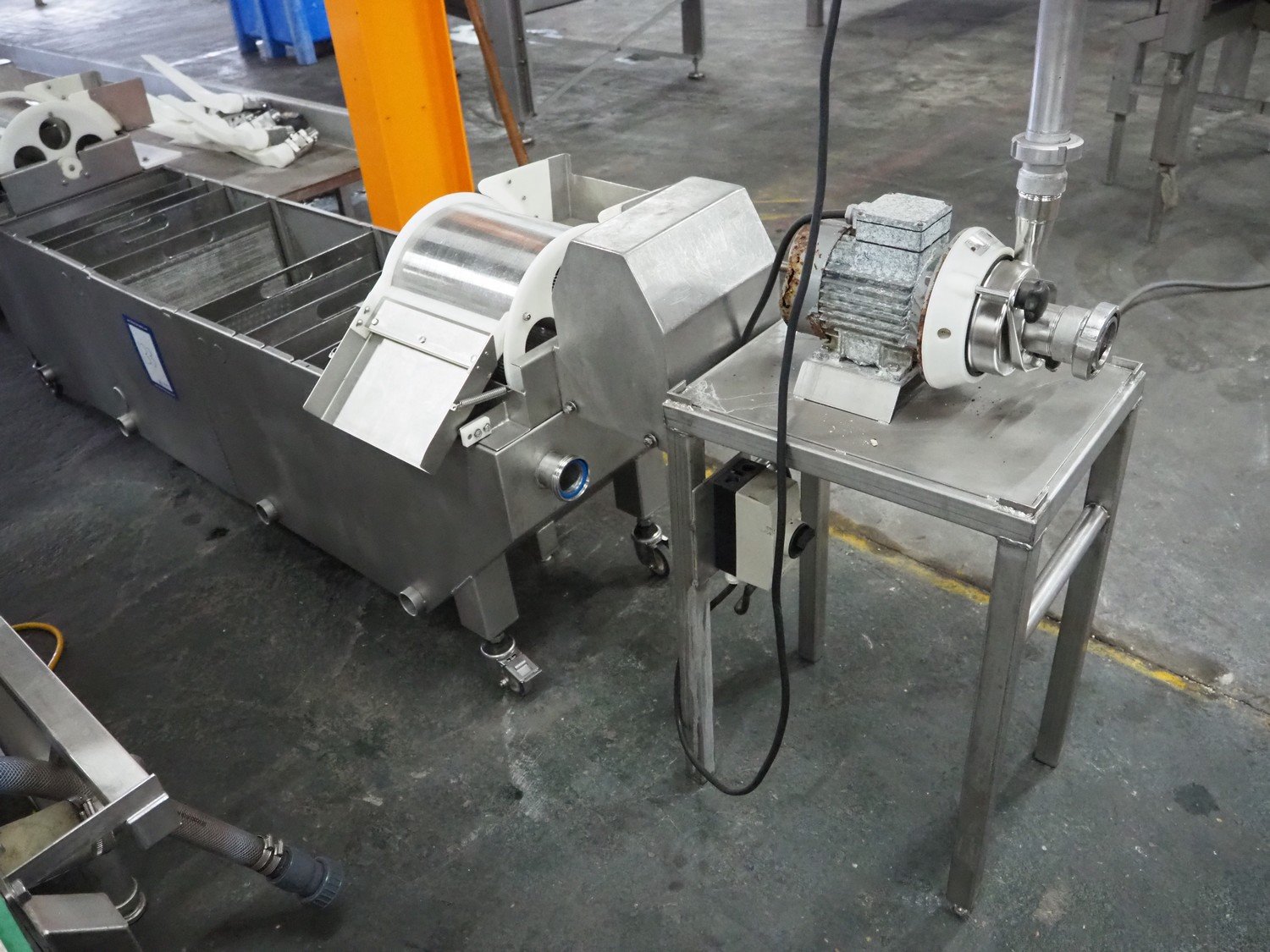 Townsend injector line consisting of: 3 Townsend injectors, model: 14503 Filter tubs2 Scanio brine mixing tanks3 pallets with parts for Townsend injectorsCentrifugal pump on s/s table, type: FP4605