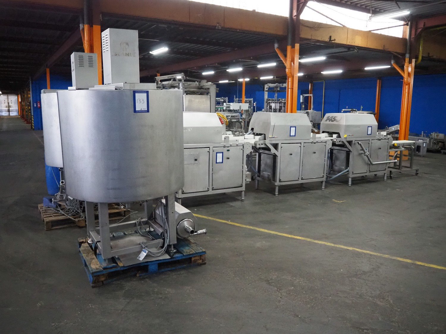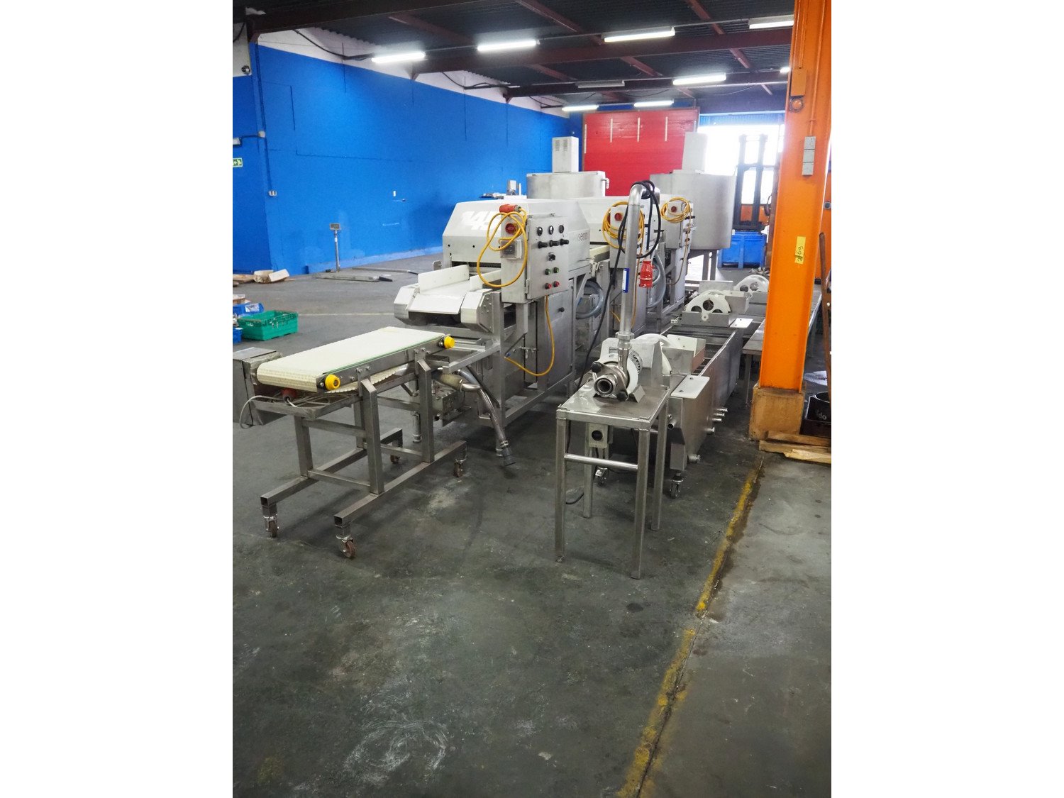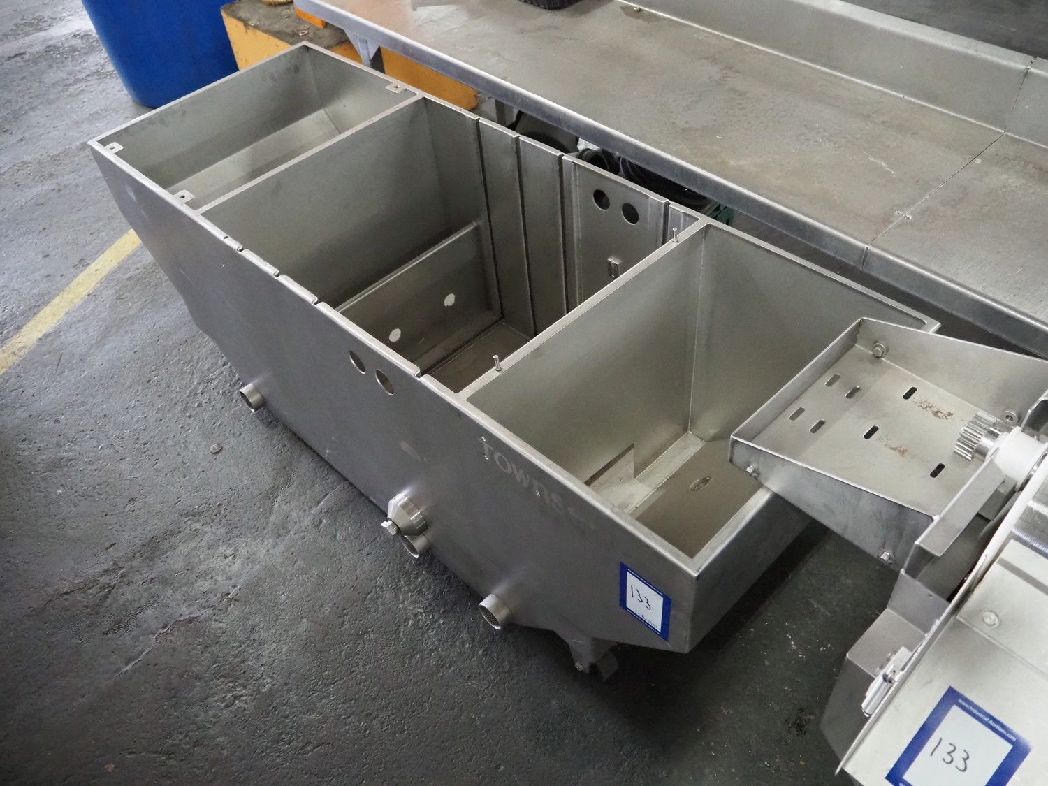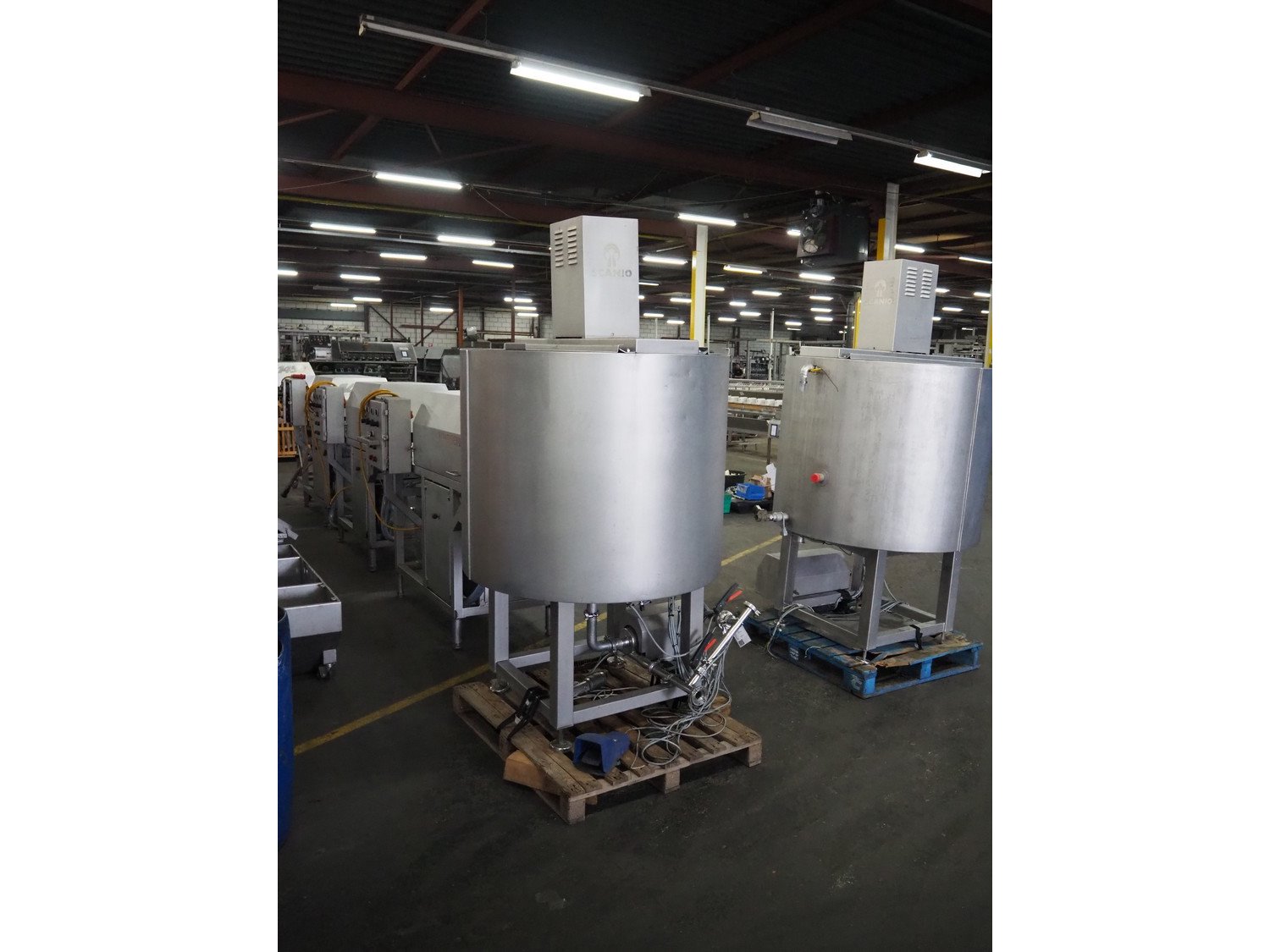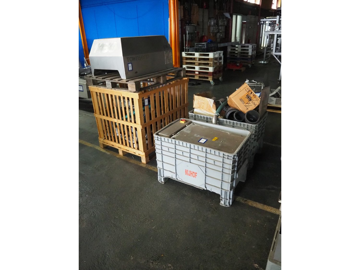Townsend injector line consisting of: 3 Townsend injectors, model: 14503 Filter tubs2 Scanio brine mixing tanks3 pallets with parts for Townsend injectorsCentrifugal pump on s/s table, type: FP4605