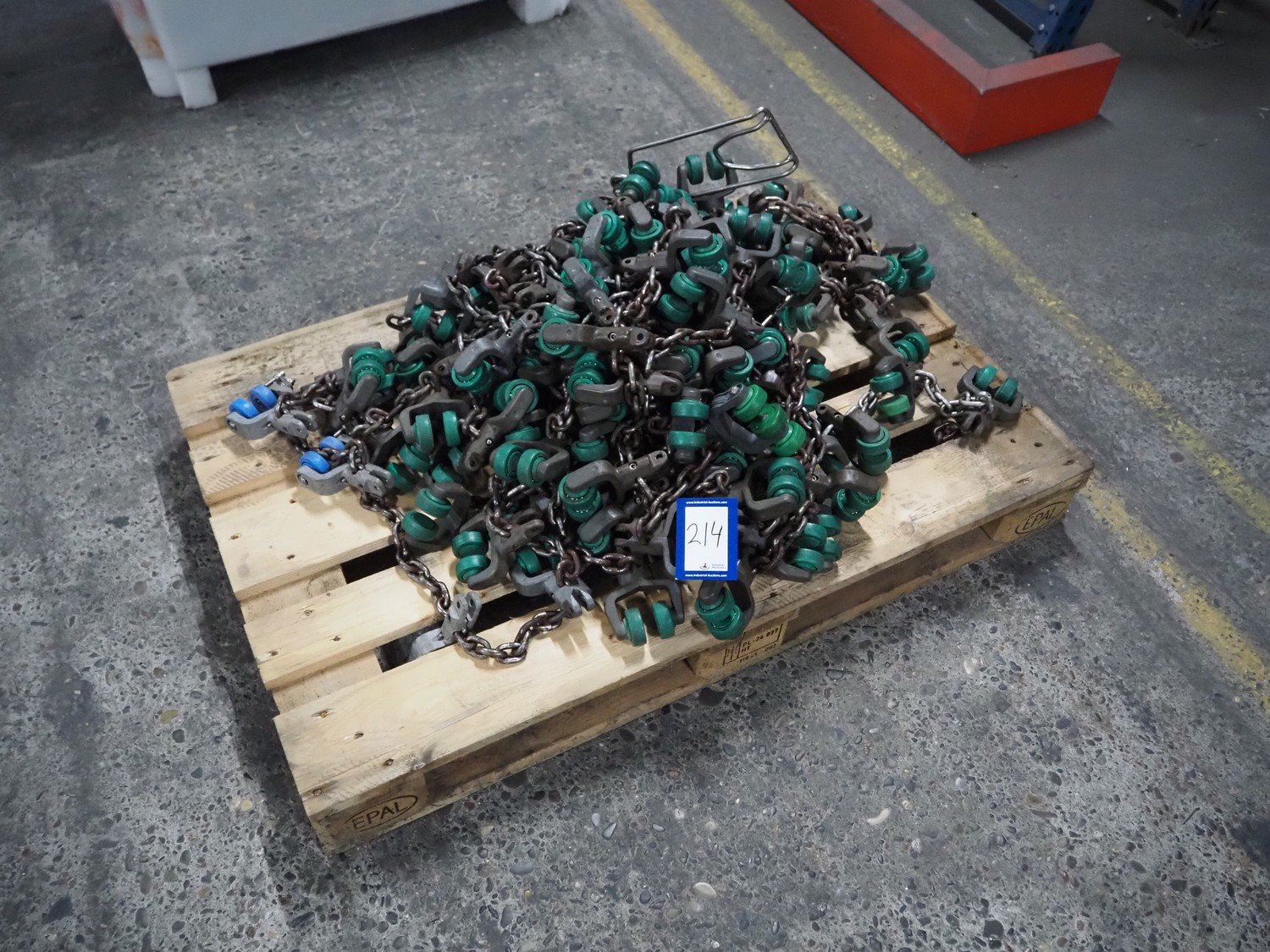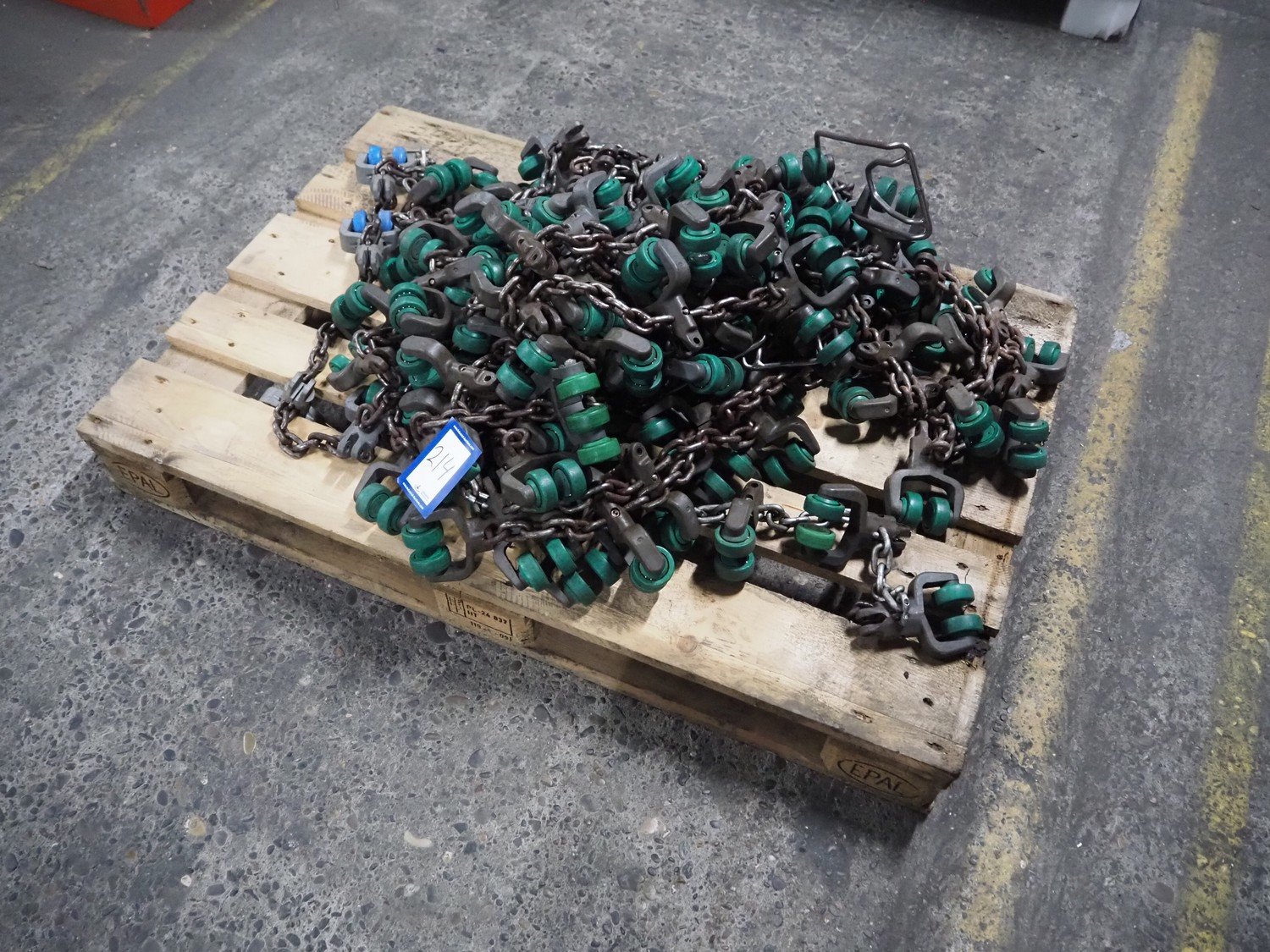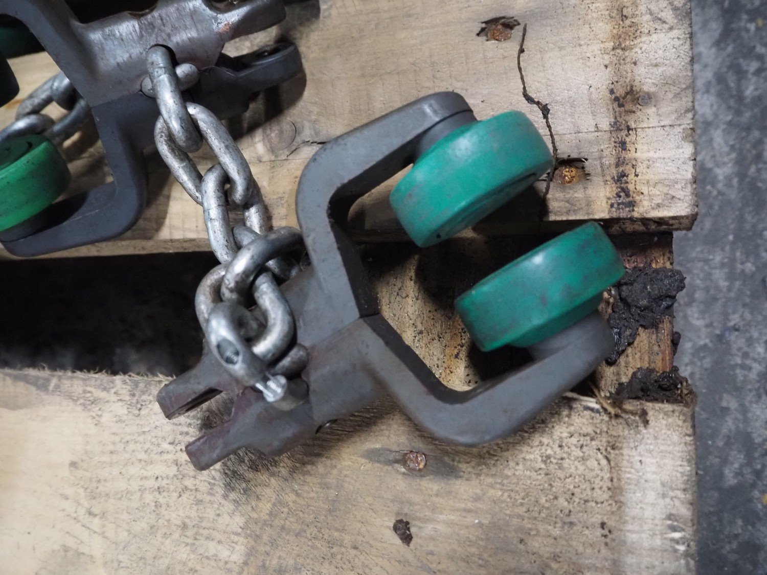 Pallet with Meyn trolleys on chain for tube track, dimensions: 1200 mm x 800 mm x 400 mm.