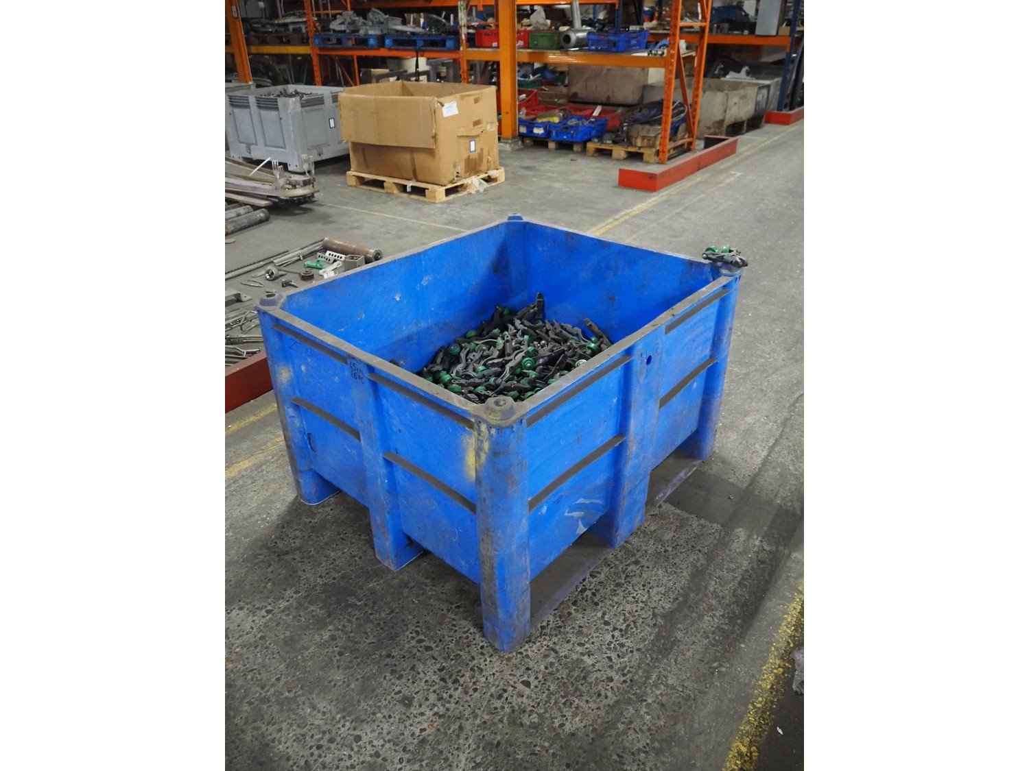 Pallet box with large amount of Meyn trolleys for tube track, dimensions: 1300 mm x 1200 mm x 900 mm.
