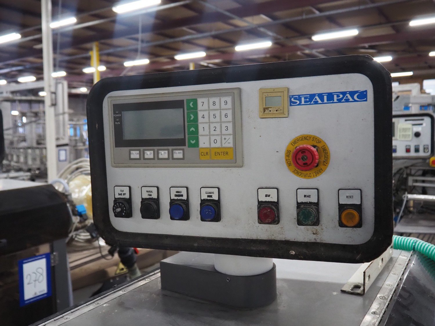 Sealpac traysealer, type: SEALPAC 350, serial number: TVG 0261601, year of construction: 2002, 400 V, 3 Ph, 3 kW, maximum belt width: 305 mm, dimensions dye: 320 mm x 260 mm, total dimensions: 2500 mm x 1000 mm x 1750 mm.