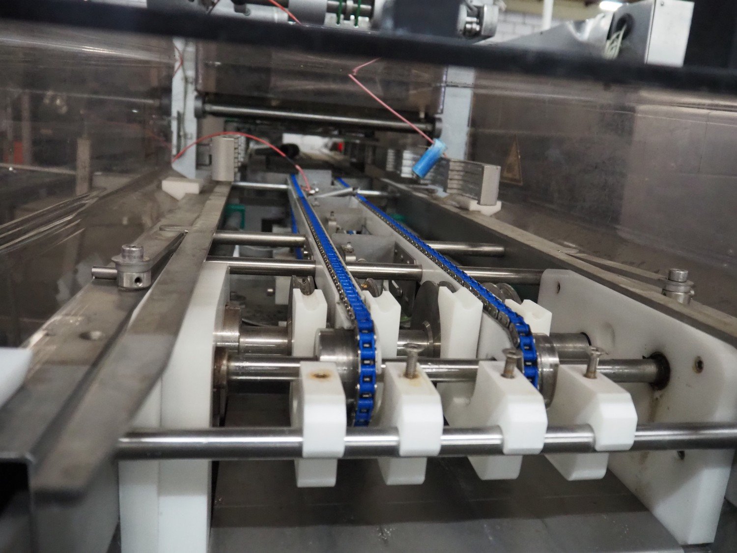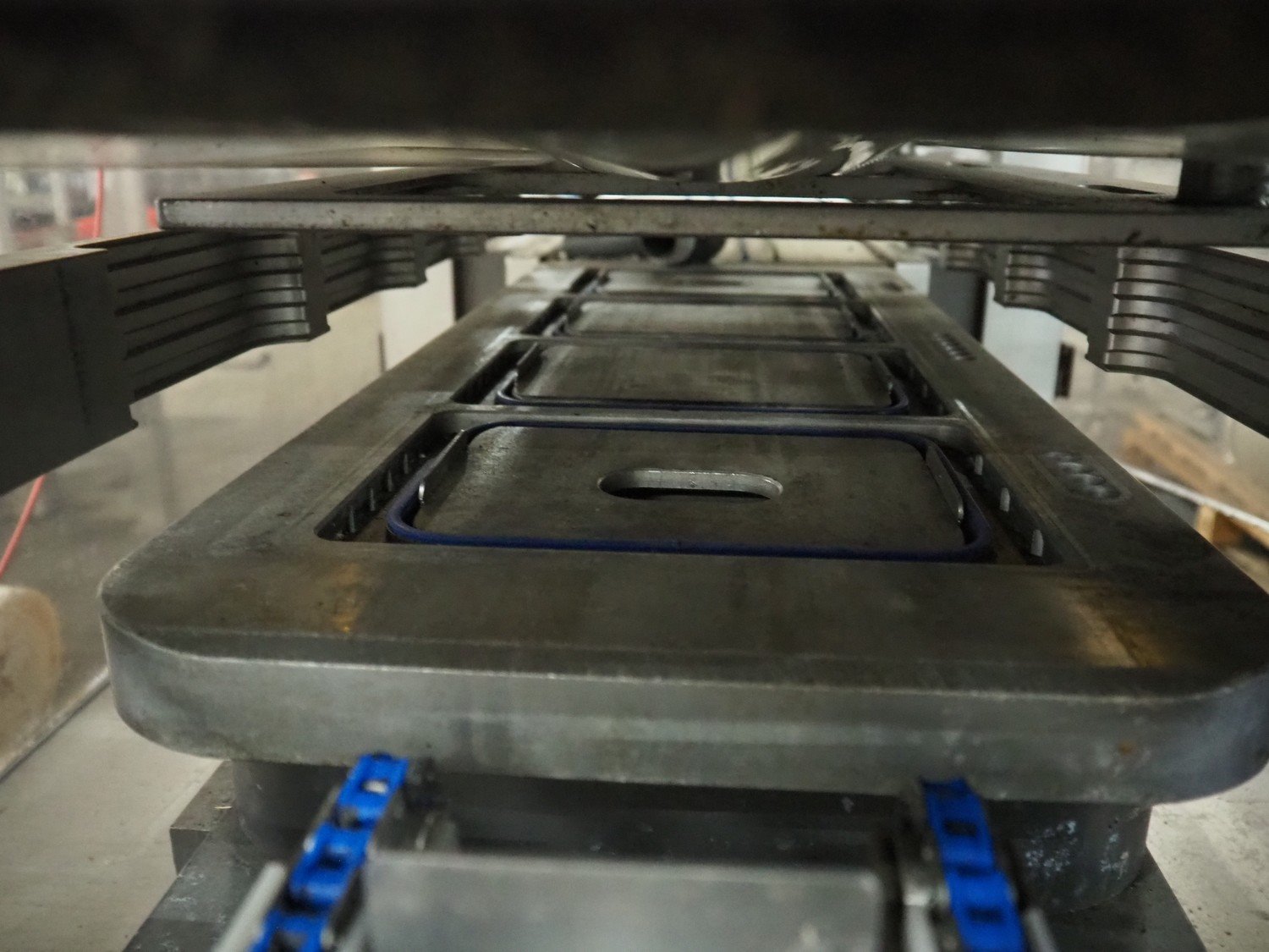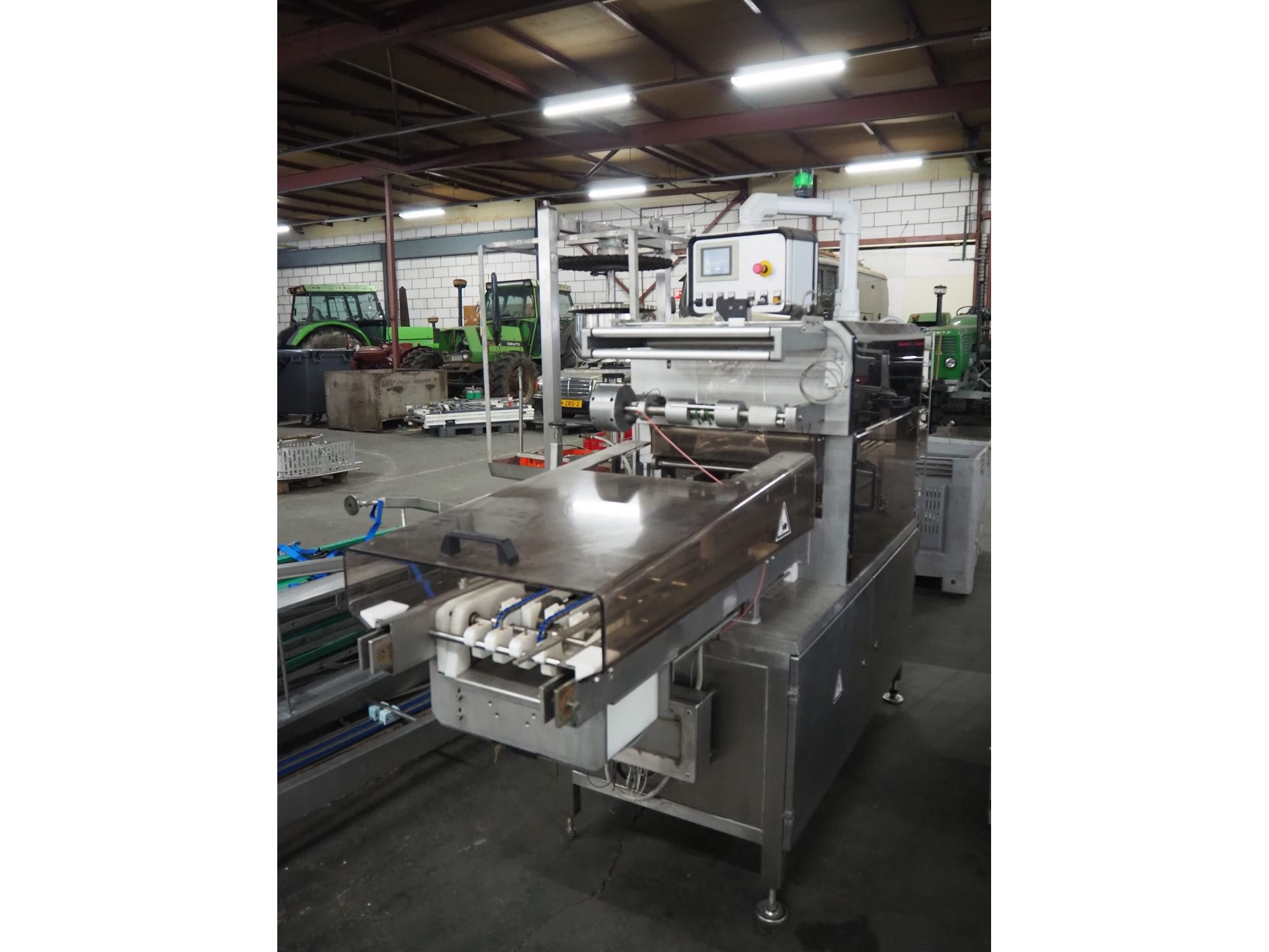 Sealpac traysealer, type: SEALPAC 750, serial number: TVG 04-751-01, year of construction: 2003, 400 V, 3 Ph, 6.5 kW, weight: 800 kg, maximum belt width: 277 mm, dimensions dye: (3x) 190 mm x 135 mm, total dimensions: 3000 mm x 1000 mm x 2050 mm.
